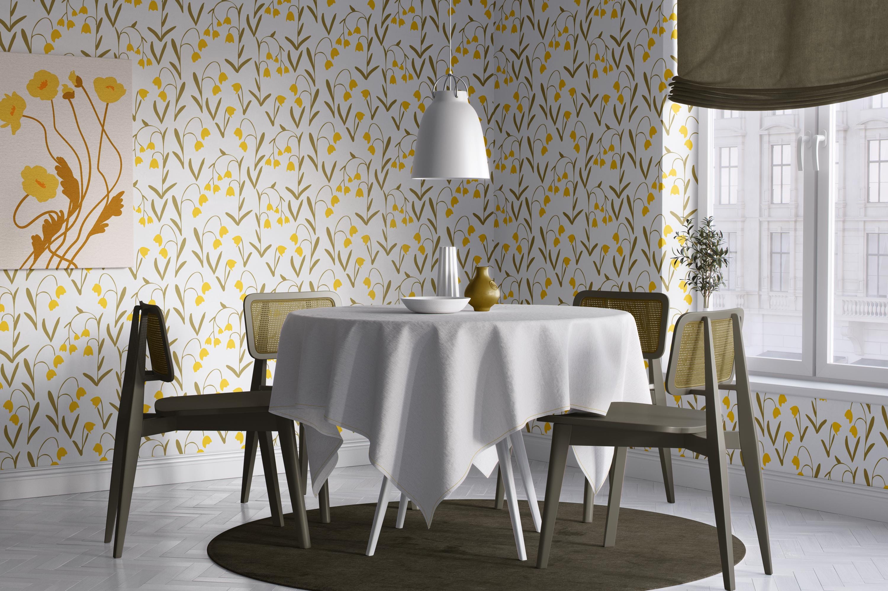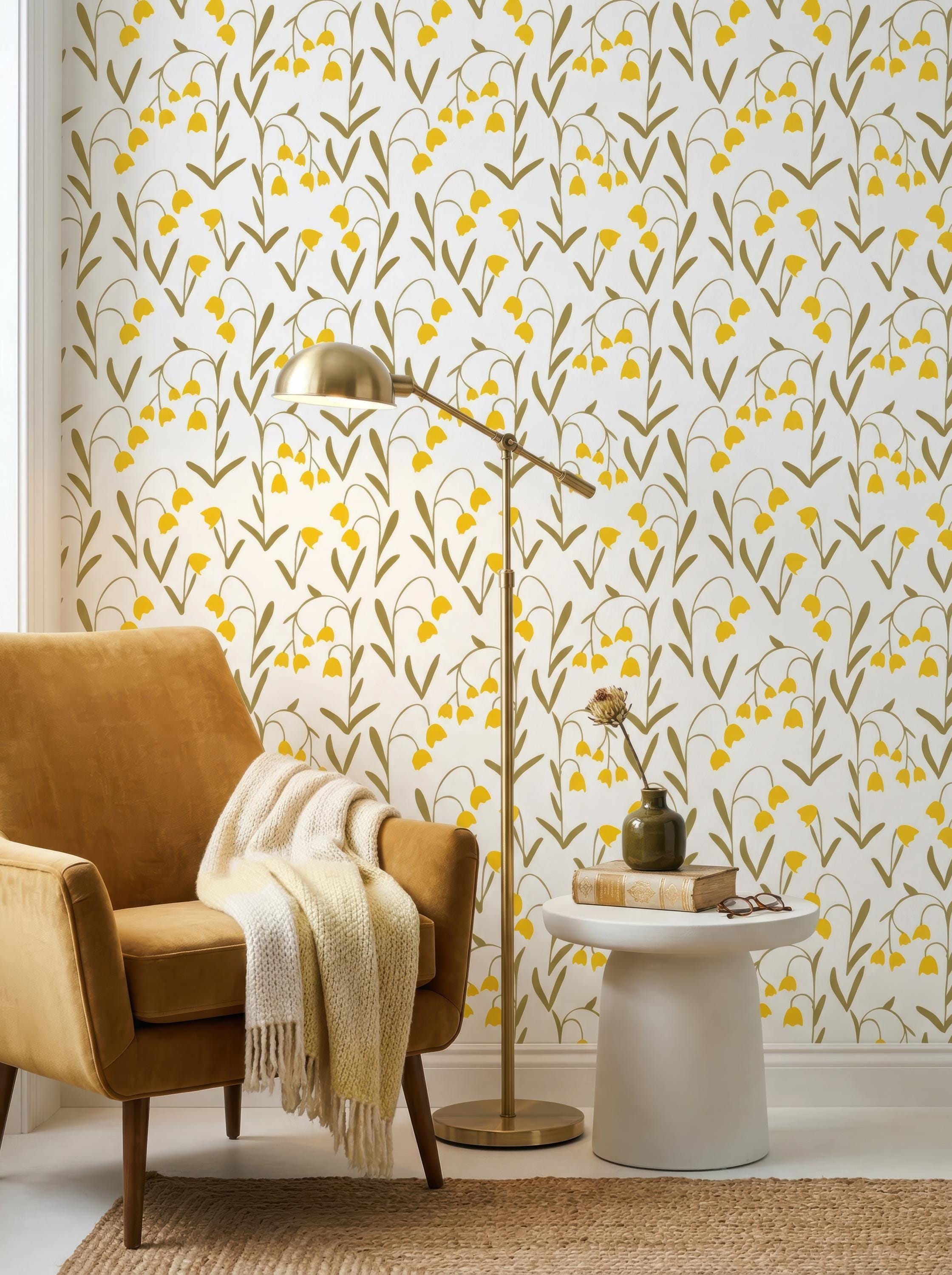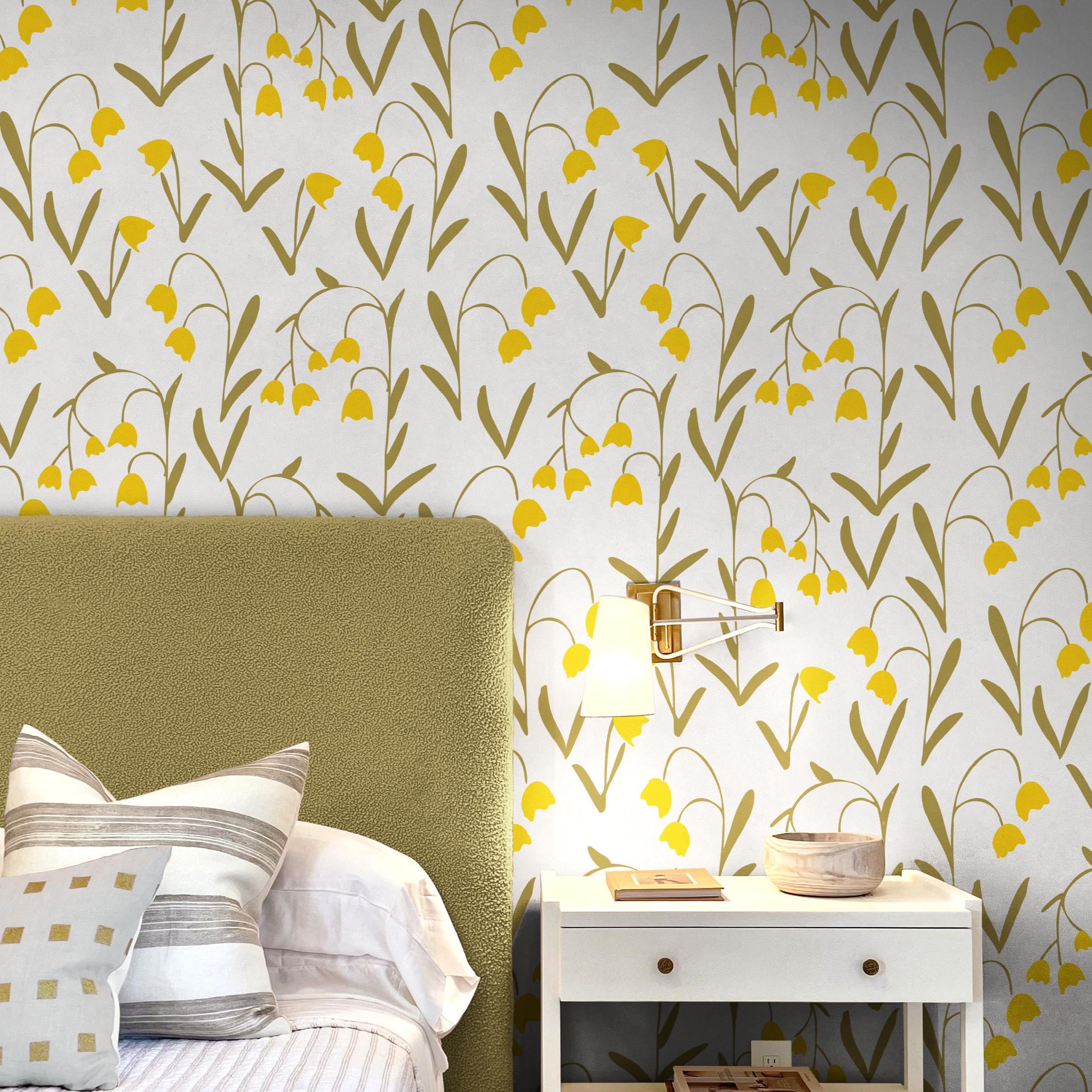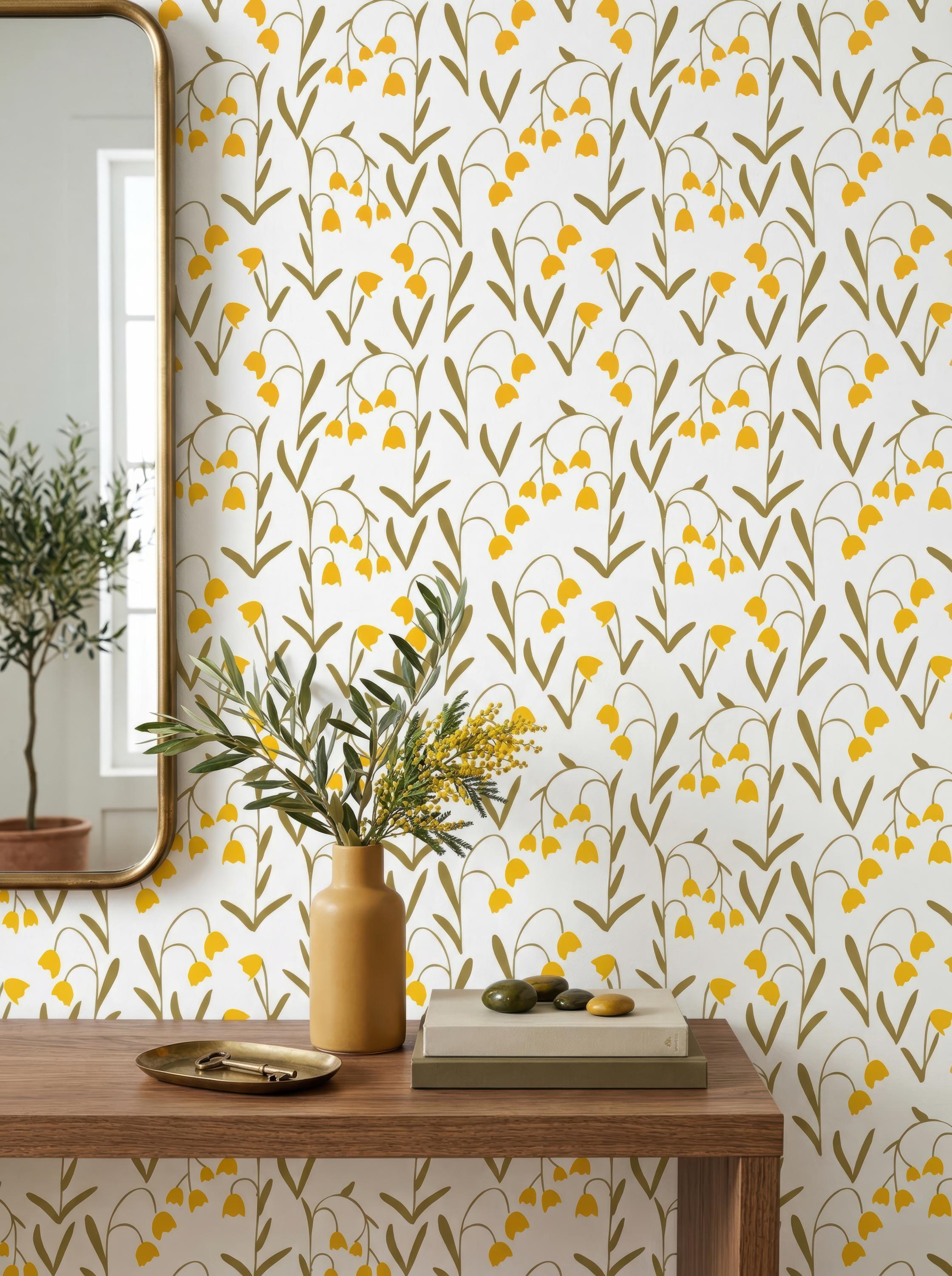 Brighten your space with the cheerful charm of this lilies of the valley peel and stick wallpaper mural 🌼✨. Featuring delicate yellow lily flowers against a soft, neutral background, this floral wall art brings a touch of nature's elegance to your home. The vintage botanical design is perfect for adding a refreshing, natural vibe to your bedroom, living room, or cottagecore decor.