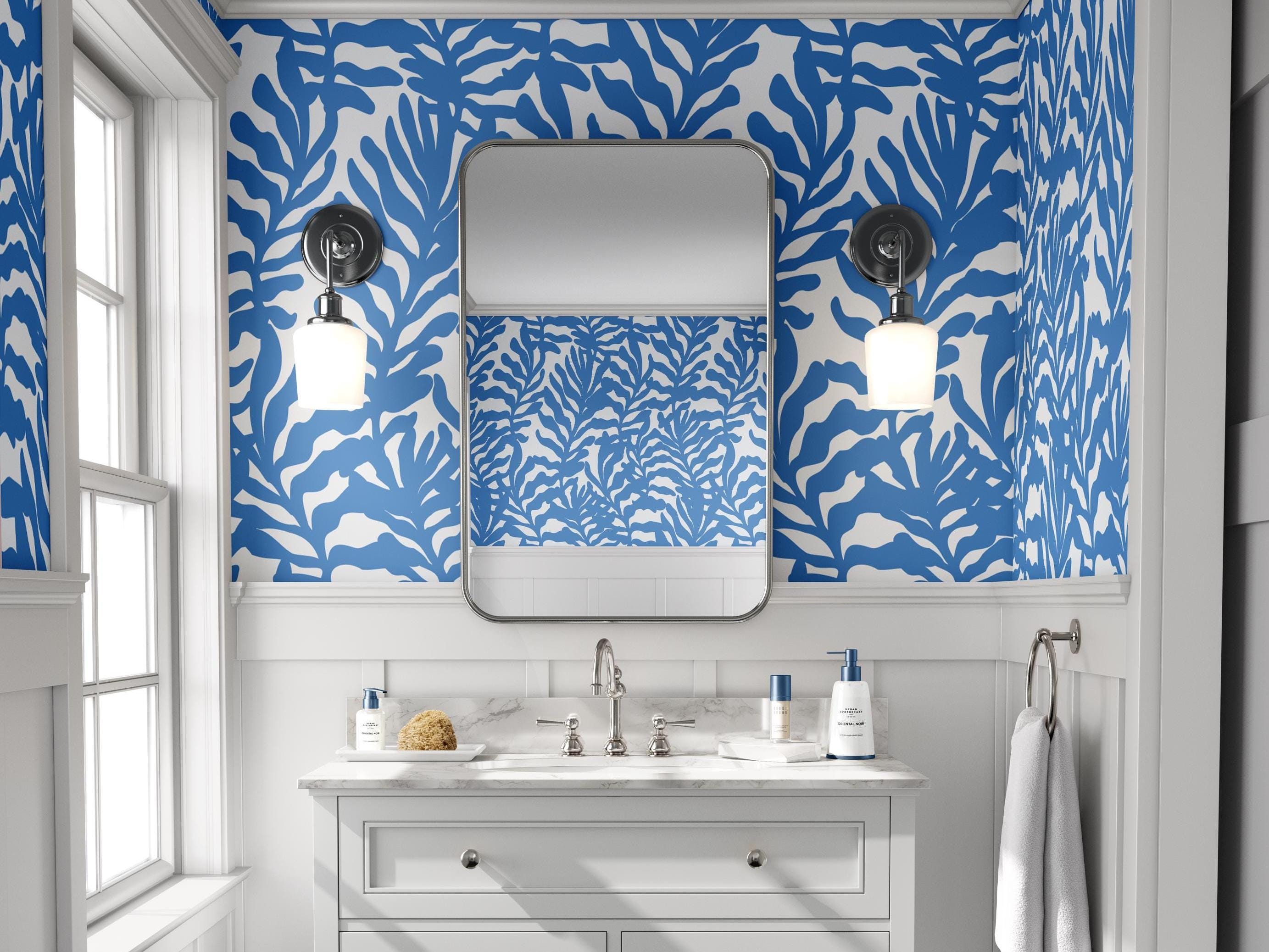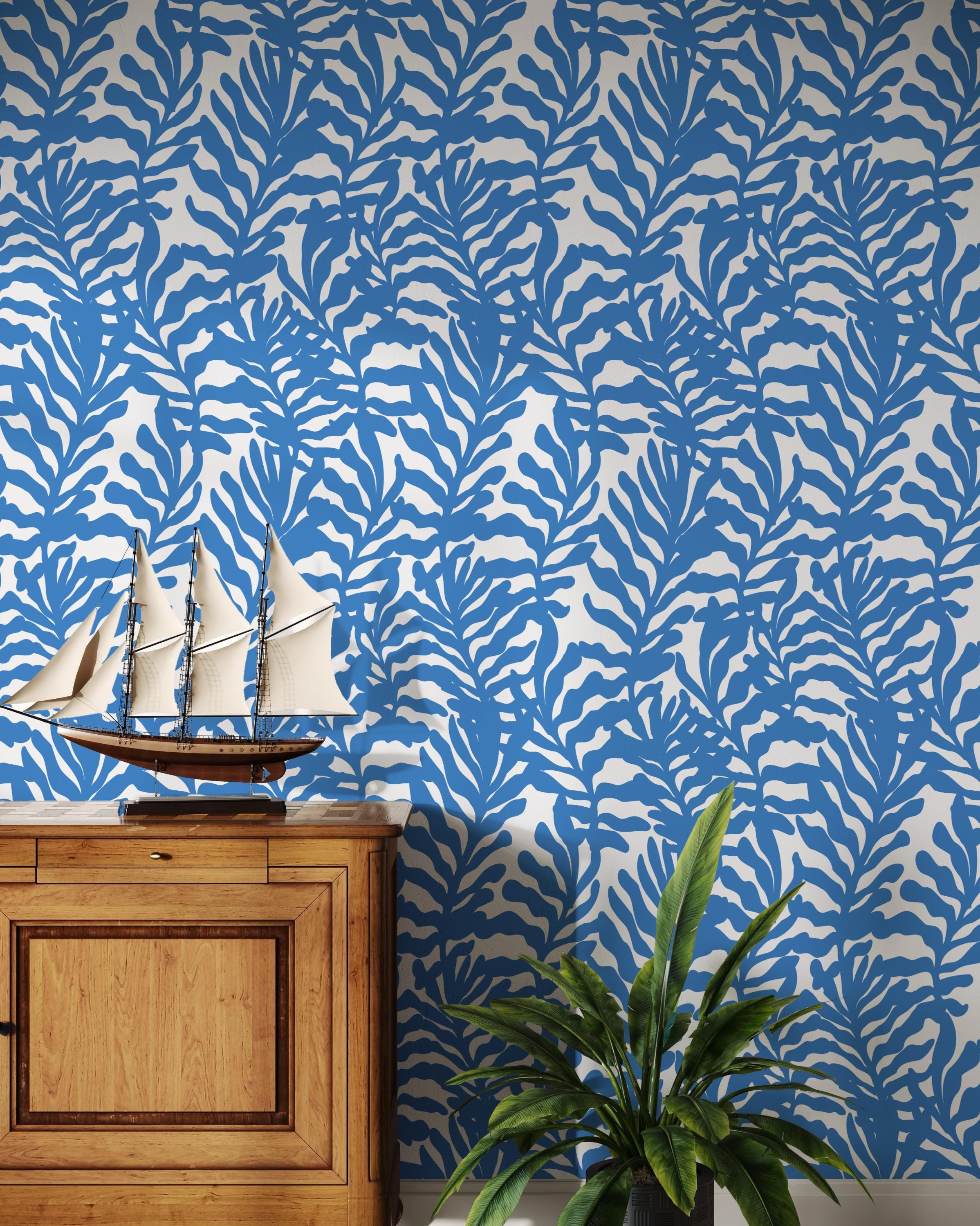 Deep Blue Coastal Wallpaper: Peel and Stick Nautical Wall Mural