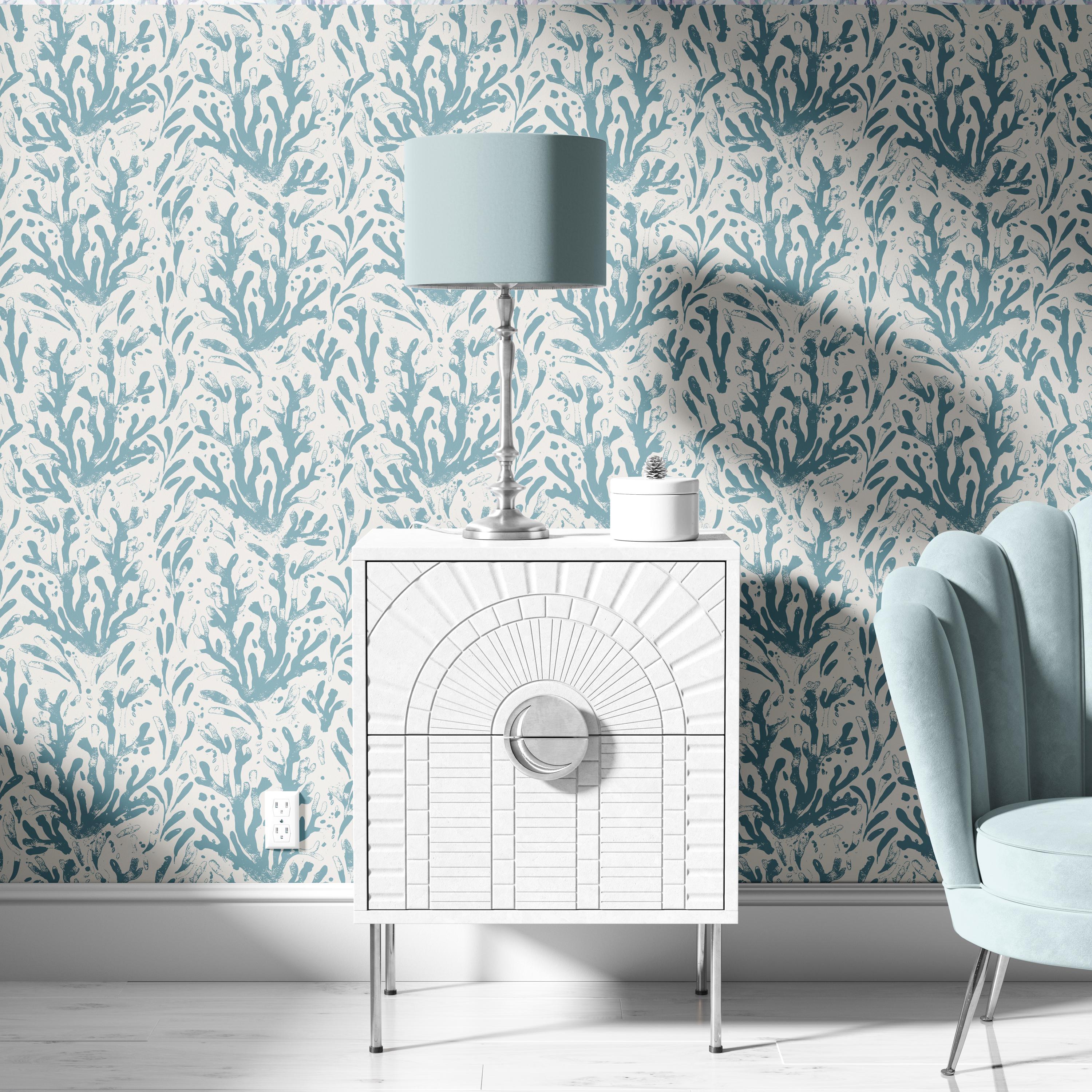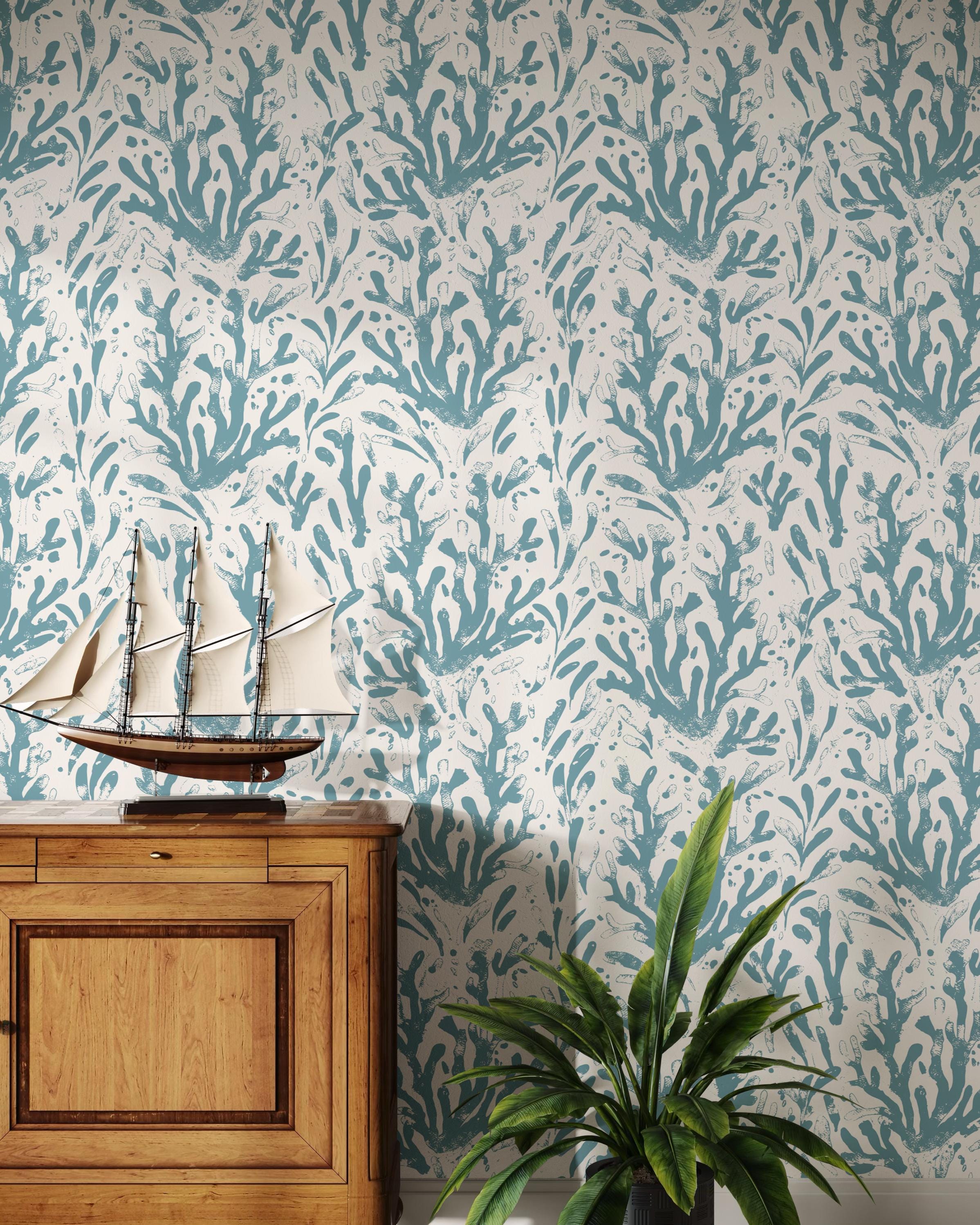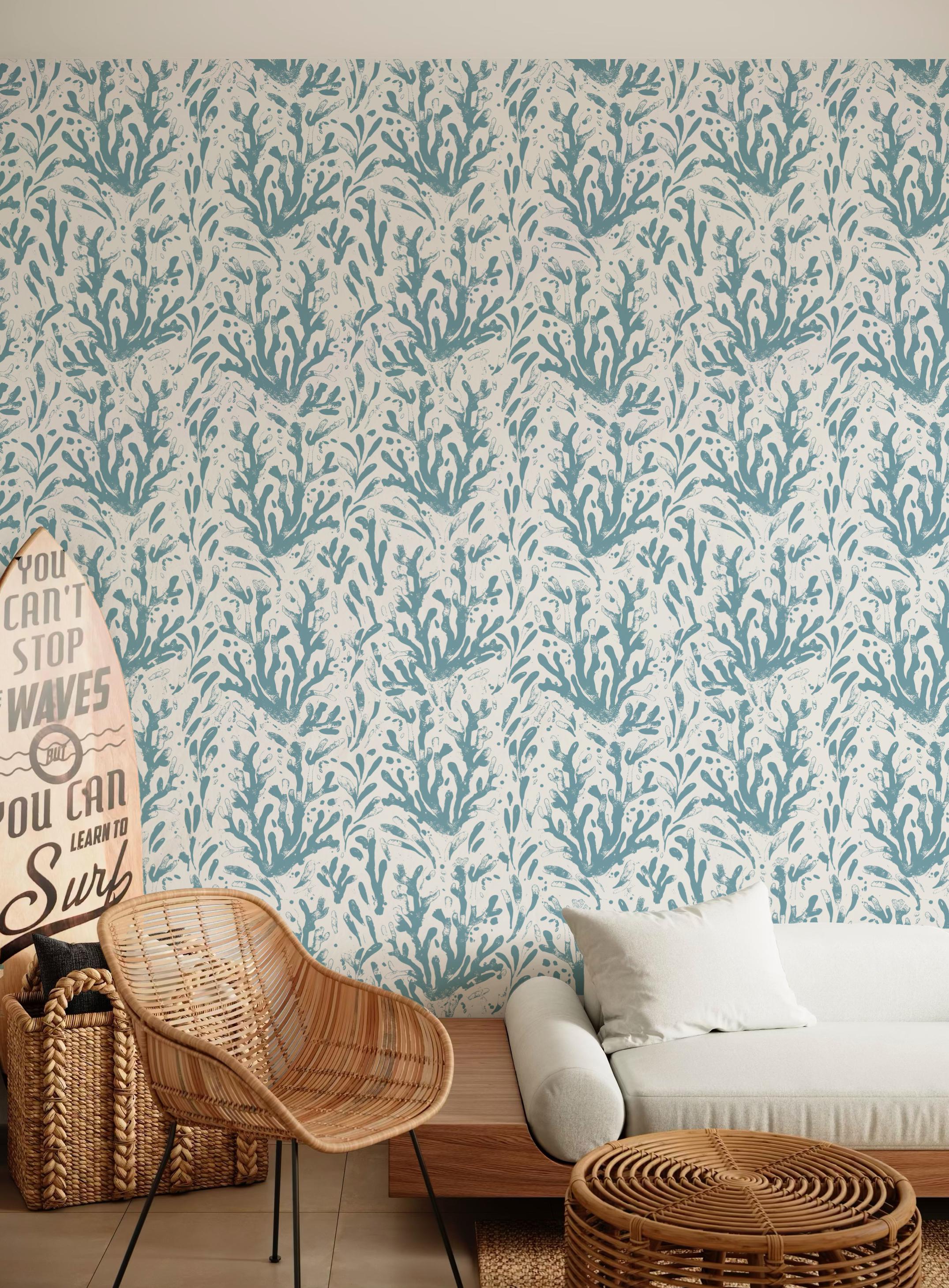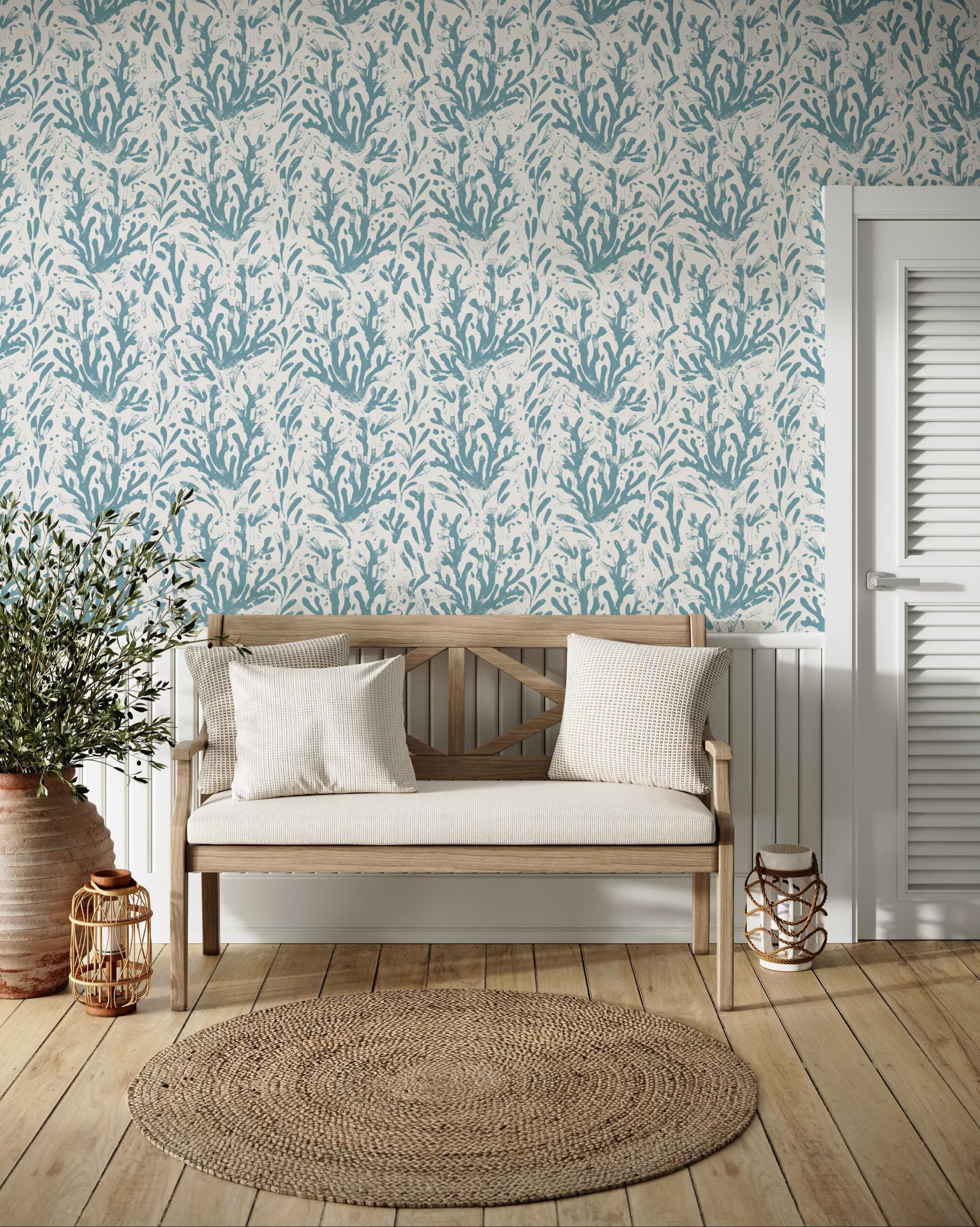 Blue Coral Peel and Stick Wallpaper: Coastal Beach House Decor
