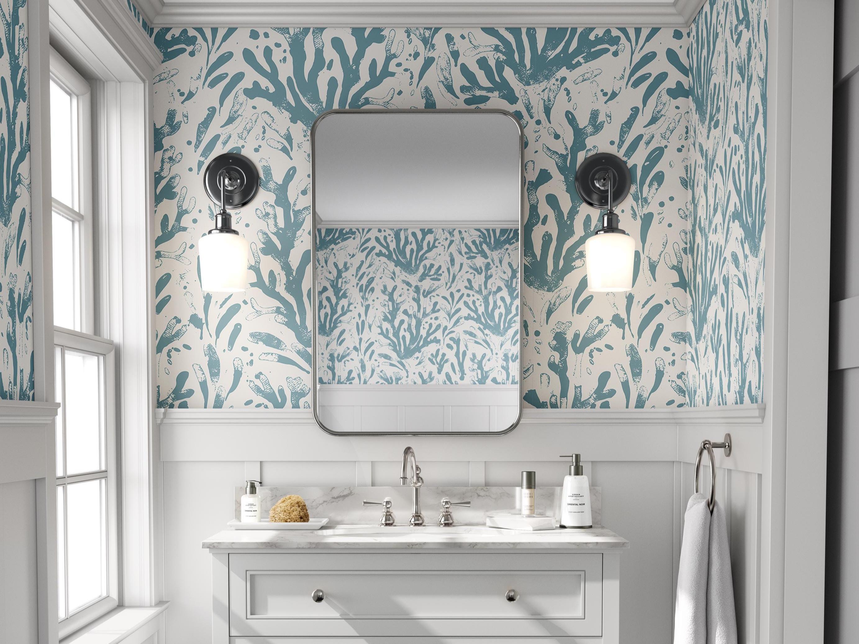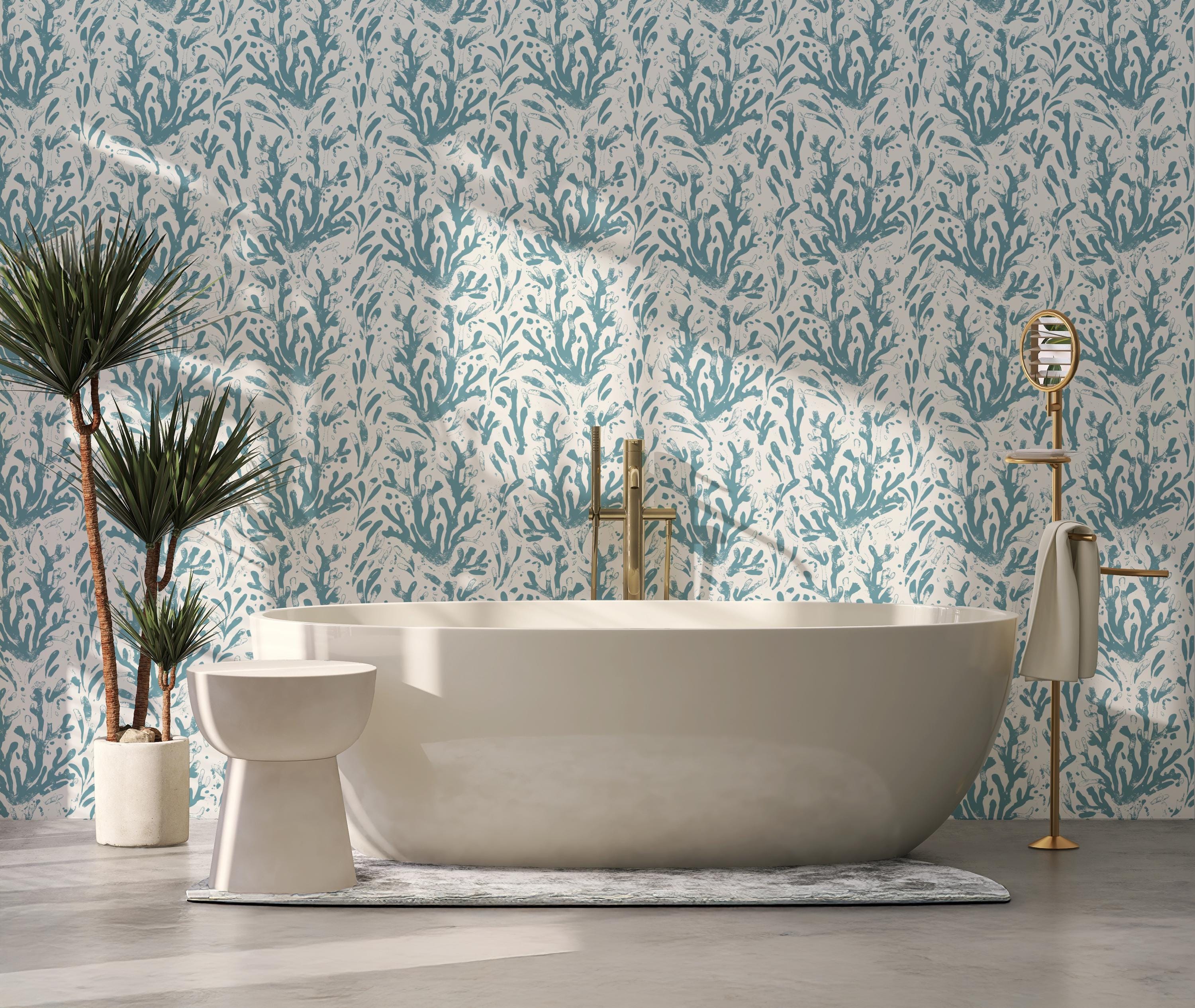 Blue Coral Peel and Stick Wallpaper – Coastal Wall Mural – Removable Vinyl – Ocean-Inspired Wall Art – Beach House Decor – Bathroom, Bedroom, Nursery