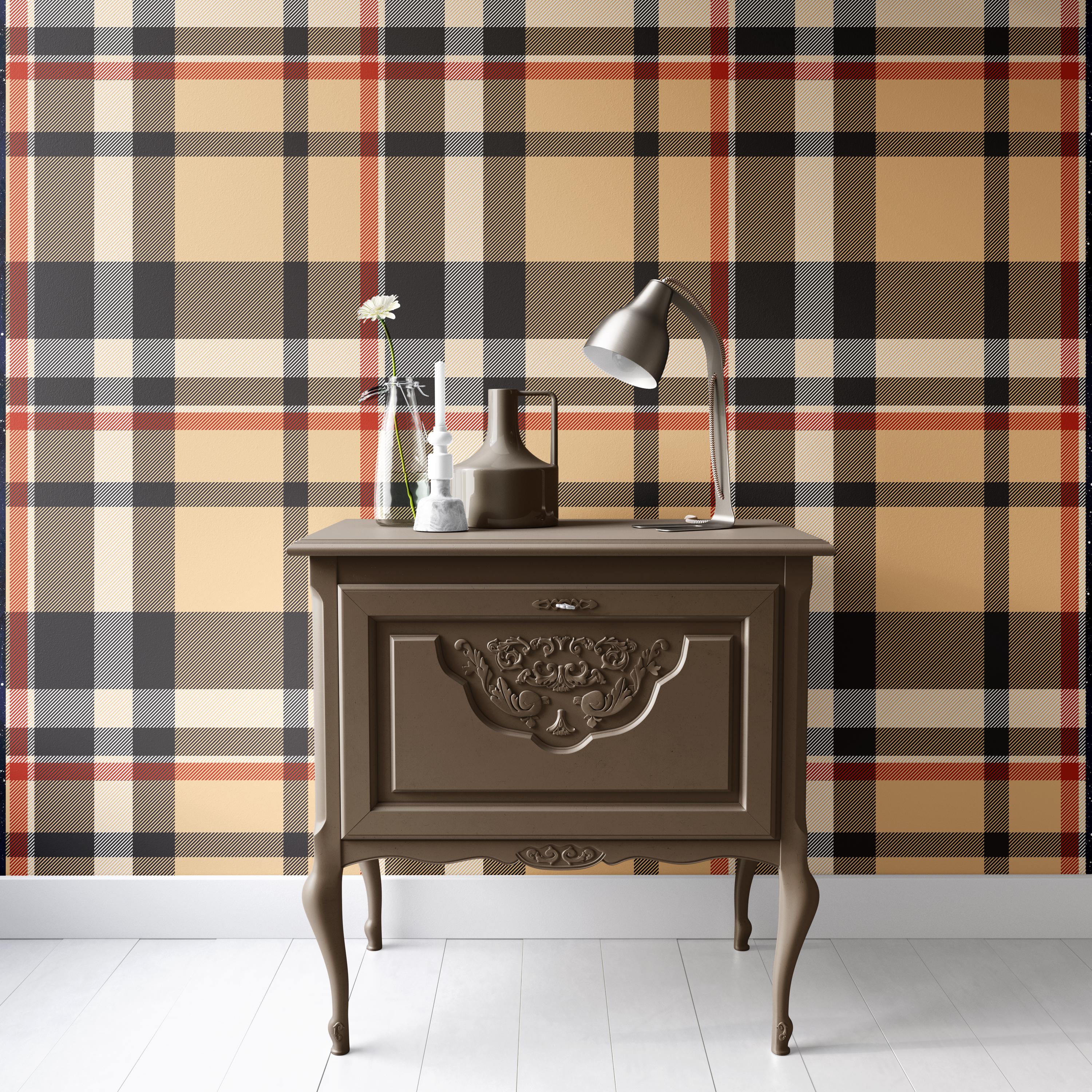 Beige Brown Plaid Wallpaper: Tartan Farmhouse Decor, Peel and Stick