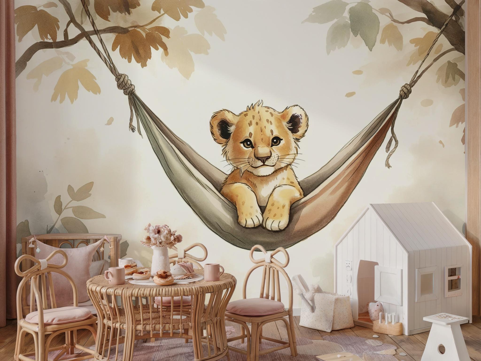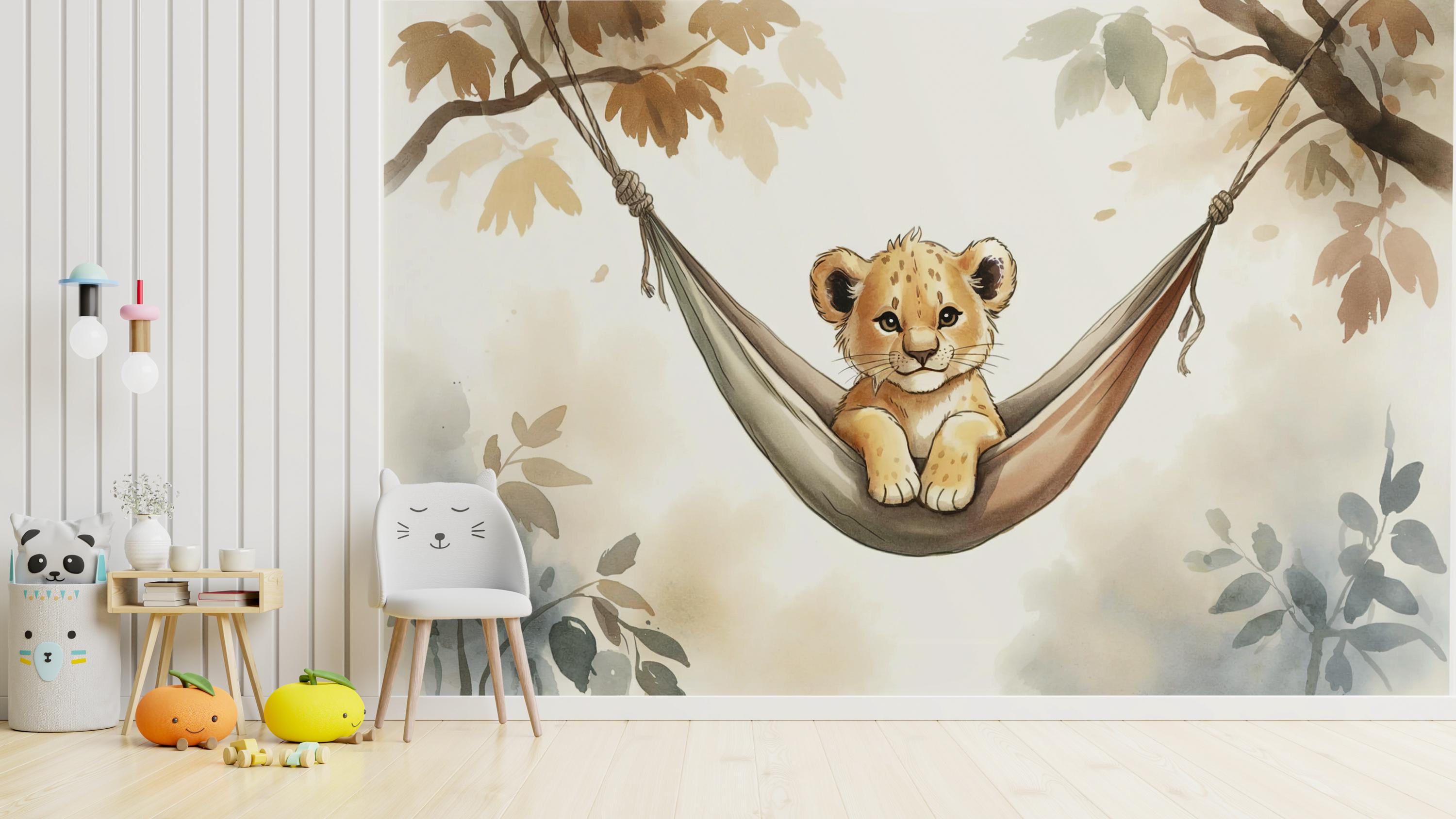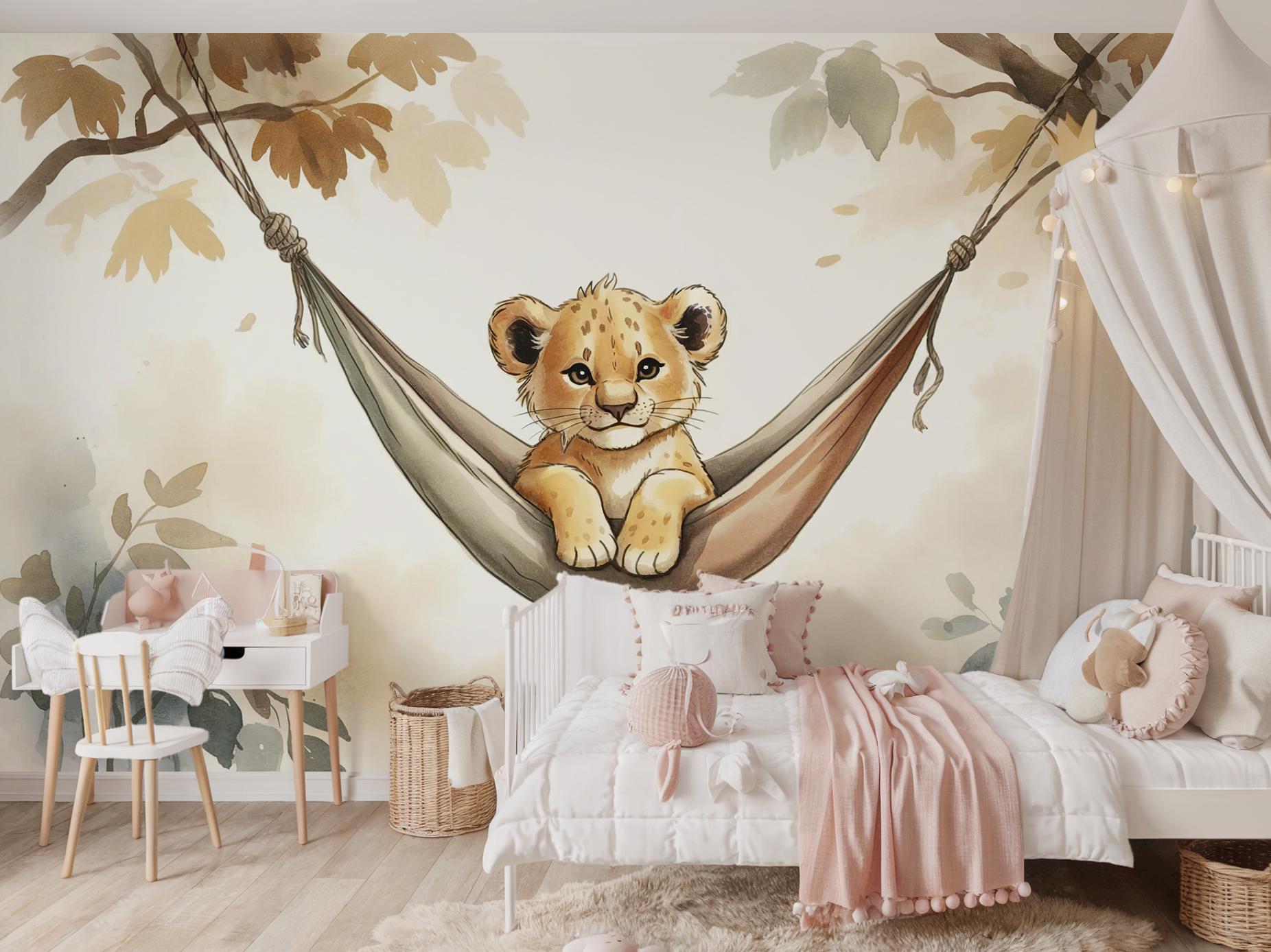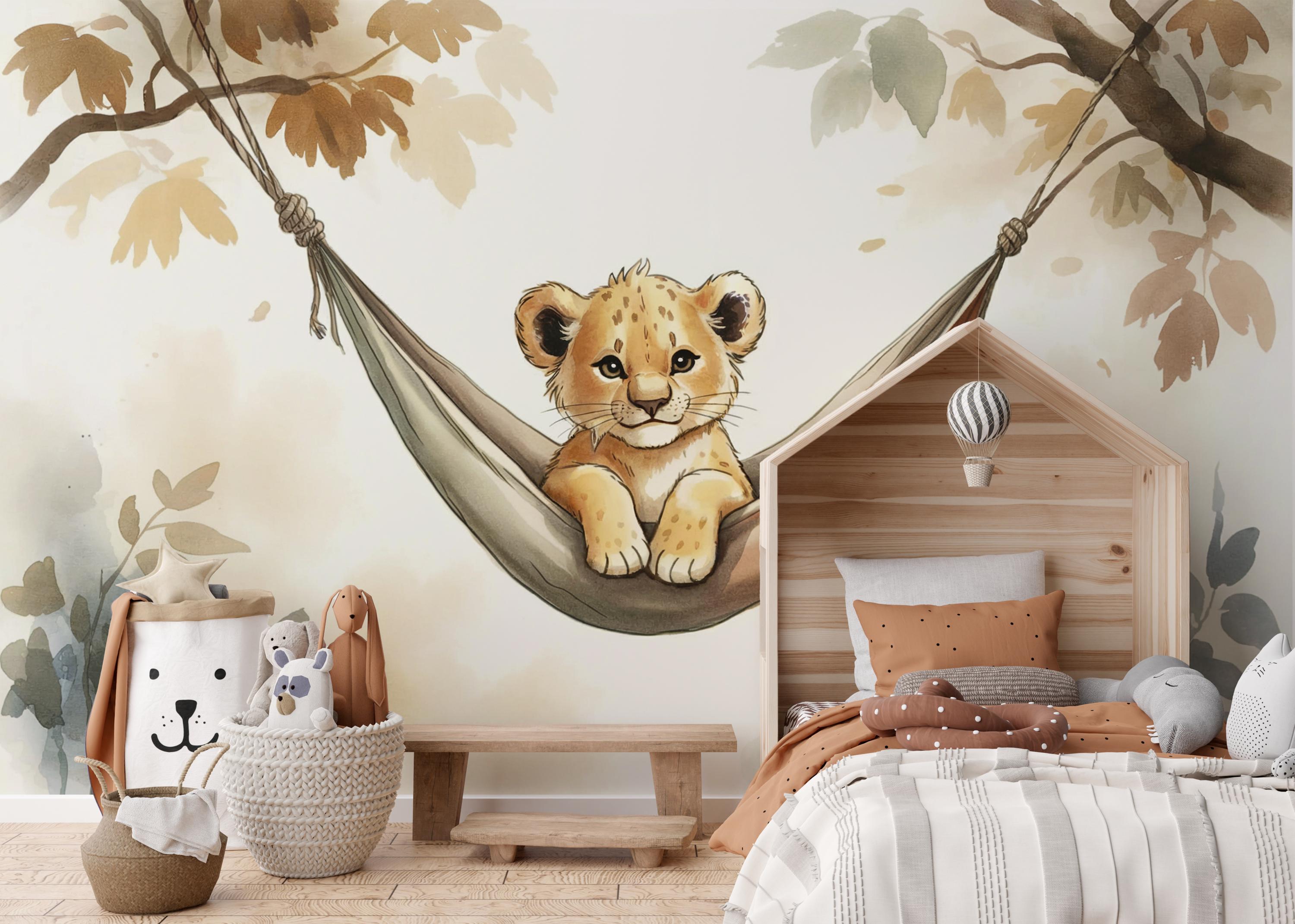 Create a cozy safari adventure with this adorable peel and stick wall mural featuring a baby lion lounging in a hammock 🦁🌿. Perfect for nurseries, kids’ rooms, or play areas, this jungle-themed wallpaper adds warmth, personality, and a gentle wild touch to any space!
