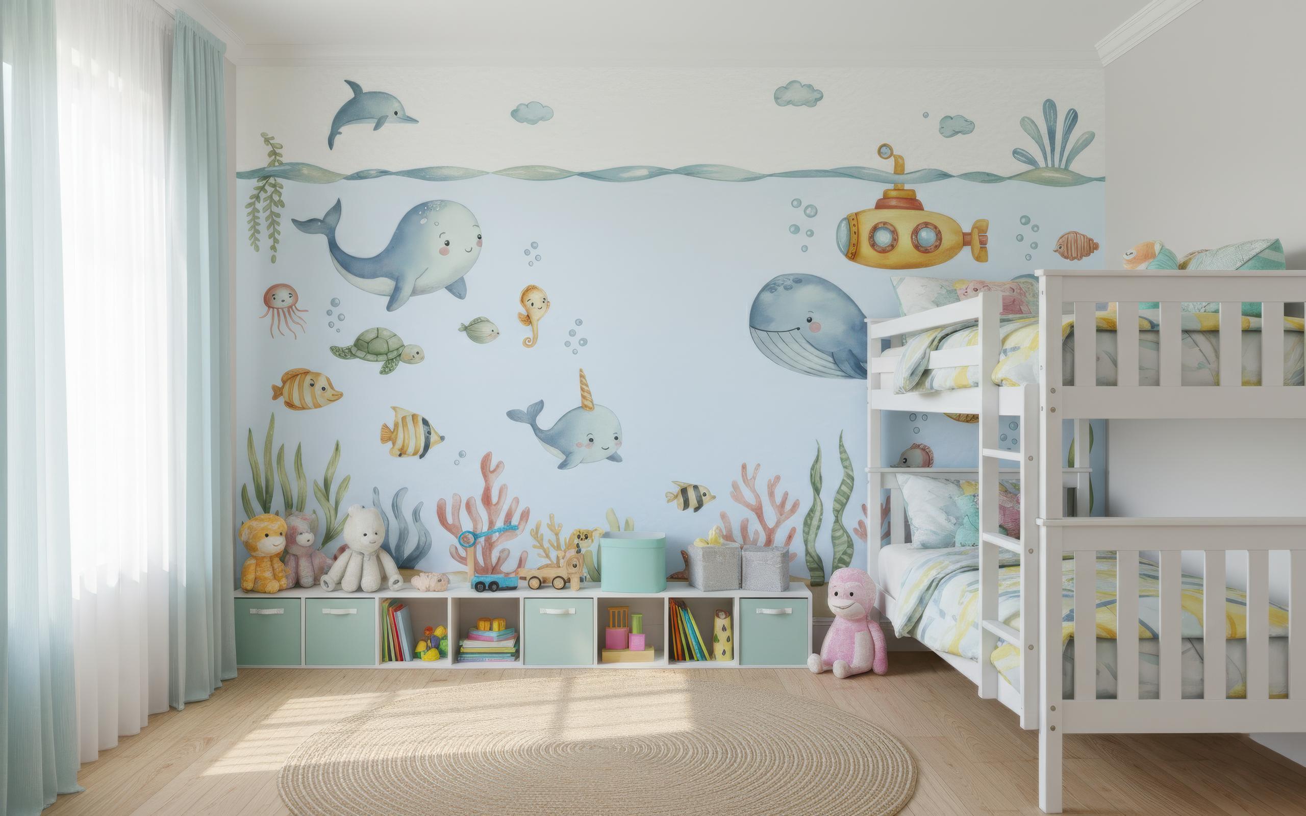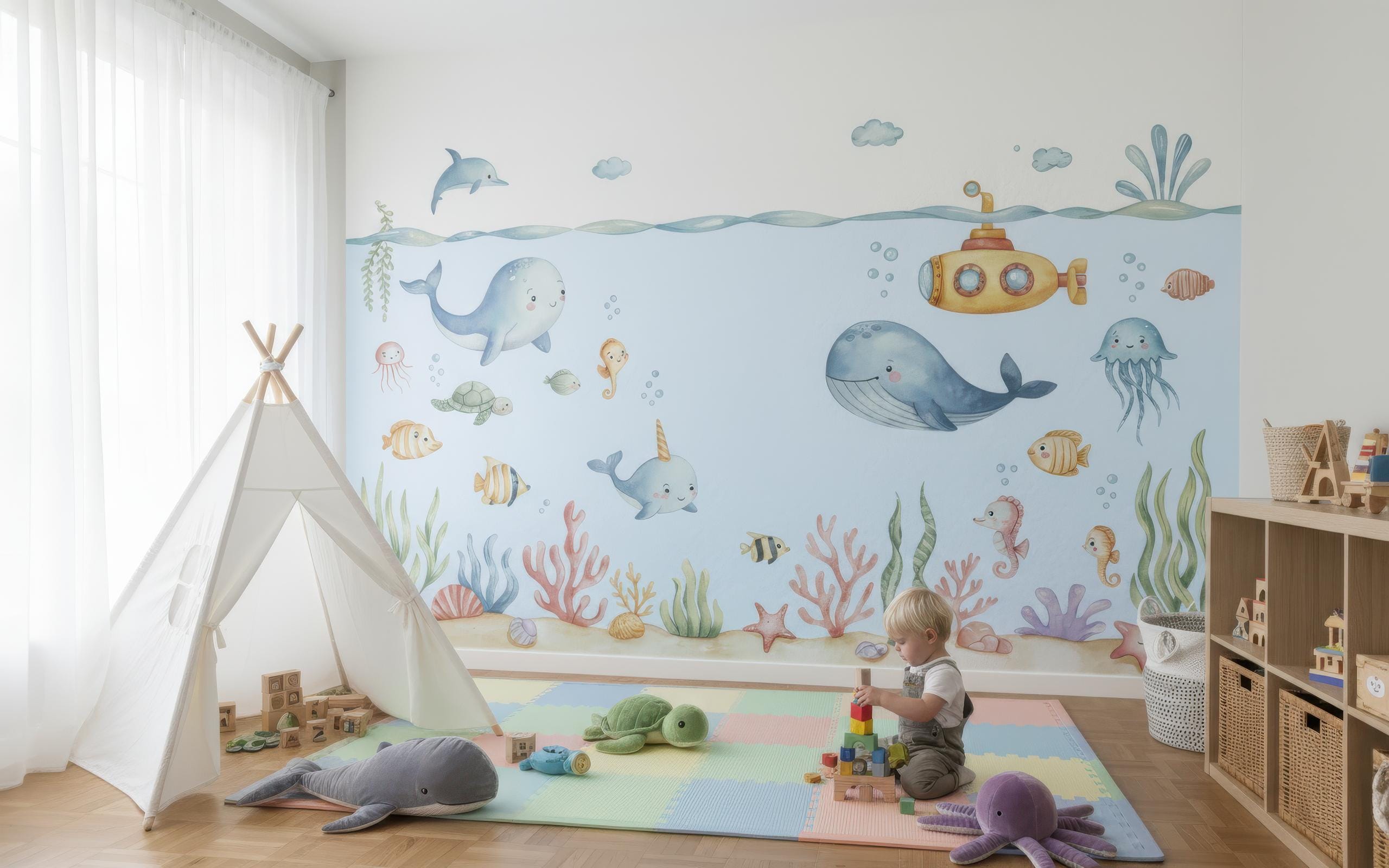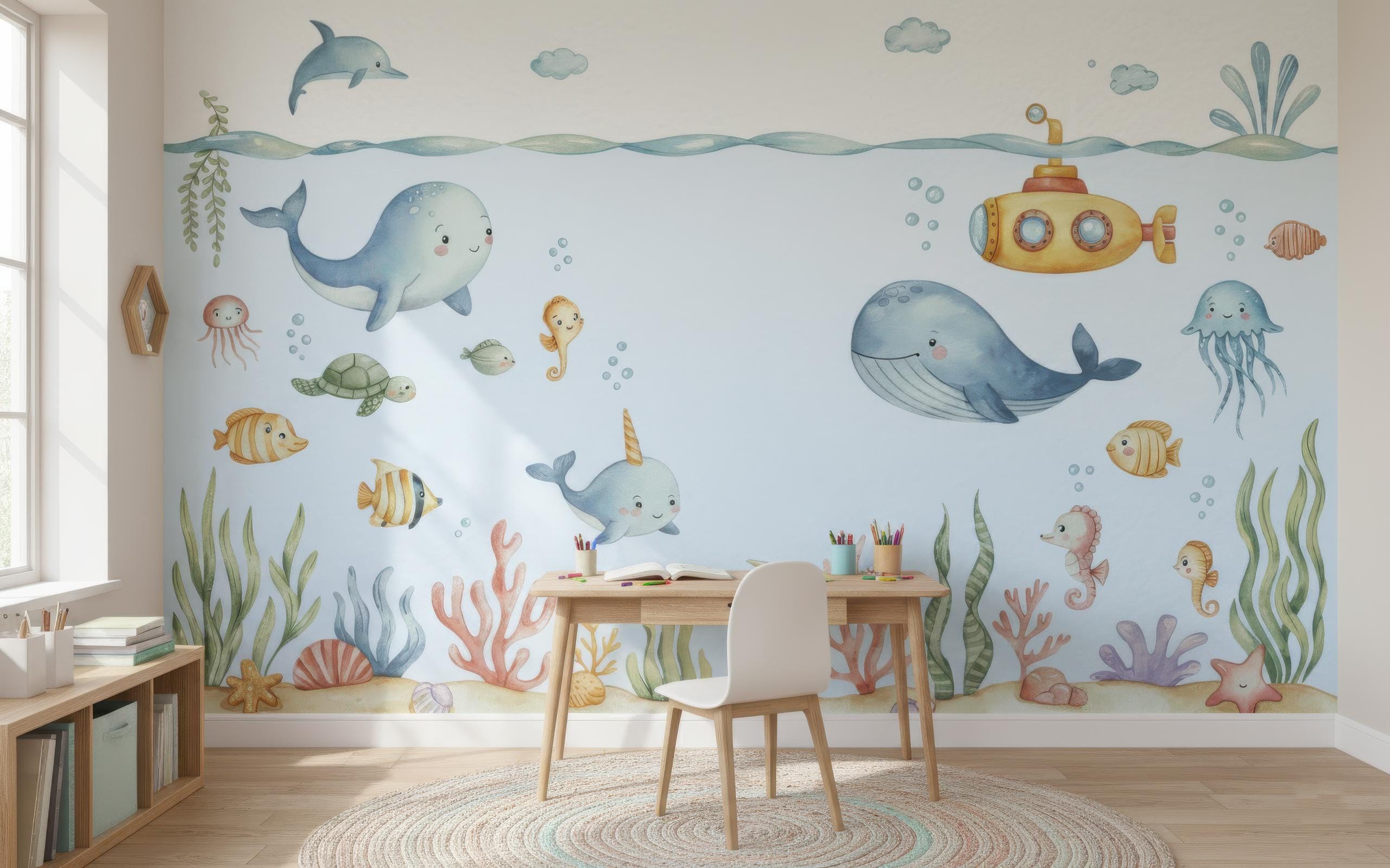 I cannot describe how perfect this wallpaper is for our baby’s nursery! Atilla was able to perfectly bring this to life. She rendered the image to fit our dimensions, was extremely responsive and knowledgeable, and made me feel so confident in our purchase. She was able to print and send it so expeditiously because we had painters and installers coming in. Because we had it professionally installed, we chose the non-woven textured and it is such a beautiful look and feel. Most people think it was hand painted. Our installer was also very impressed with the quality of the materials and the ease of installation (took him 30 minutes). It is a pricey purchase but worth every penny to create something special and unique. Thank you, Atilla and MarselaDesigns for helping us create an under the sea escape for our baby’s nursery!