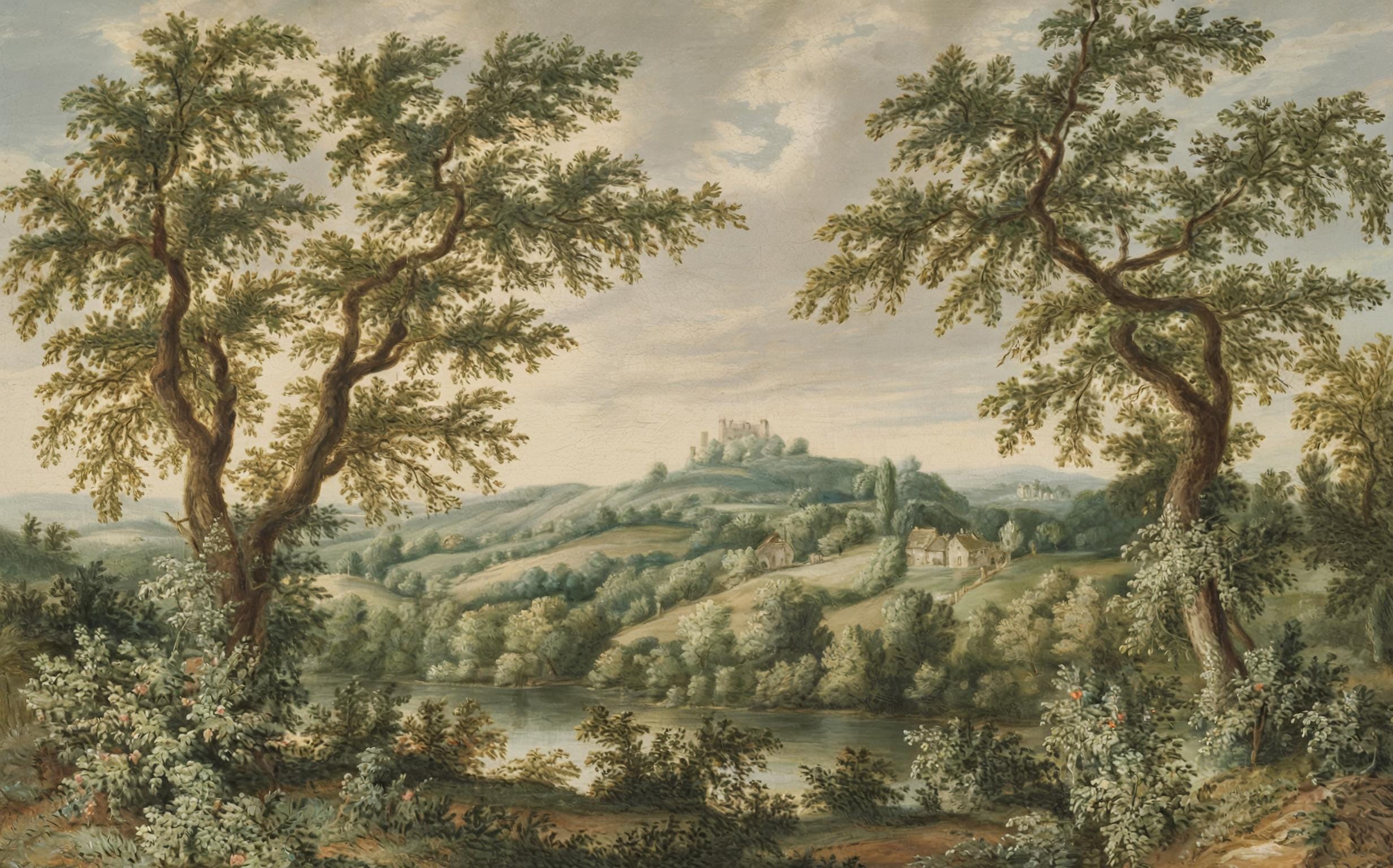 Vintage Pastoral Landscape Wallpaper: Removable Countryside Wall Mural