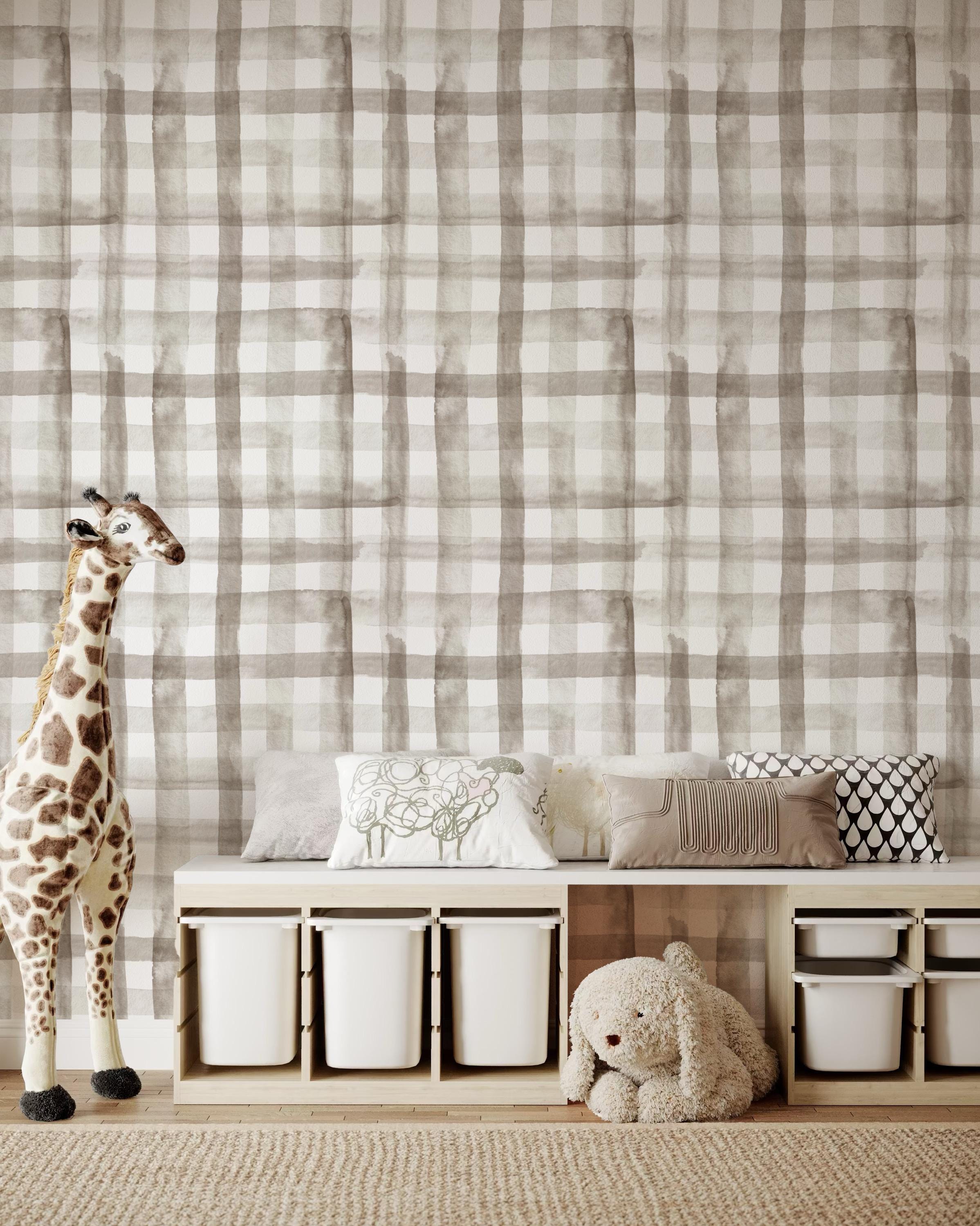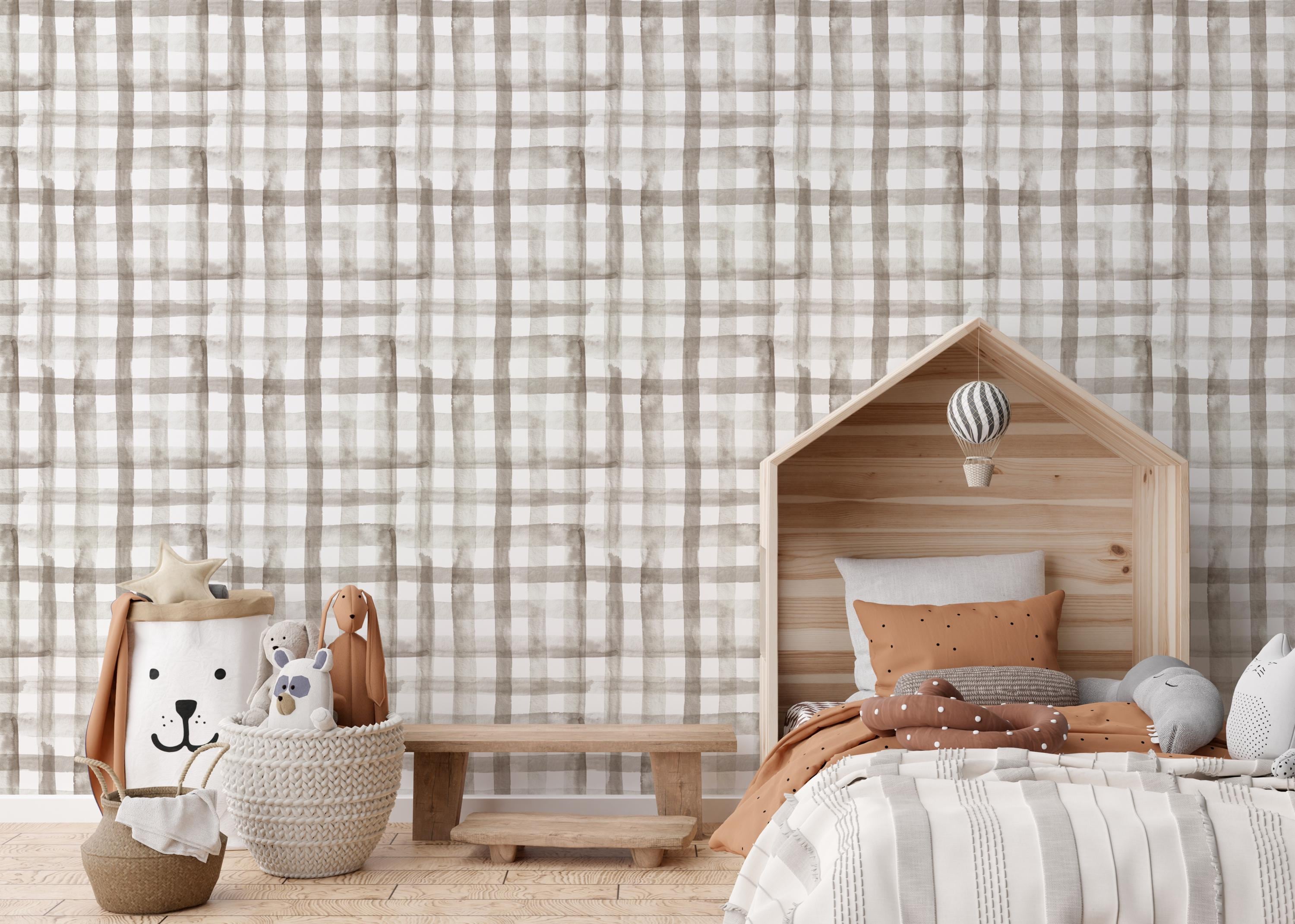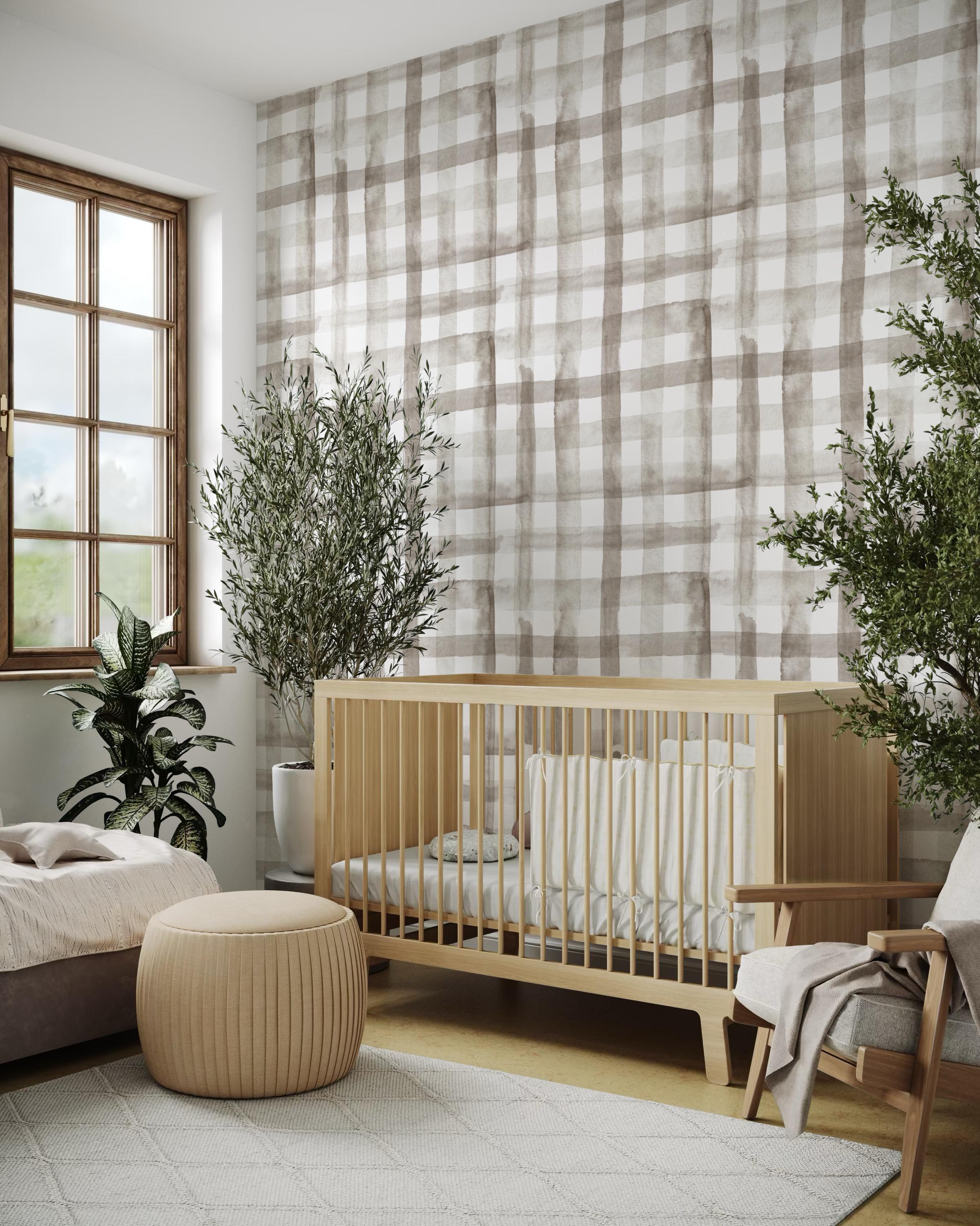 Beige Plaid Peel and Stick Wallpaper: Modern Farmhouse Nursery Decor