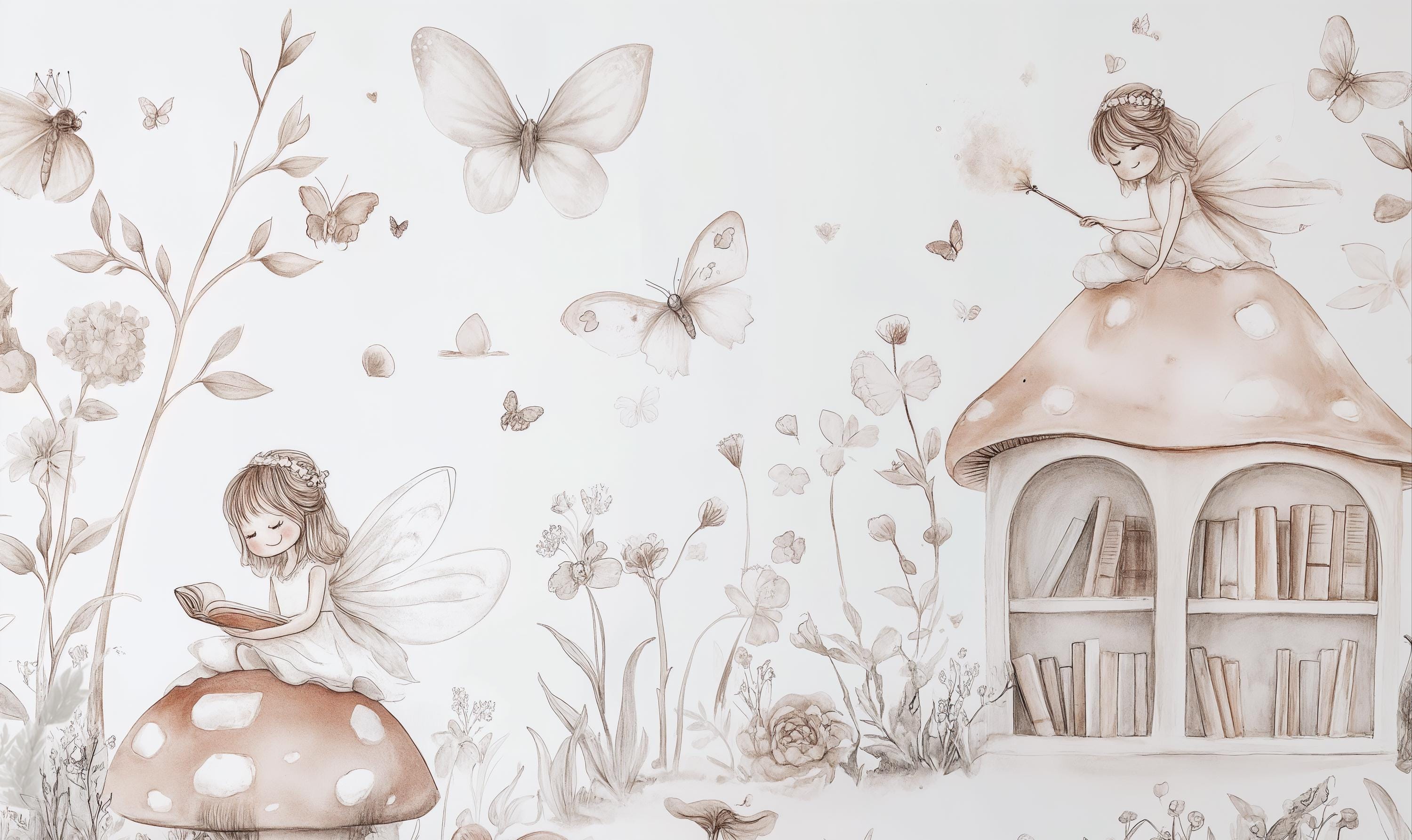 🍄 Features charming fairies, mushrooms, butterflies, books, and floral designs in soft neutral hues