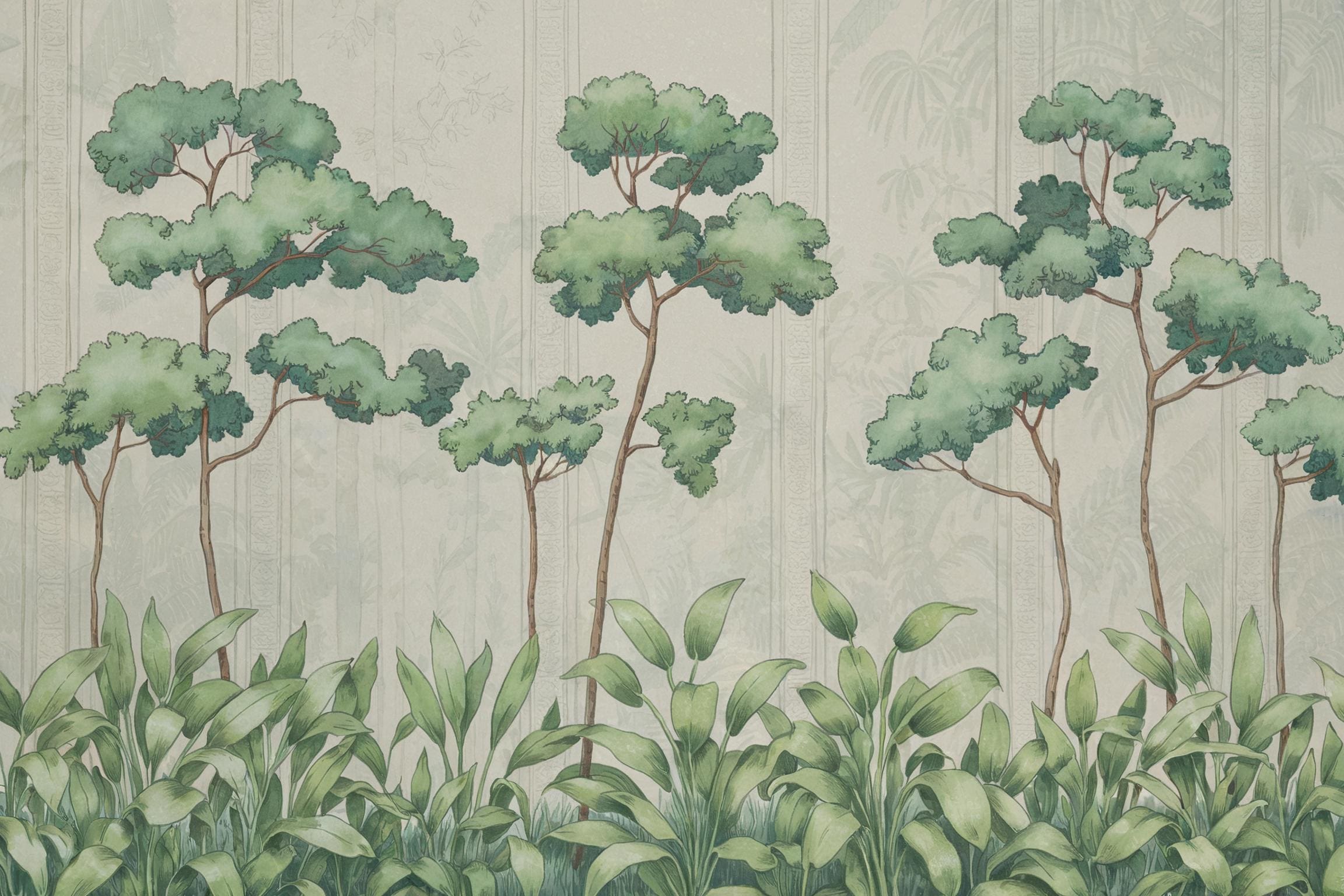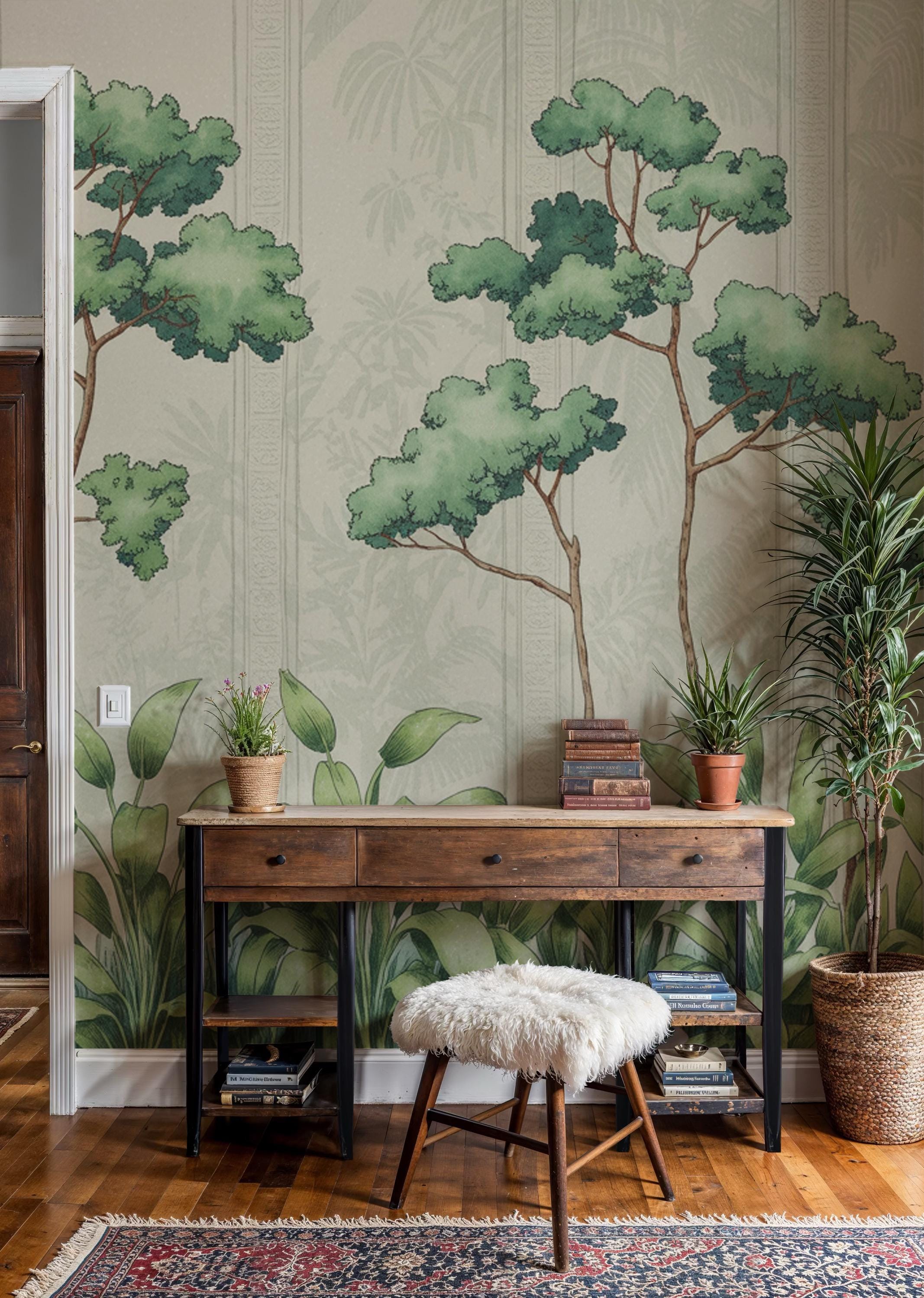 Green Tropical Forest Mural : Jungle Tree Wallpaper (Peel and Stick or Traditional)