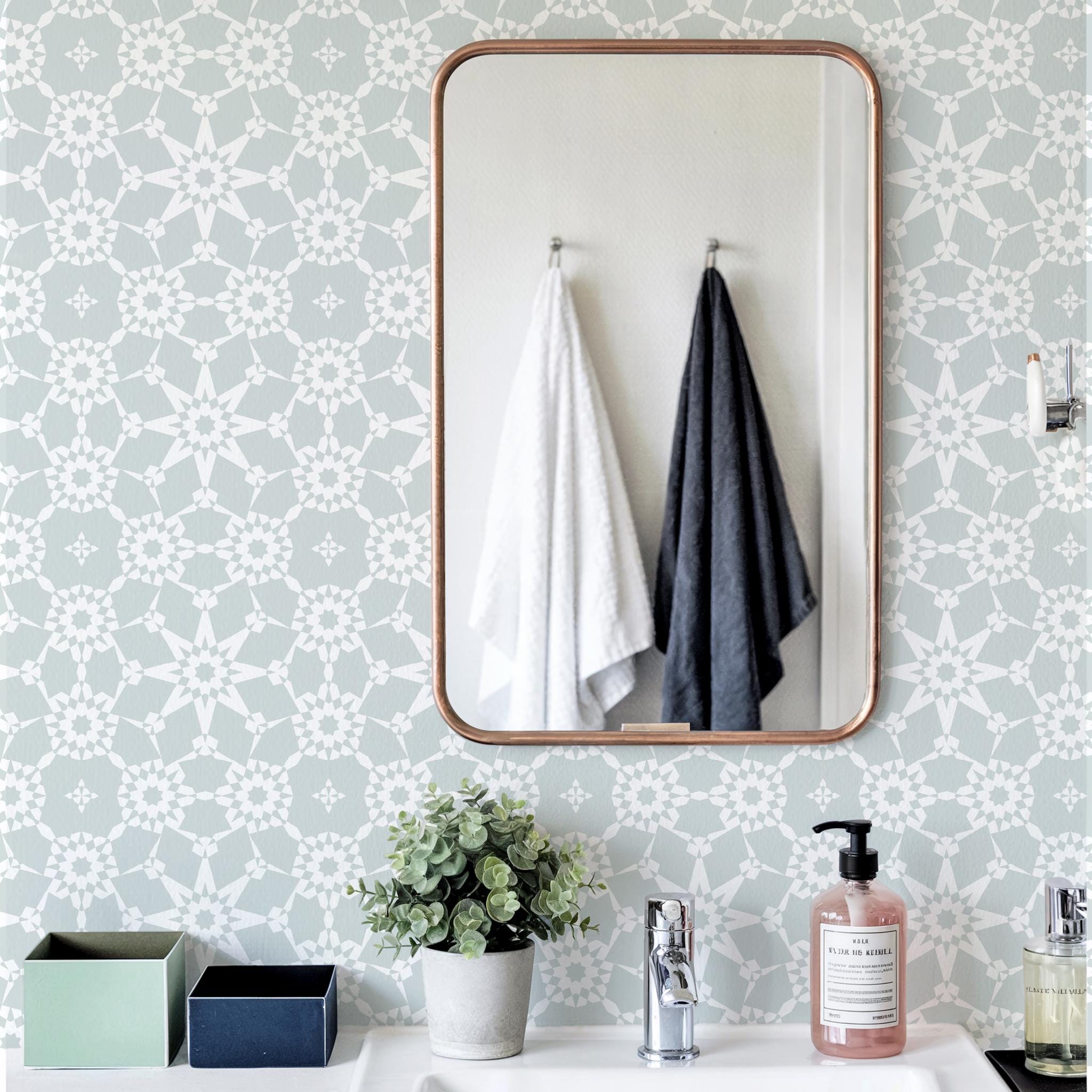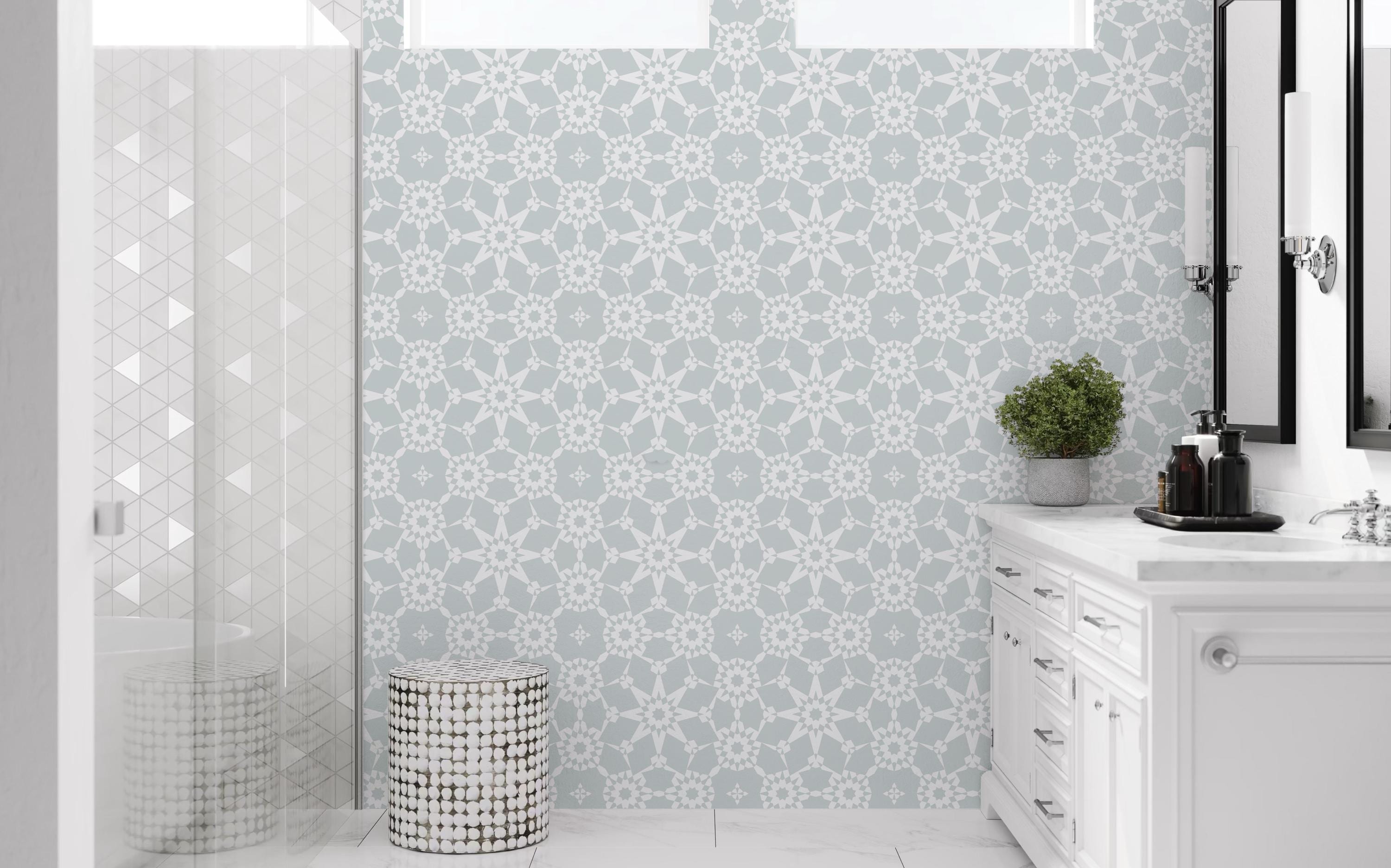 Add sophistication to your bathroom or any room with this peel and stick or traditional wallpaper mural ✨. Featuring a delicate geometric pattern in soft tones, it’s perfect for creating a modern, minimalist, or elegant look. Ideal for bathrooms, bedrooms, living rooms, or office spaces.