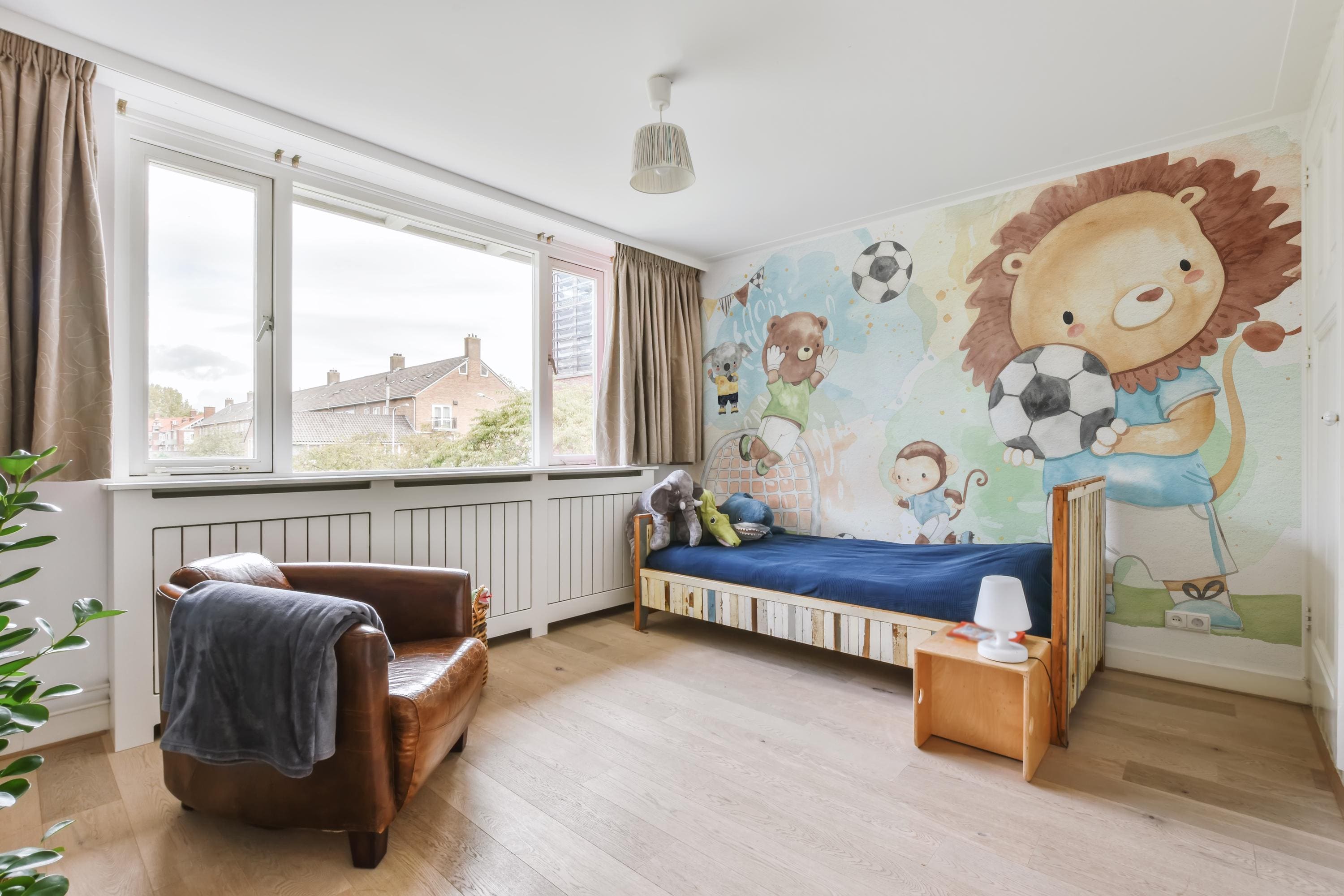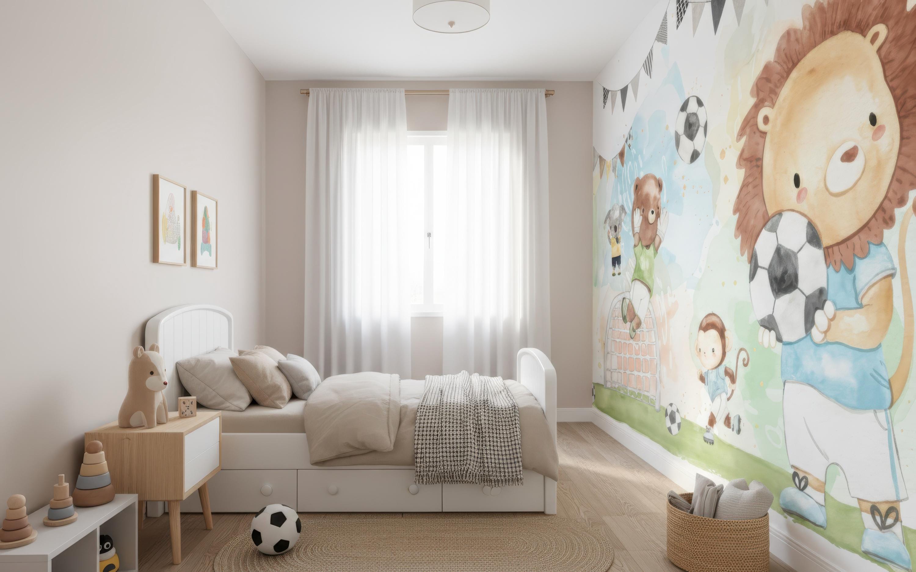 Cute Soccer Animal Kids Wallpaper Mural for Nursery or Playroom, Watercolor Jungle Animal Sports Theme Wall Decor for Boys Room