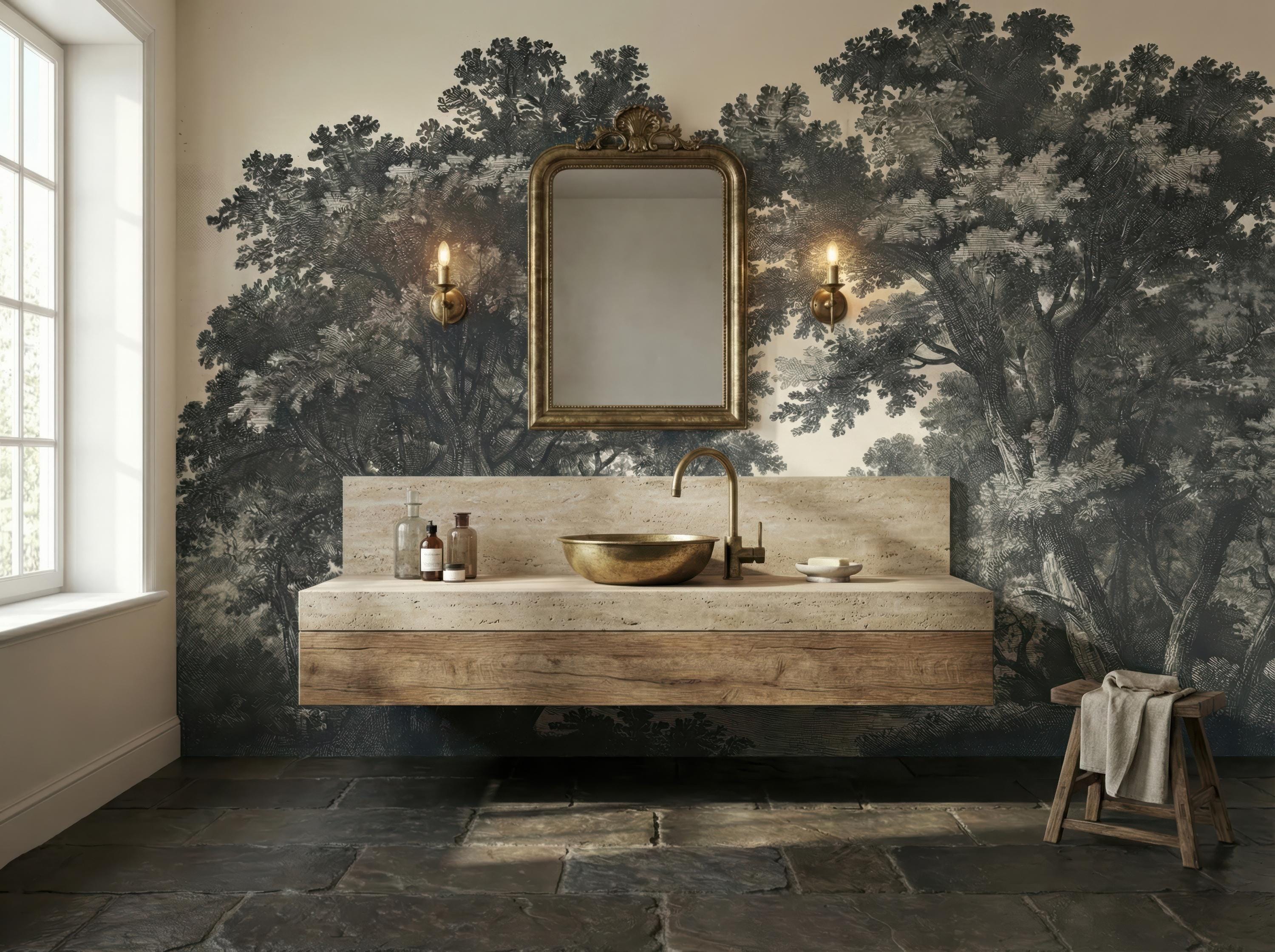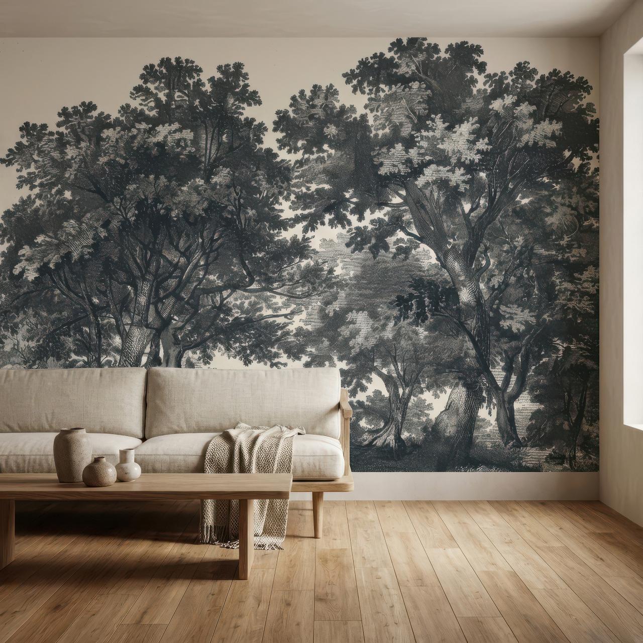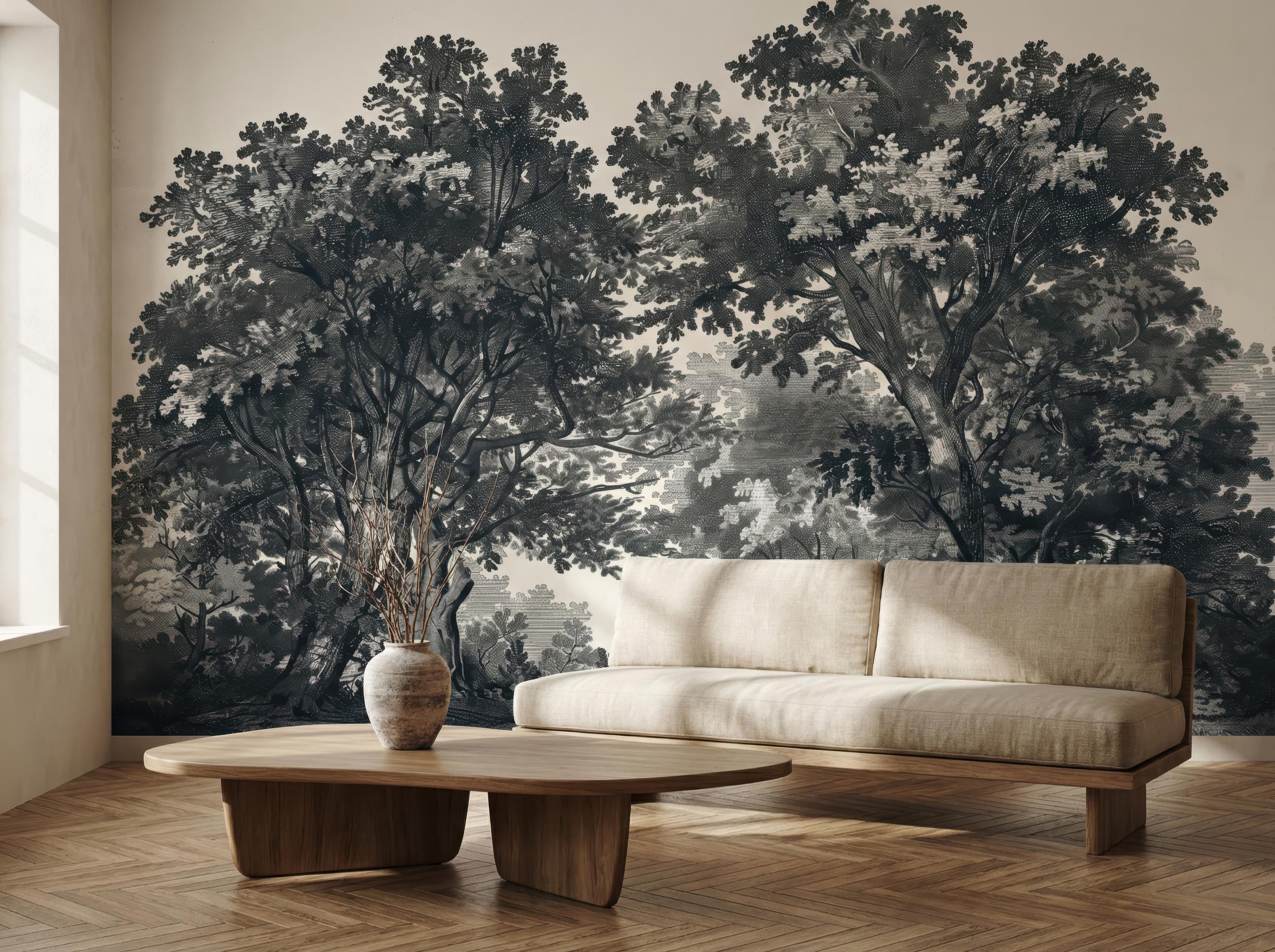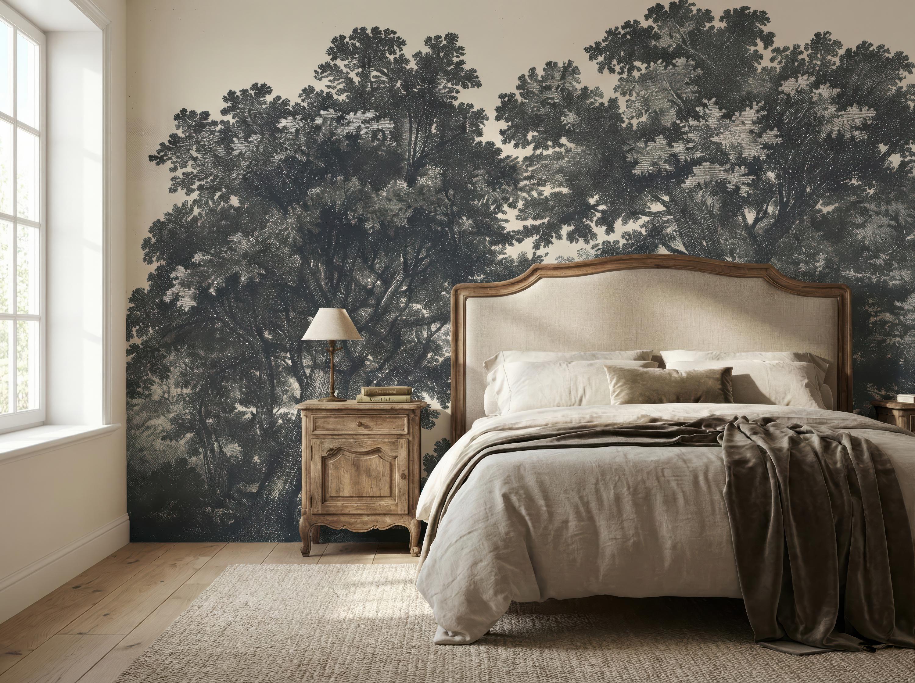 Moody Landscape Wallpaper, Vintage Forest Mural, Peel and Stick Rustic Tree
