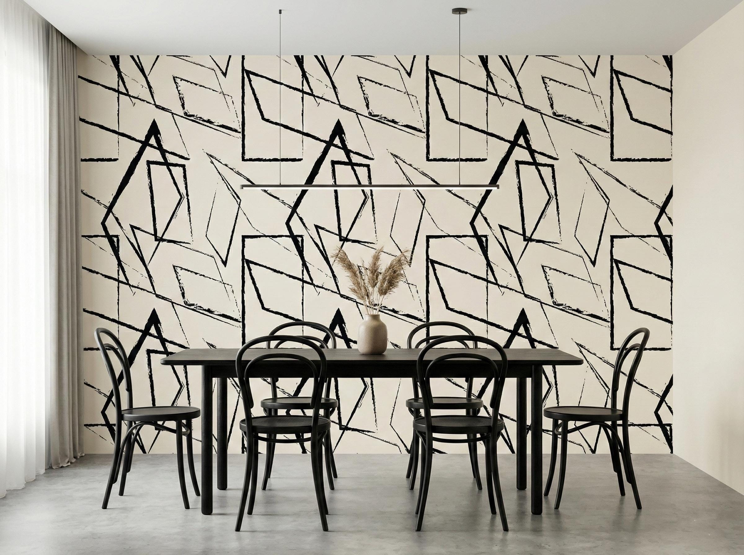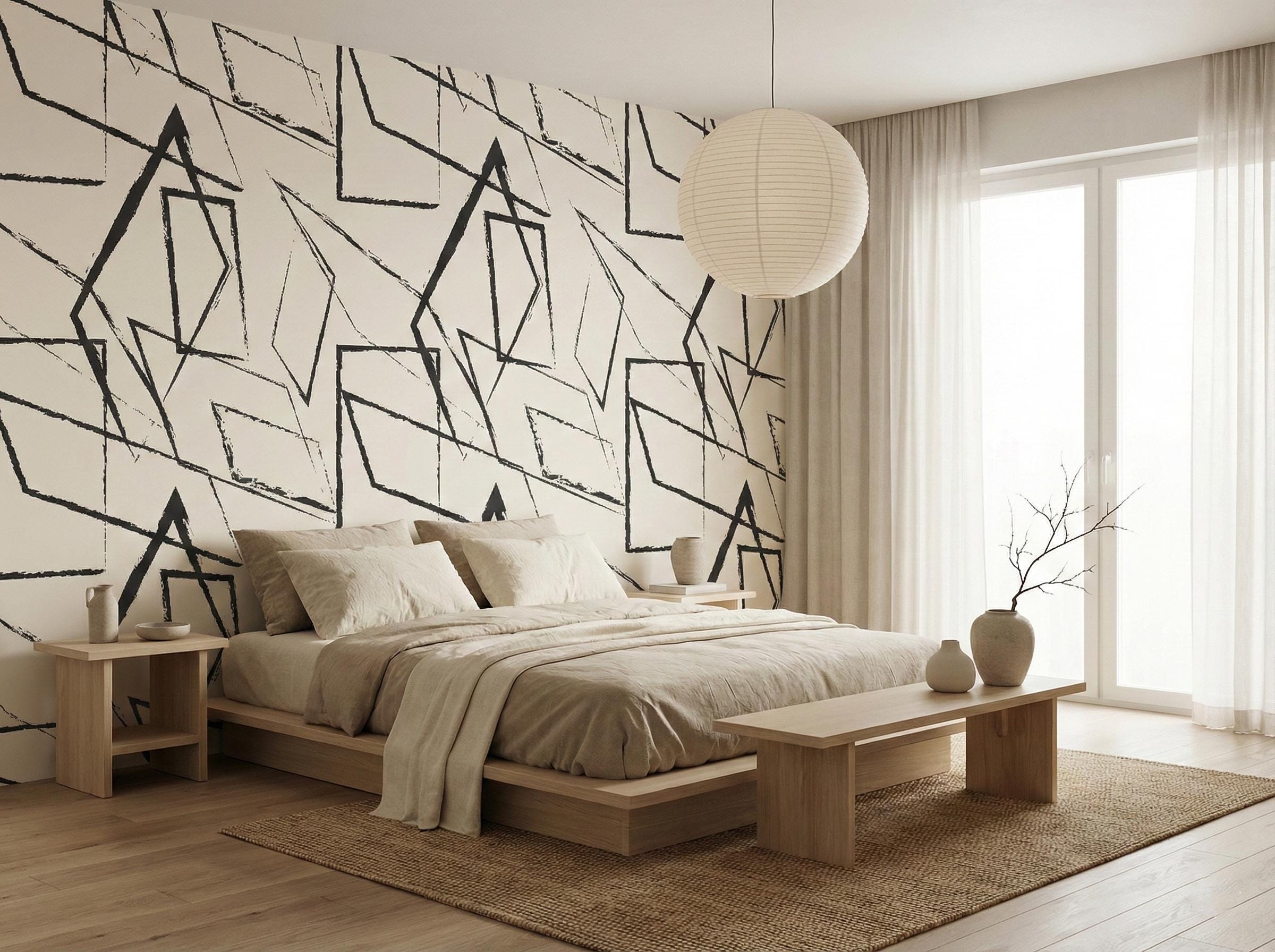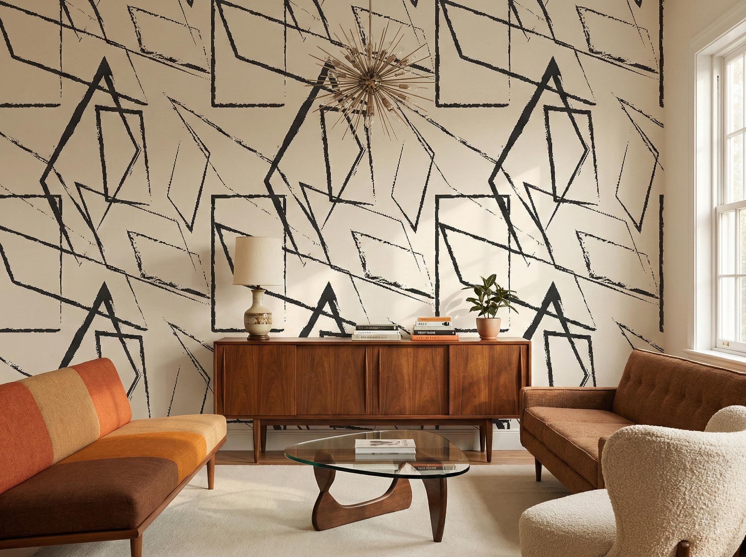 Abstract Geometric Wallpaper, Black and White Mural - Peel and Stick or Traditional Wall Decor