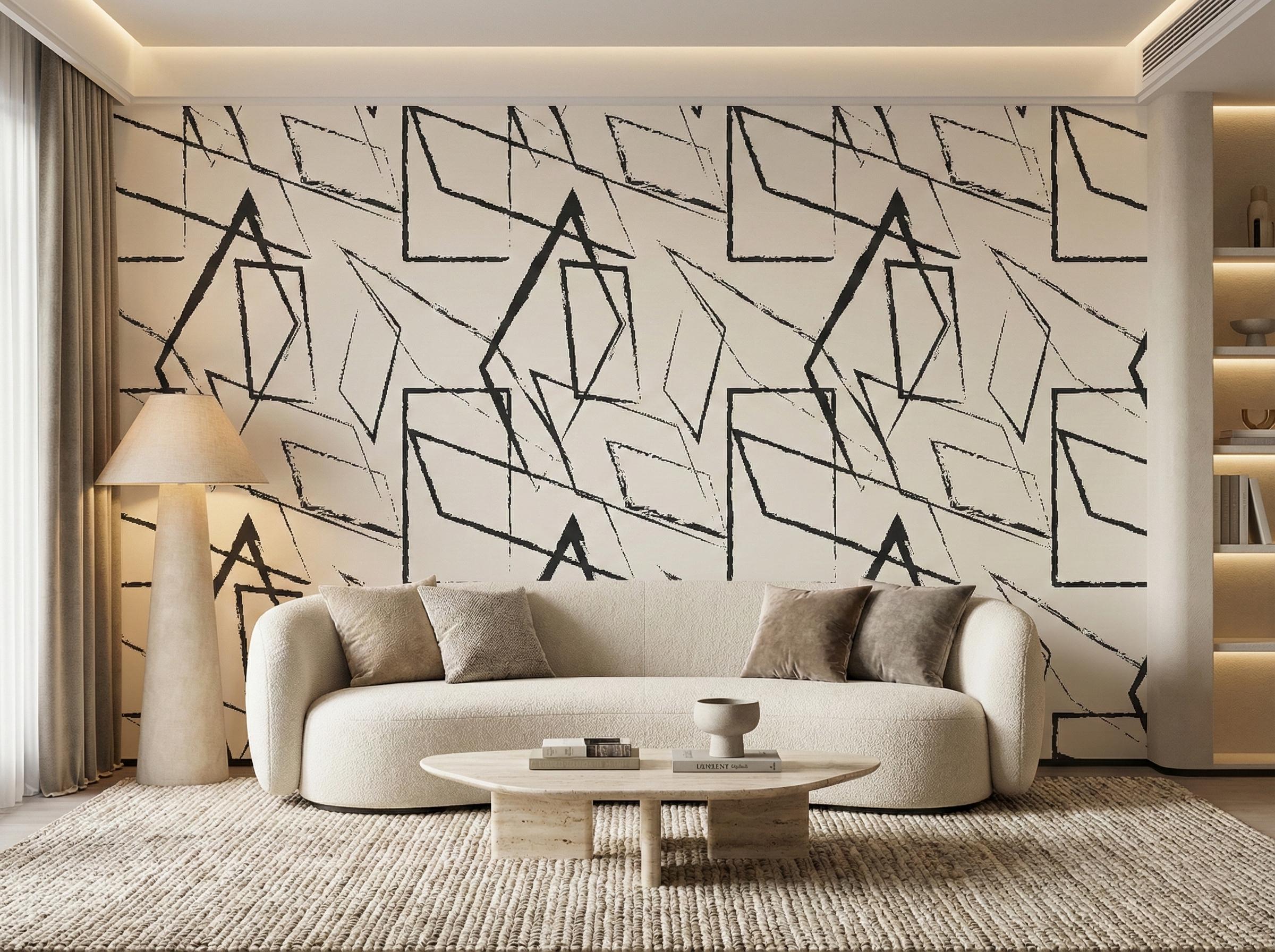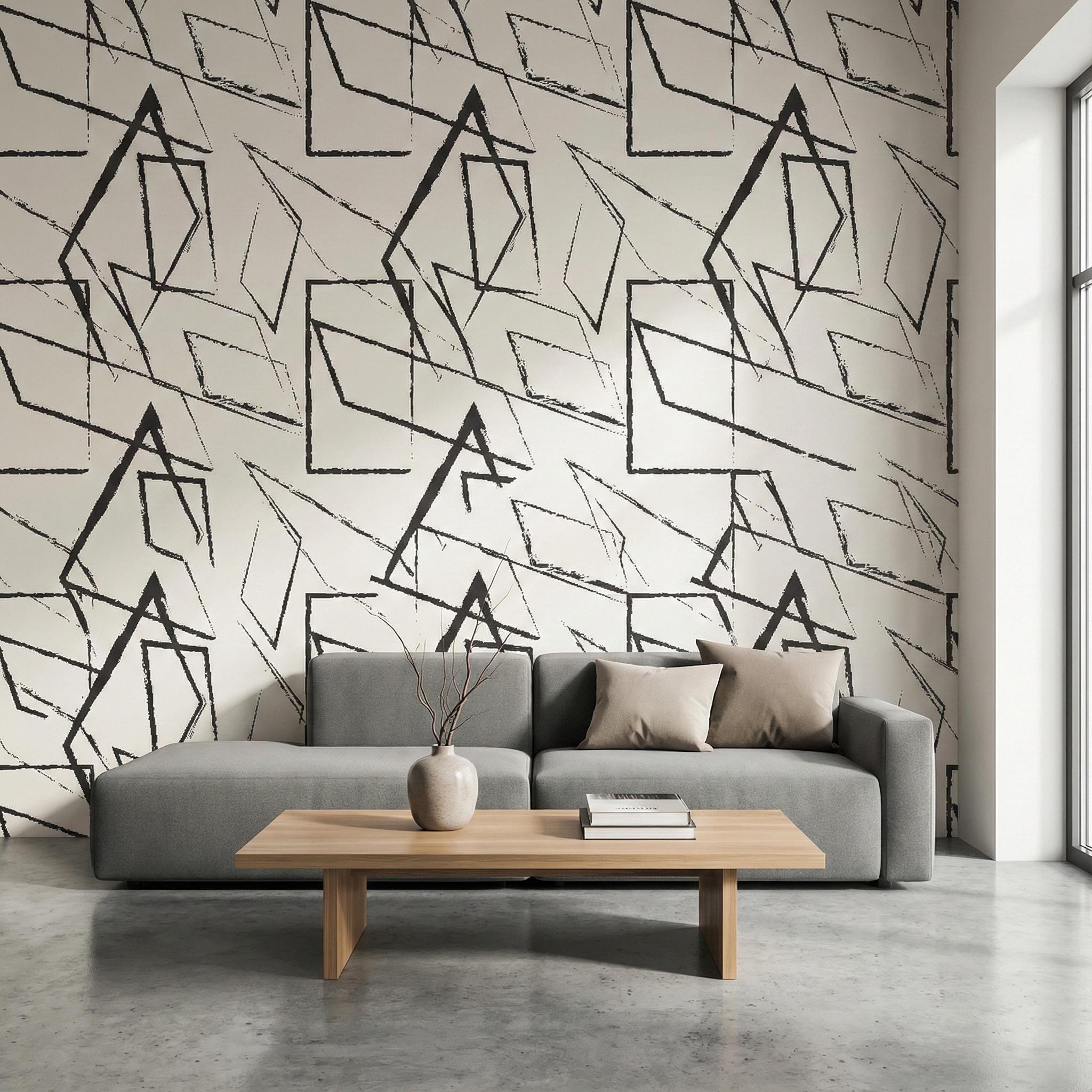 Transform your space with this bold Abstract Geometric Wallpaper. Featuring rough, sketch-style black lines on a white background, this modern wall mural creates a stunning focal point for industrial lofts or minimalist living rooms.