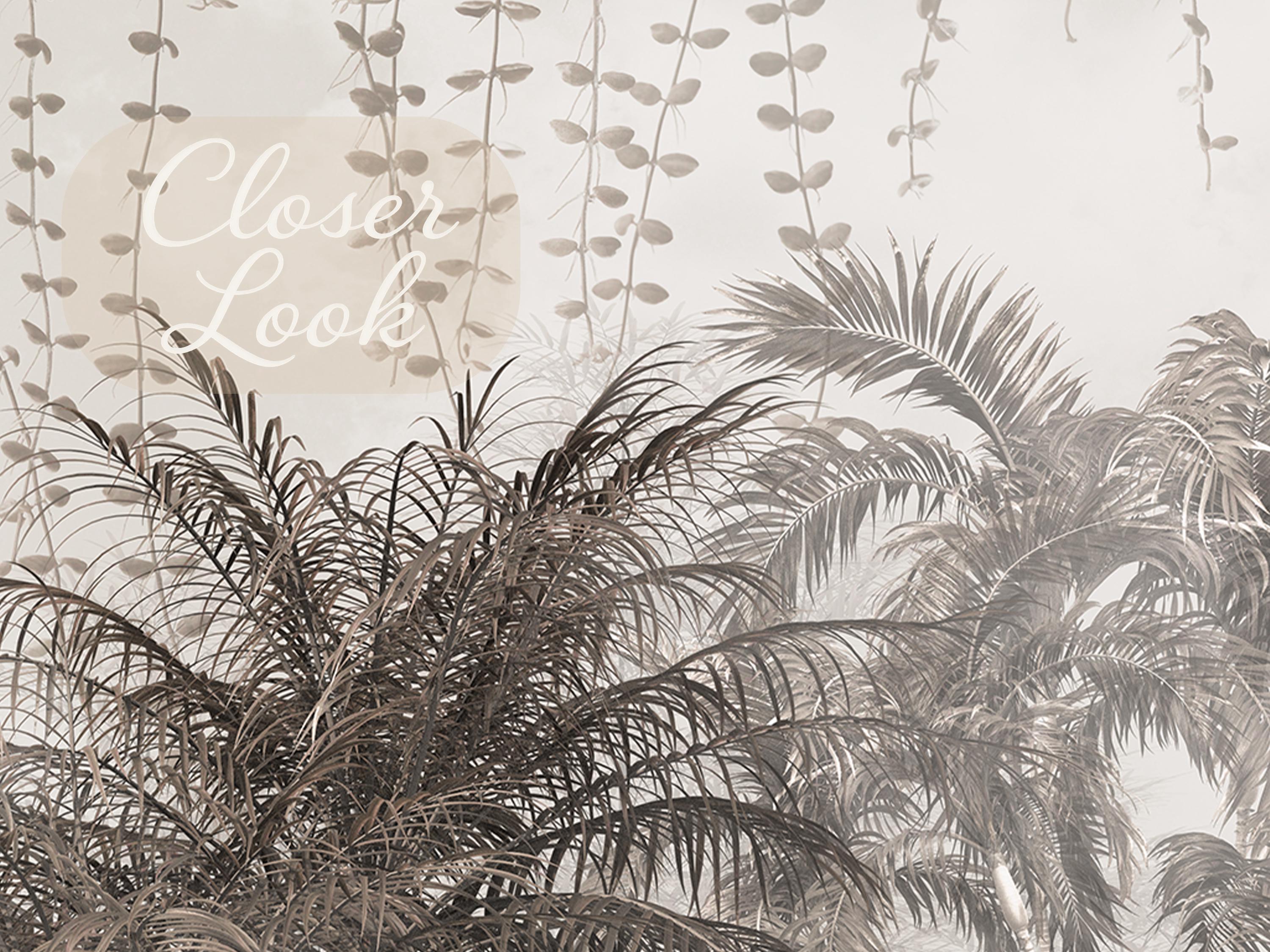 Vintage Tropical Palm Mural - Neutral Jungle Peel and Stick Wallpaper