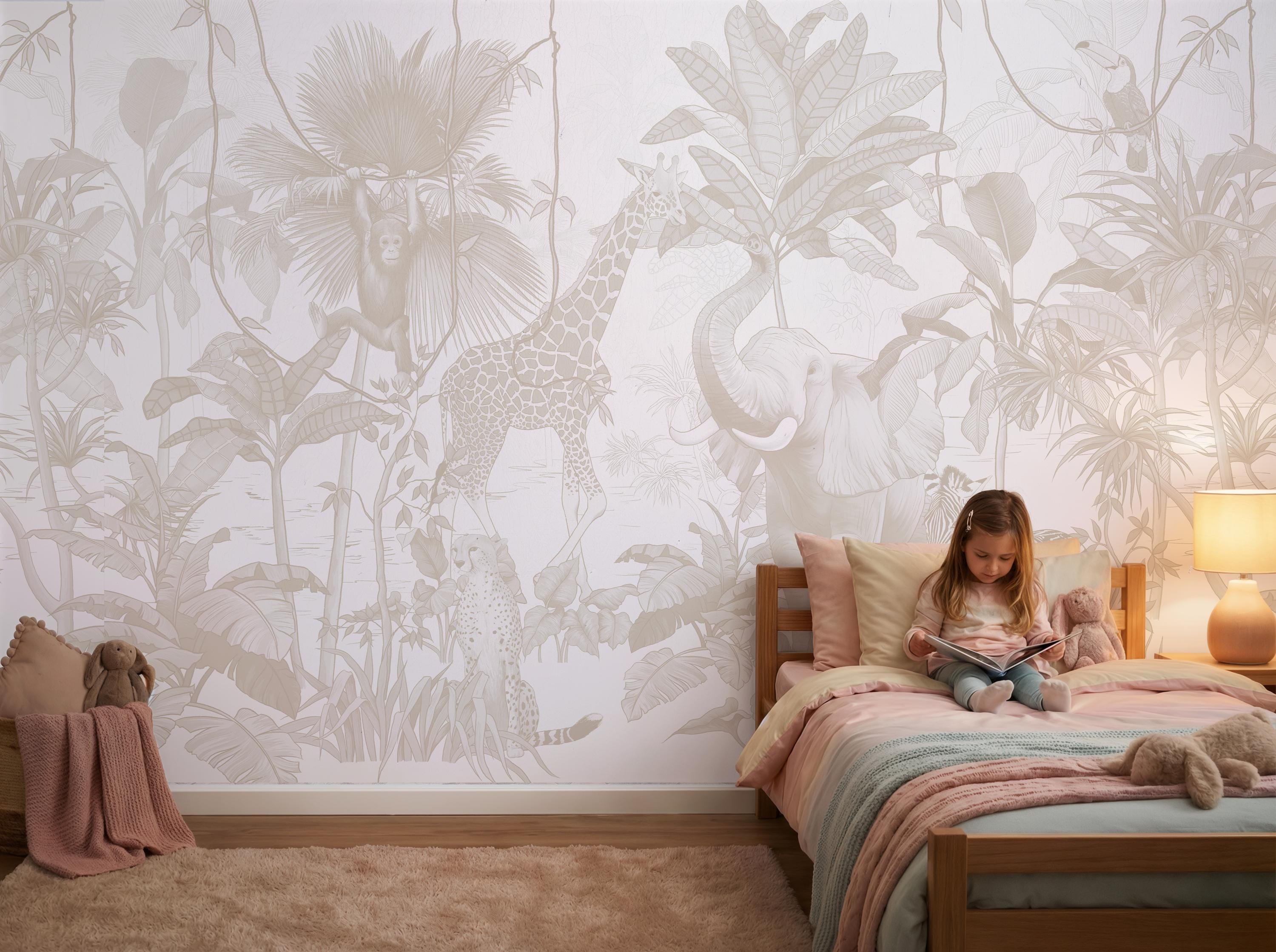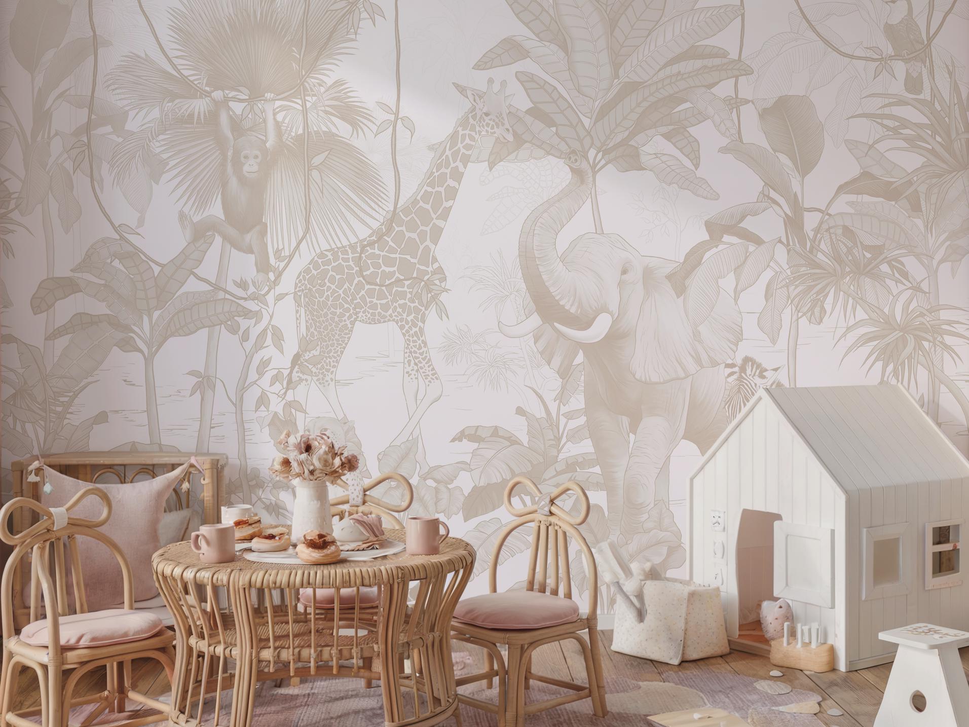 Transform your little one's room into a serene savanna with our Neutral Safari Nursery Wallpaper. Featuring hand-drawn sketch animals like giraffes and elephants, this vintage animal mural creates a sophisticated yet playful atmosphere for any gender-neutral nursery.