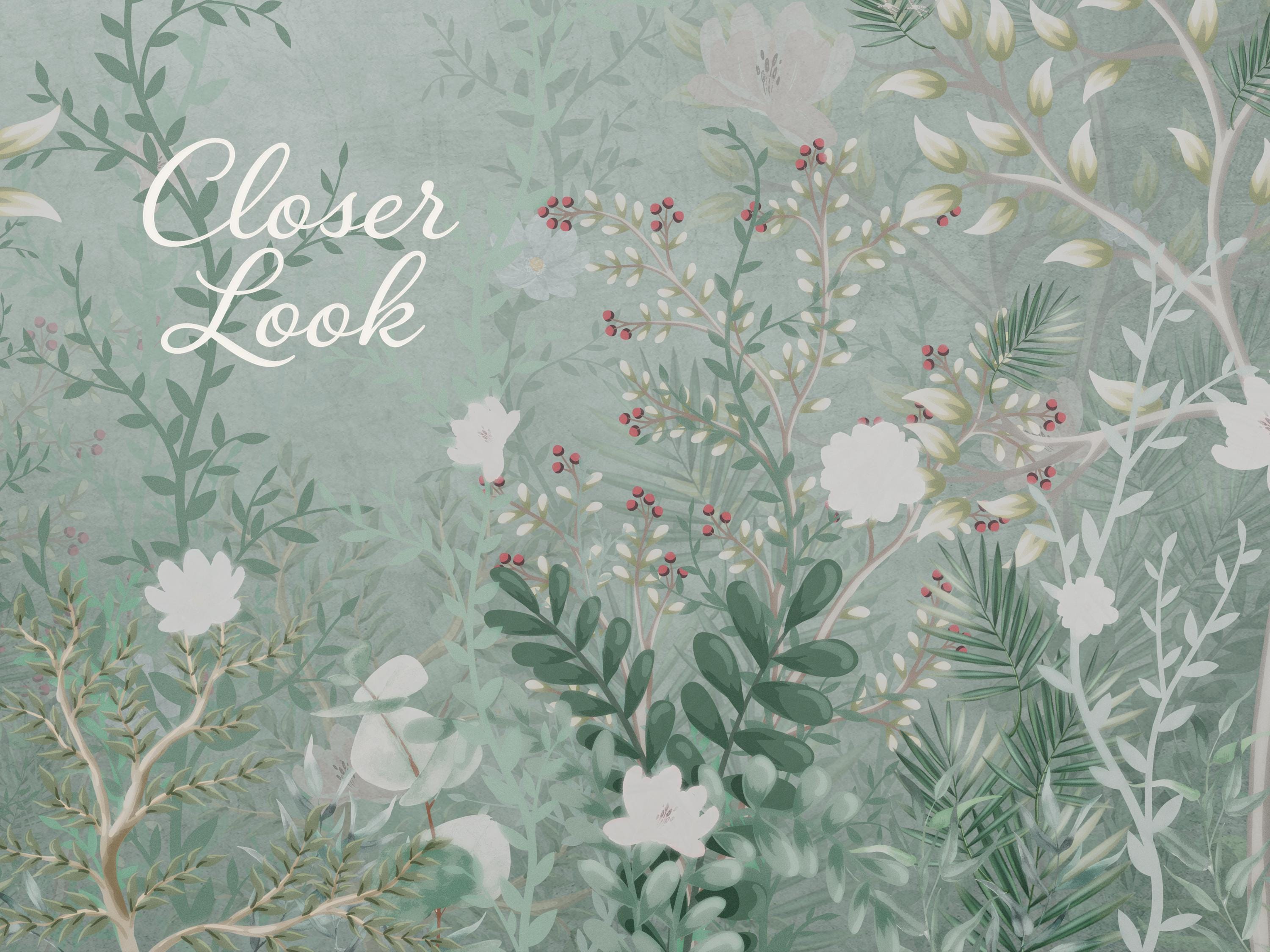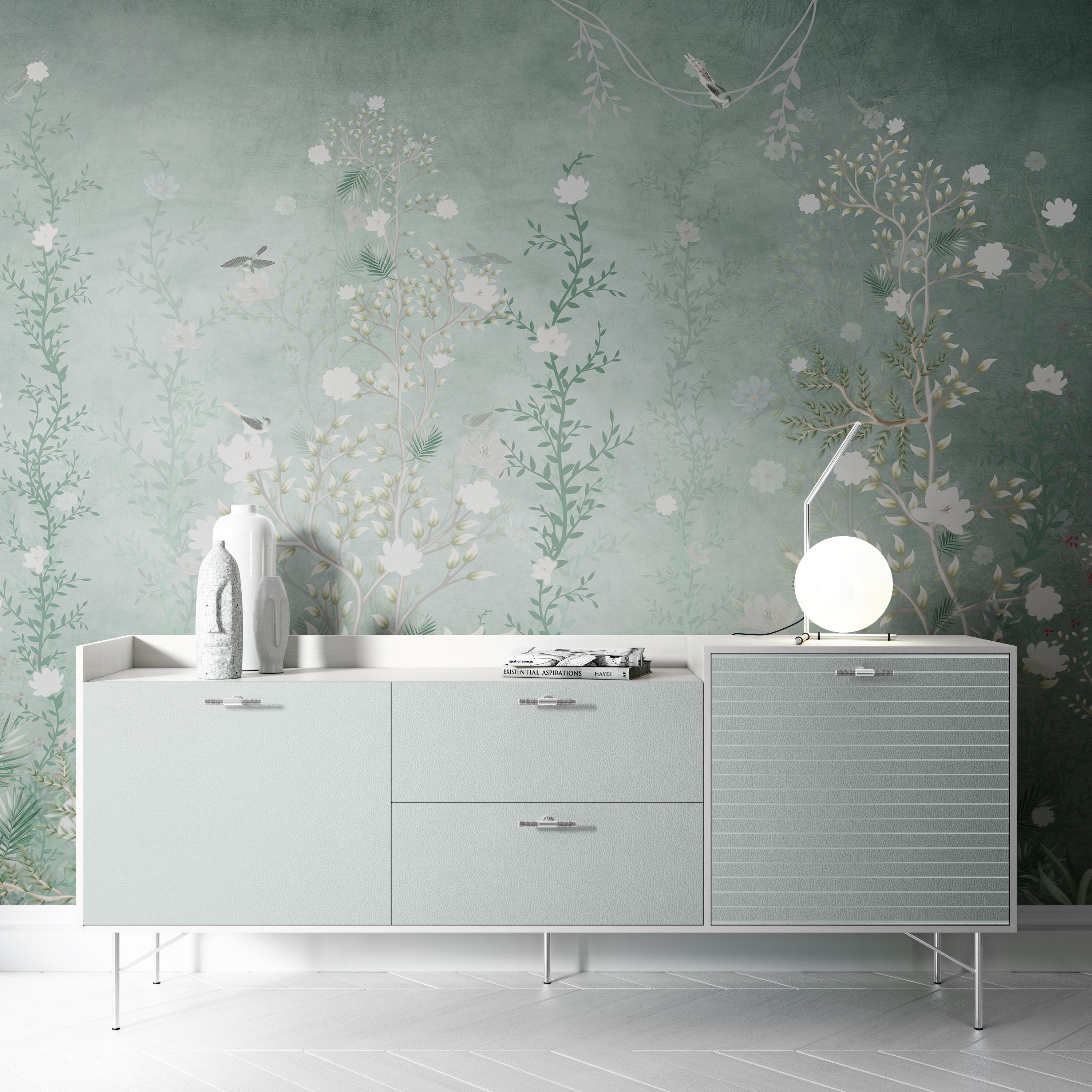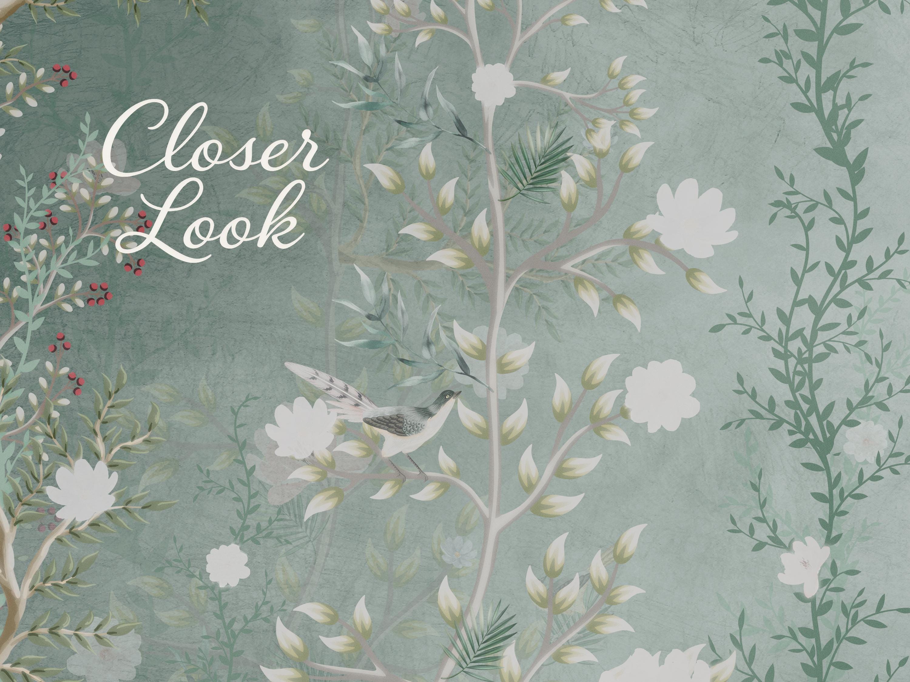 Sage Green Botanical Wallpaper | Vintage Chinoiserie Floral Wall Mural - Peel Stick or Traditional