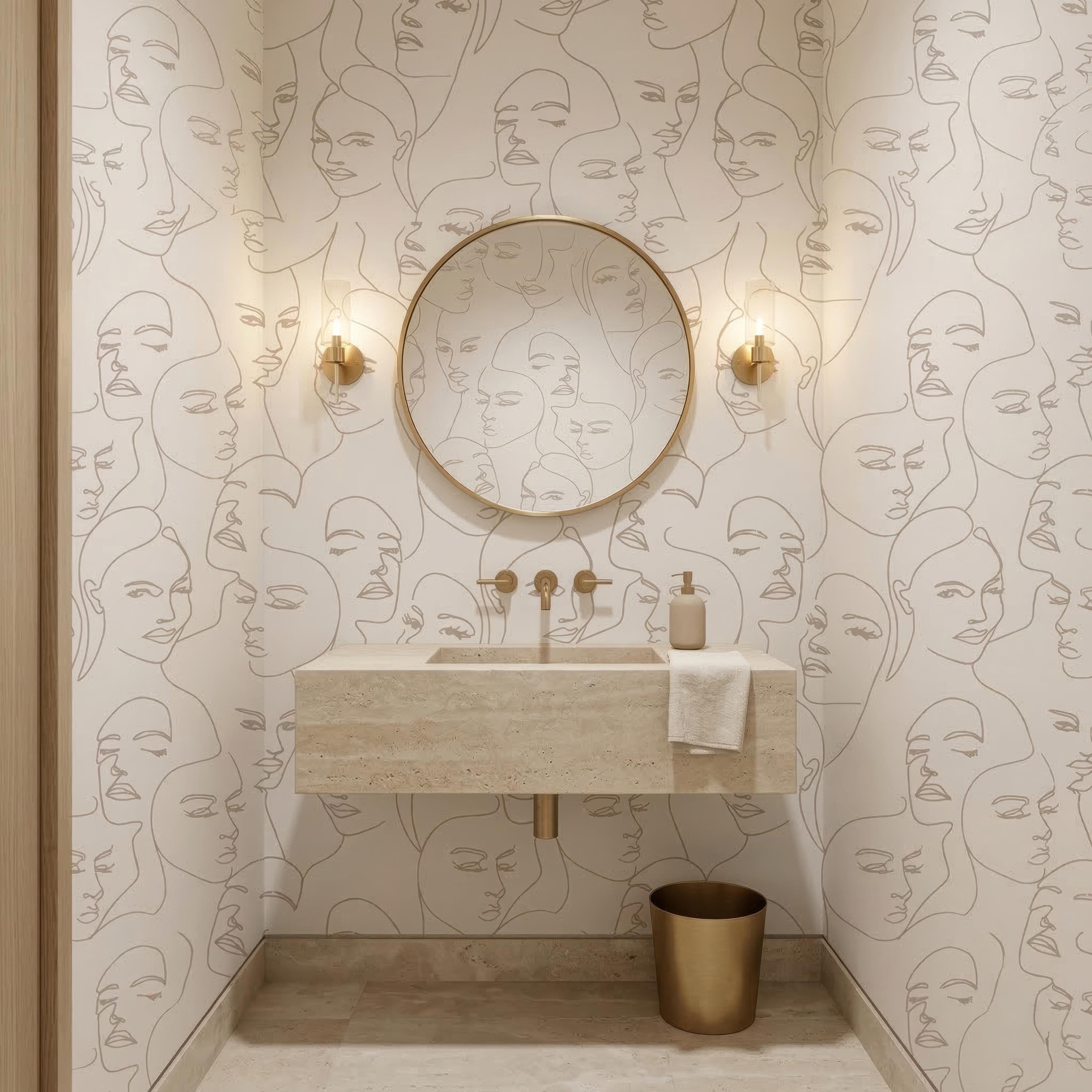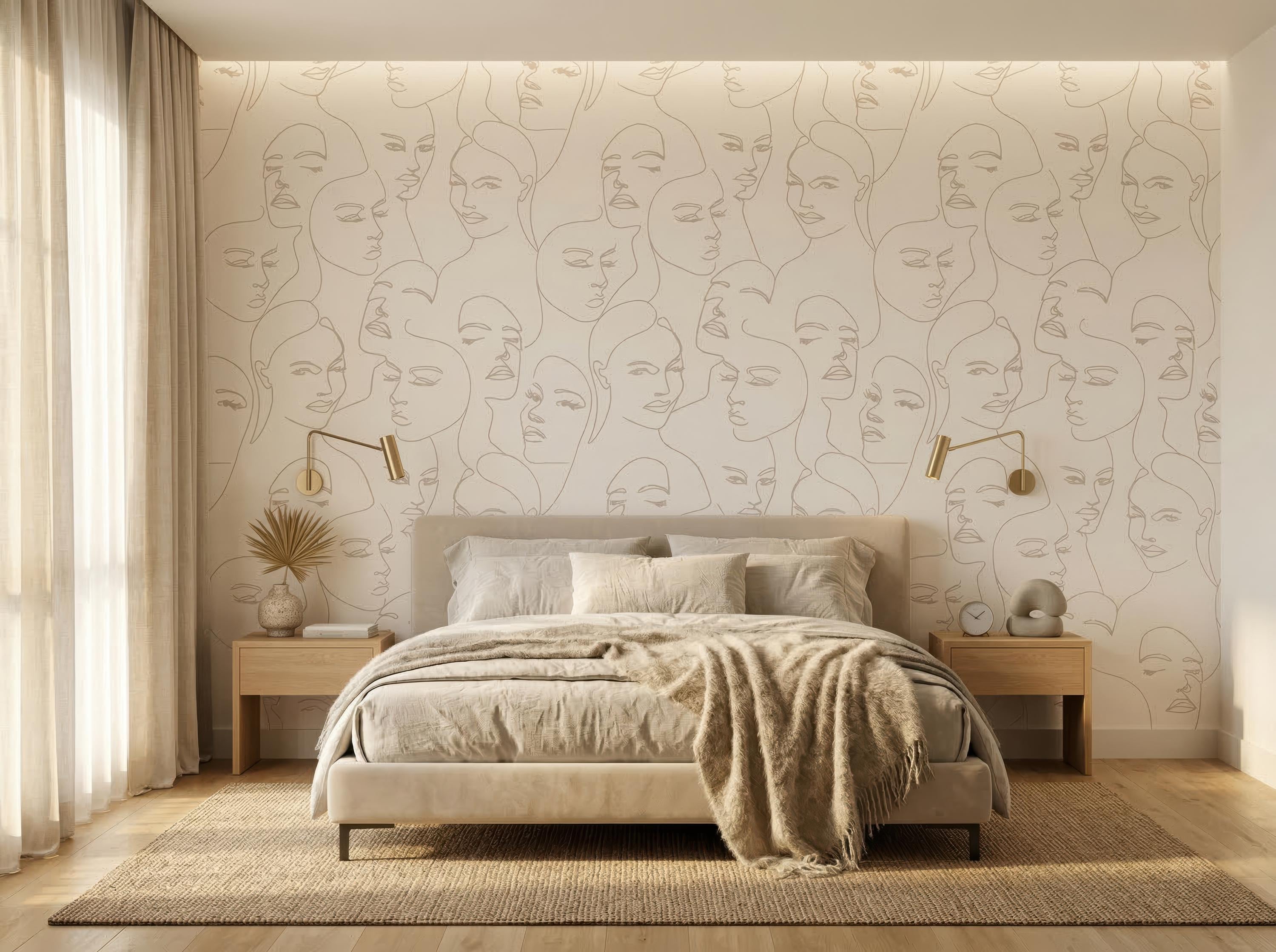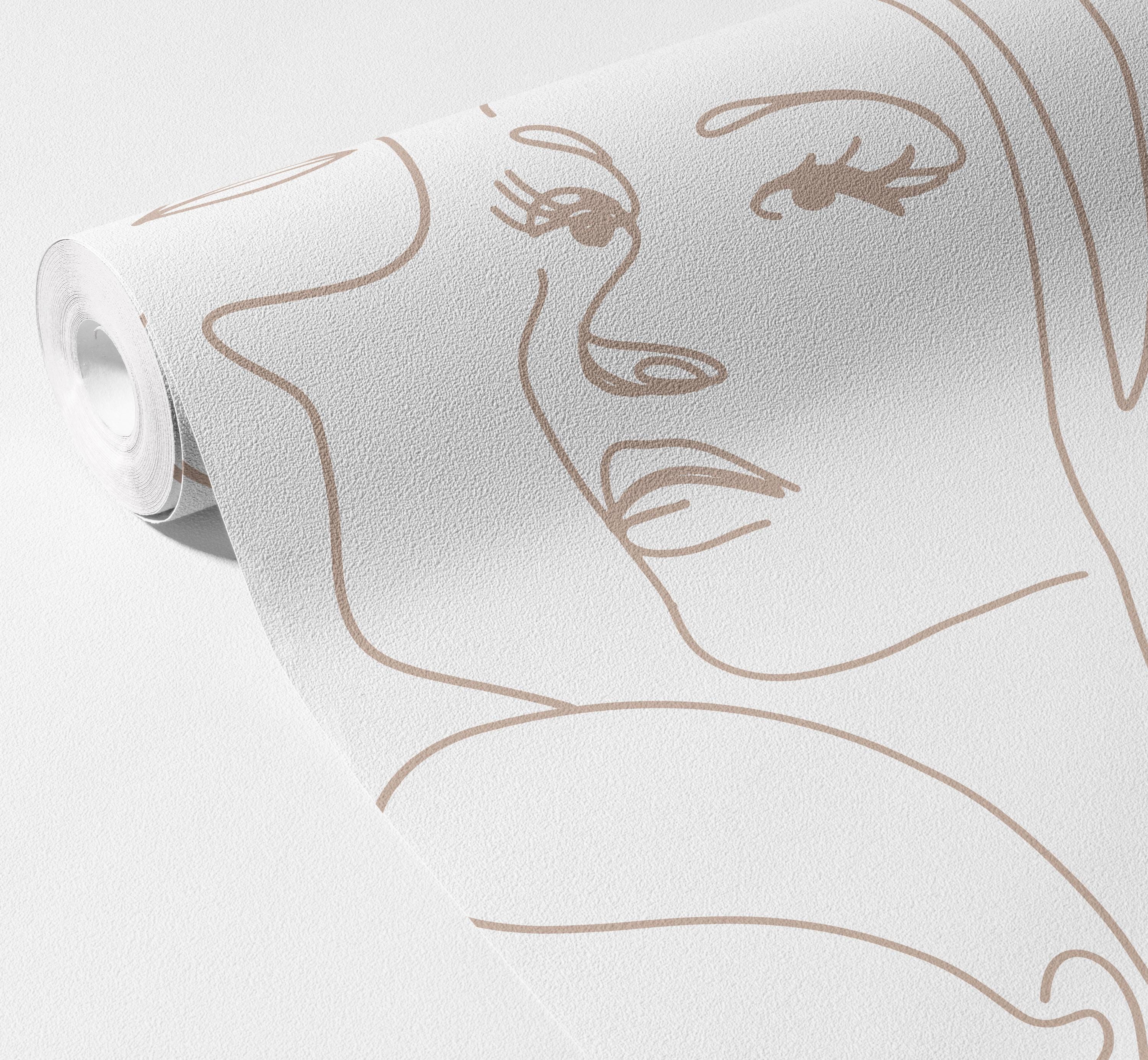 Minimalist Face Line Art Wallpaper - Beige Boho Modern Wall Mural - ( Peel Stick or Traditional )