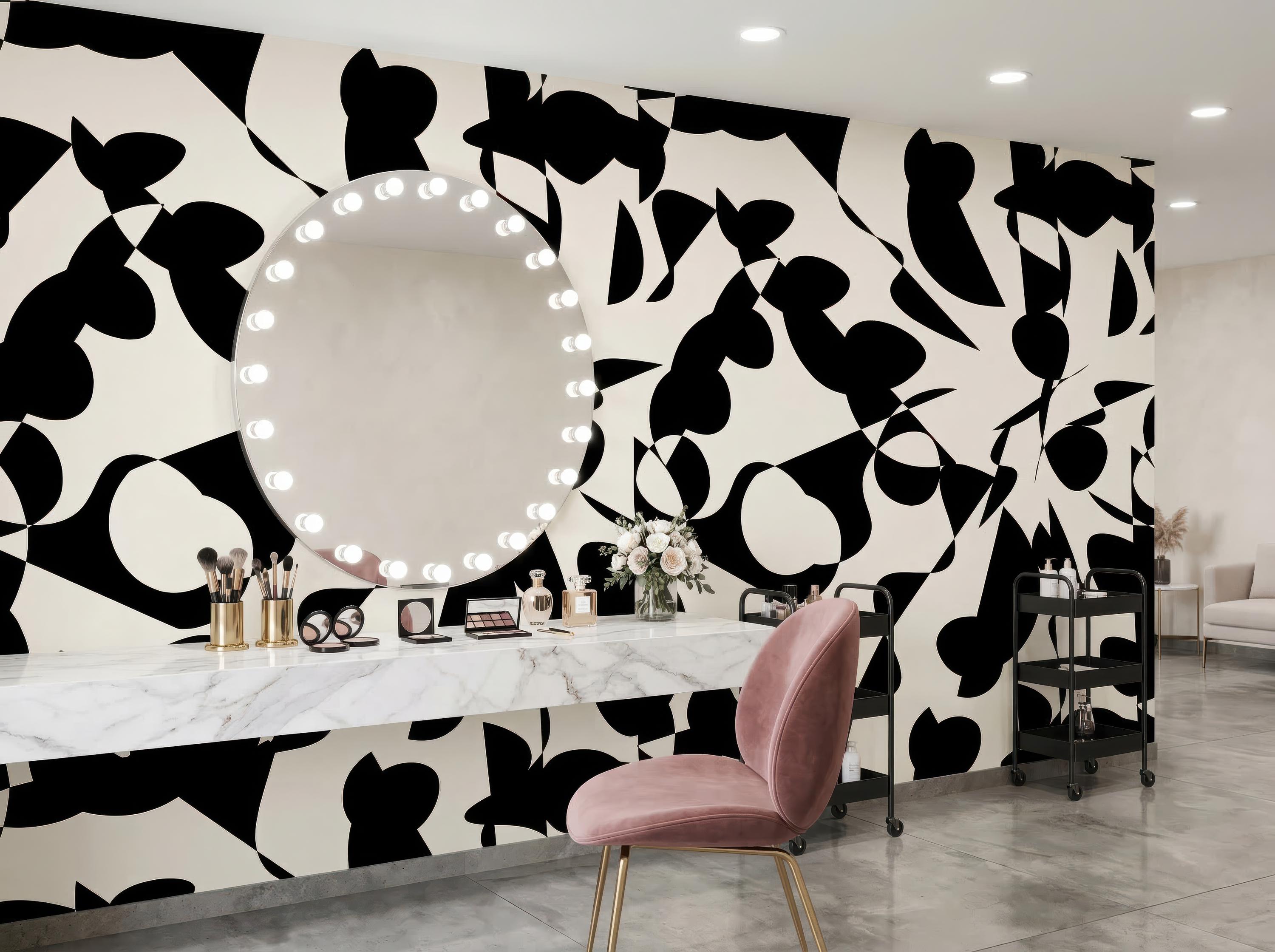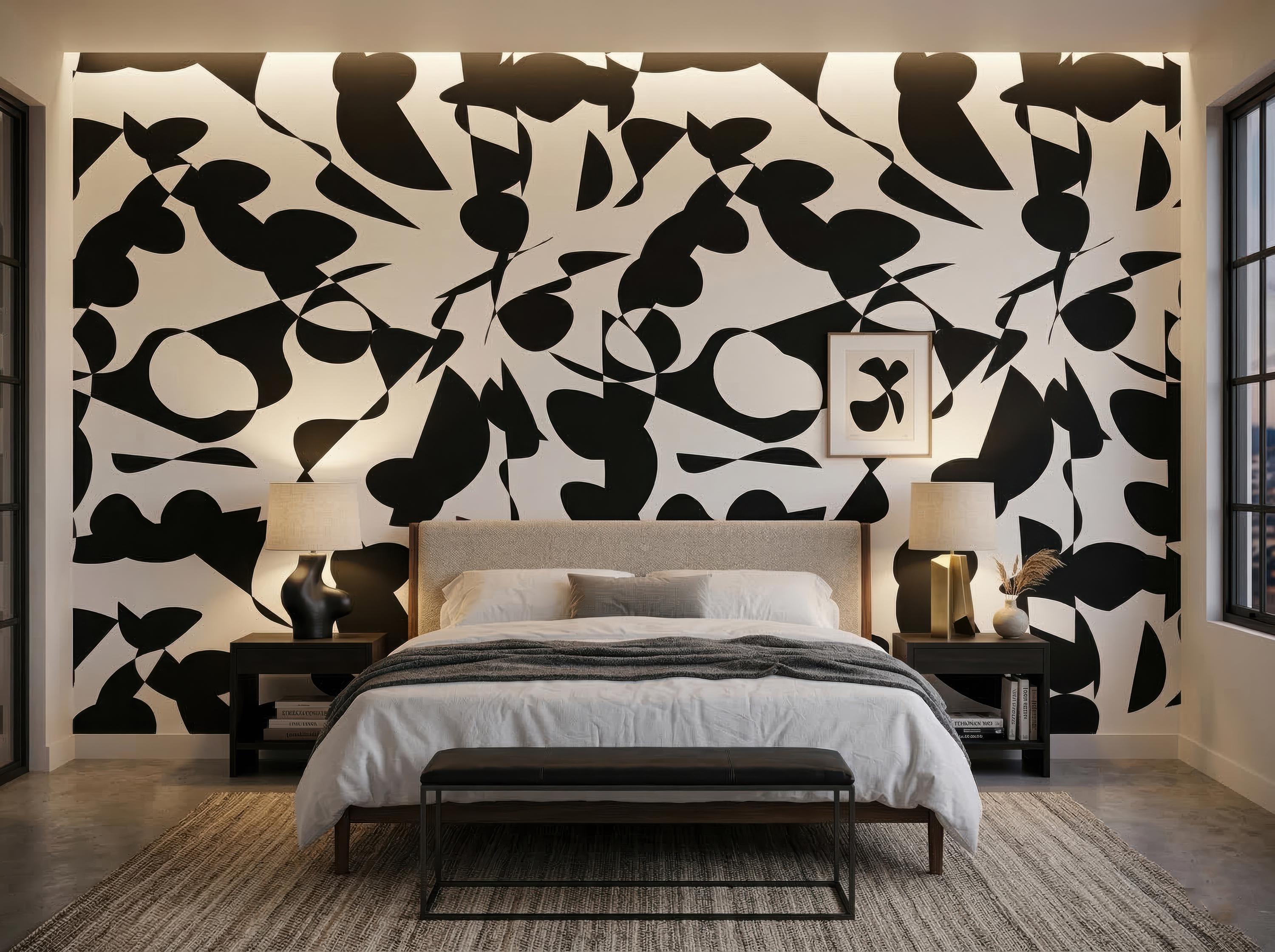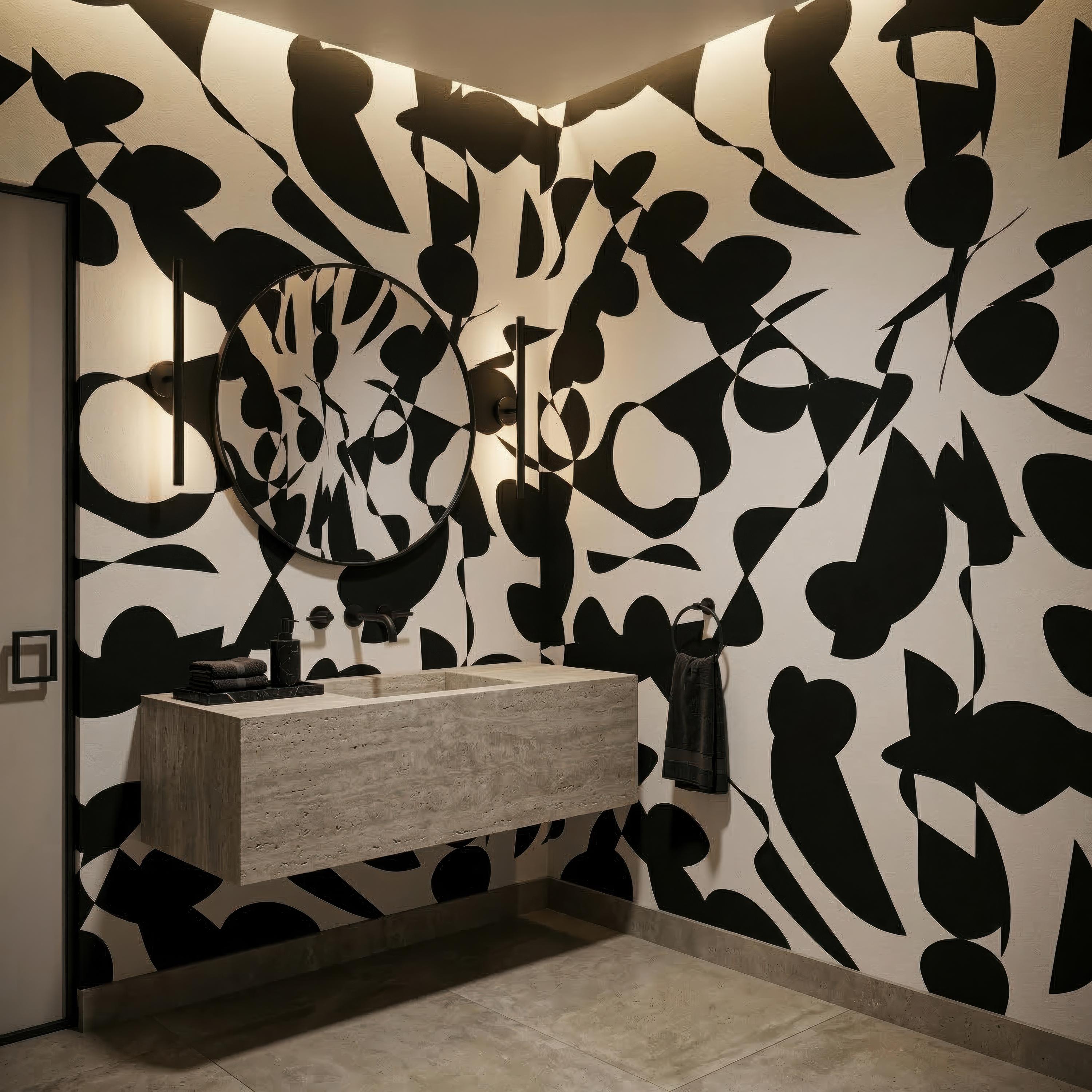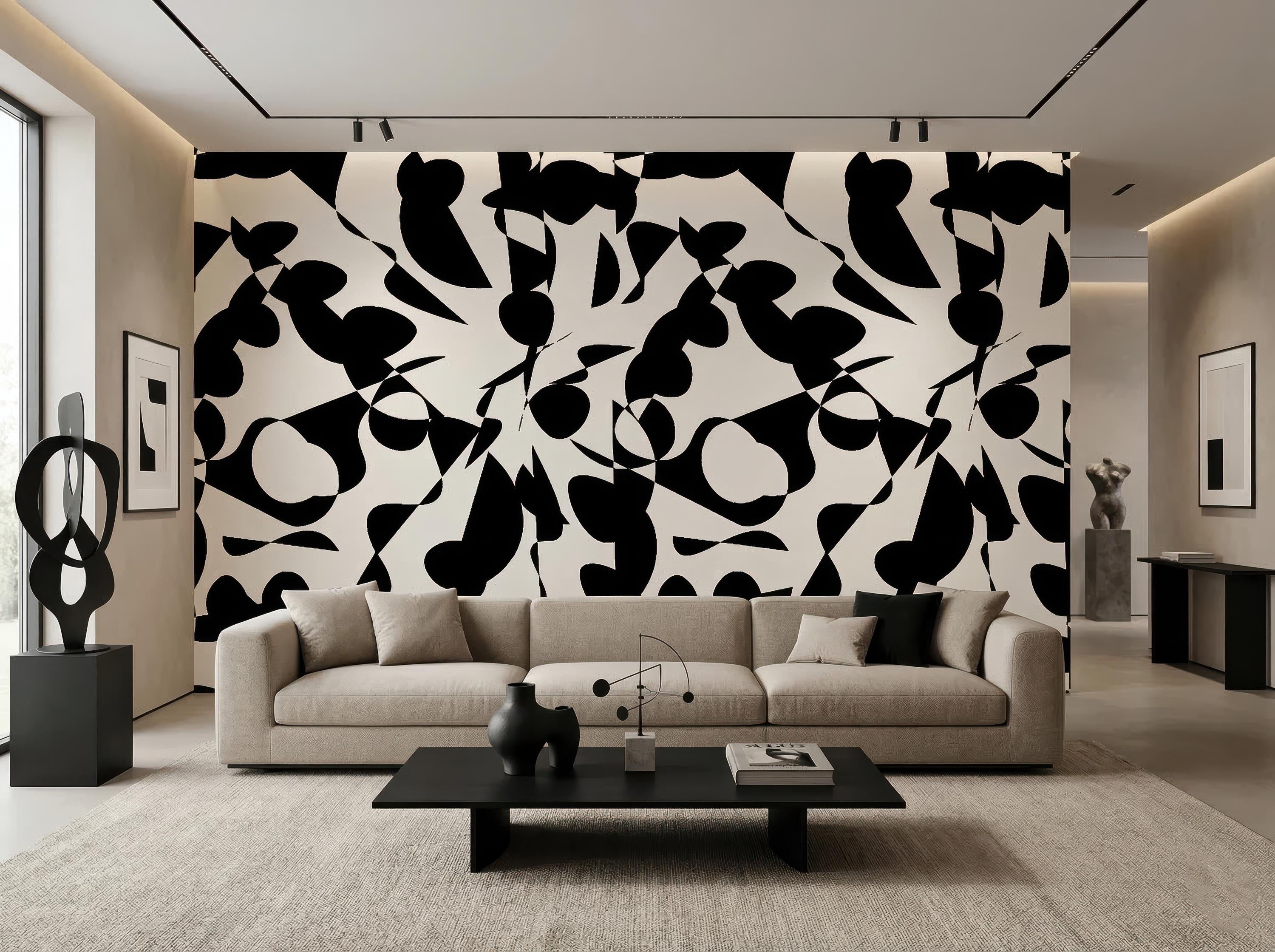 Transform your space with this bold black and white abstract peel and stick wallpaper designed for modern interiors. This removable wall mural features a striking minimalist pattern that blends perfectly with Scandinavian, contemporary, and artistic home decor styles. Ideal for living rooms, bathrooms, bedrooms, studios, salons, or creative spaces looking for a dramatic yet elegant statement wall.