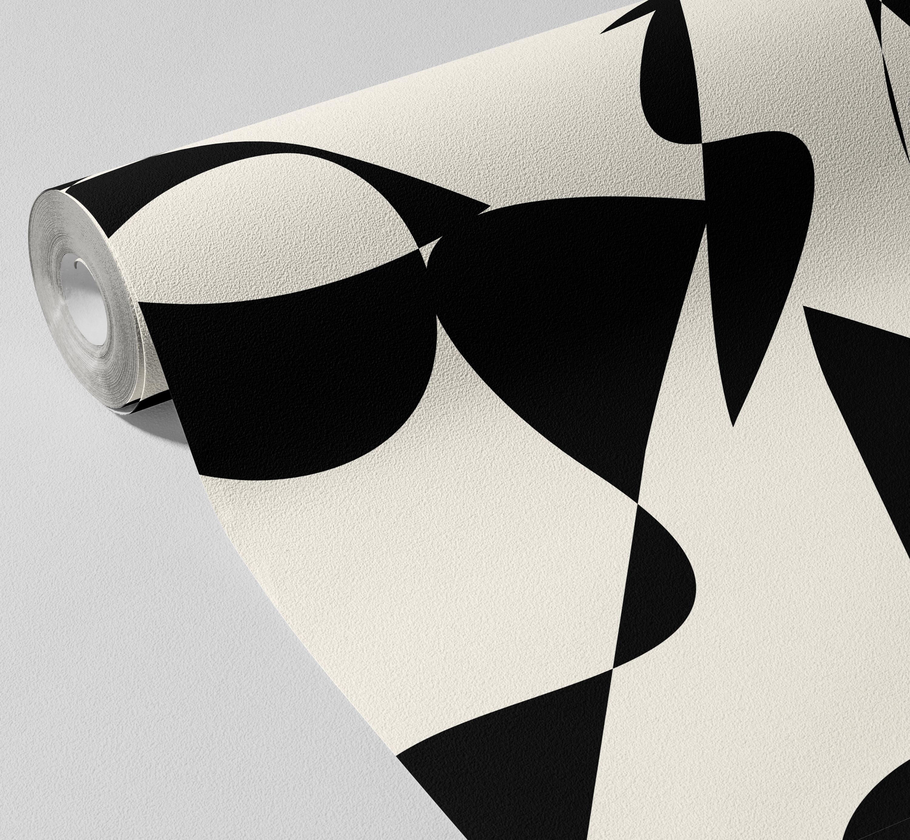 Black White Abstract Wallpaper, Modern Minimalist Wall Mural, Scandinavian - ( Peel Stick or Traditional )