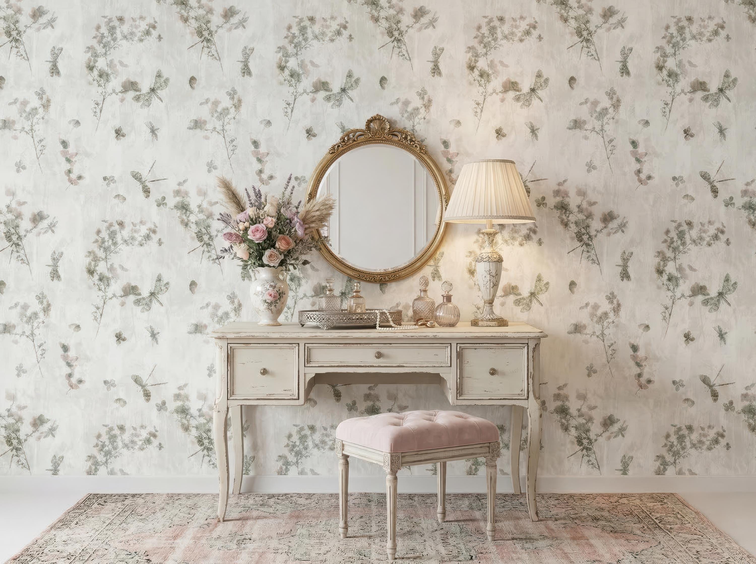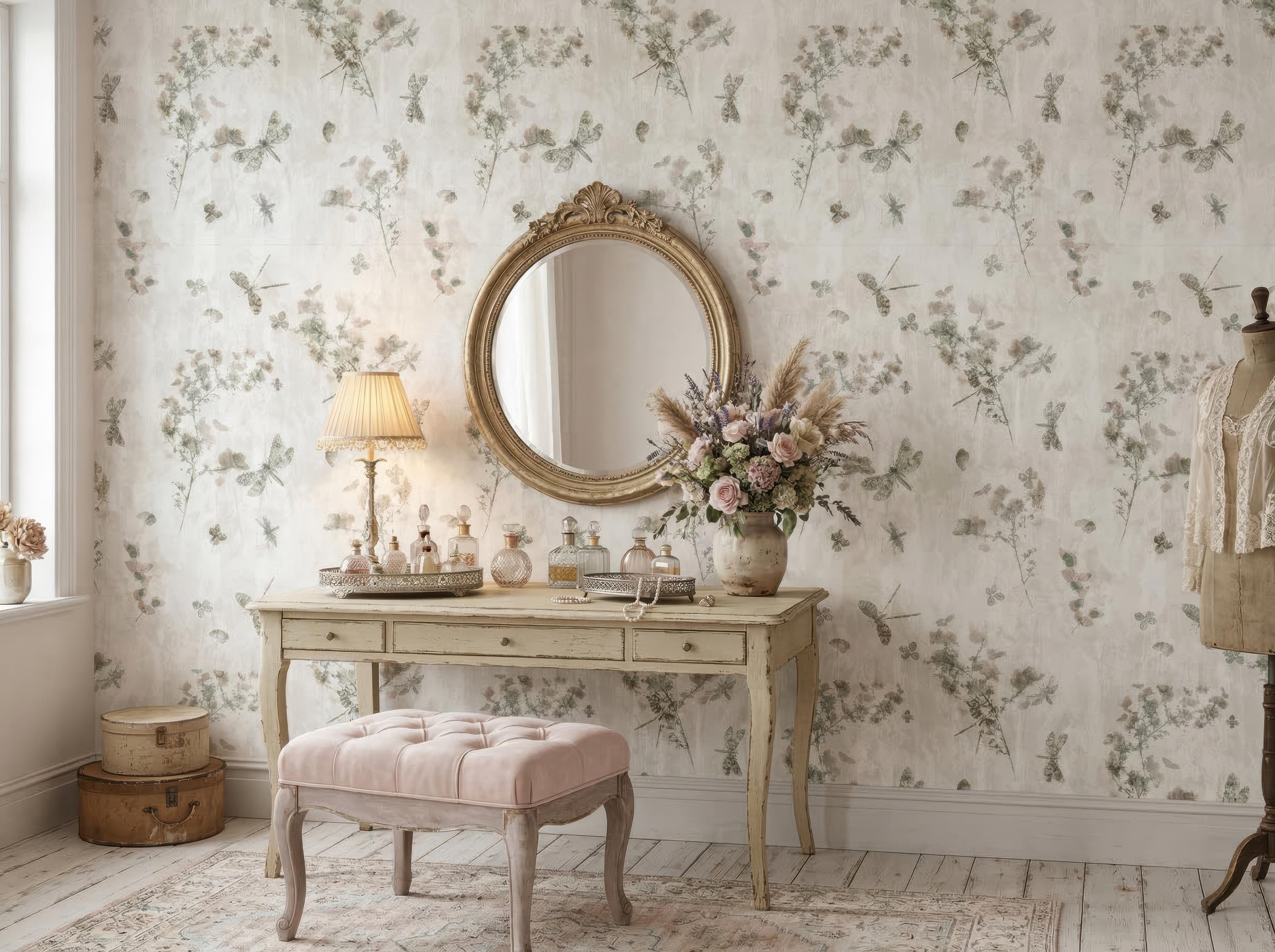 Transform your home with this elegant vintage botanical dragonfly wallpaper, designed with delicate floral branches and soft neutral tones. This nature inspired wall mural brings a calming cottagecore aesthetic to bedrooms, living rooms, entryways, or vanity spaces. The subtle beige botanical pattern with dragonflies creates a timeless atmosphere that blends beautifully with modern, rustic, farmhouse, and shabby chic interiors. 🌿🦋