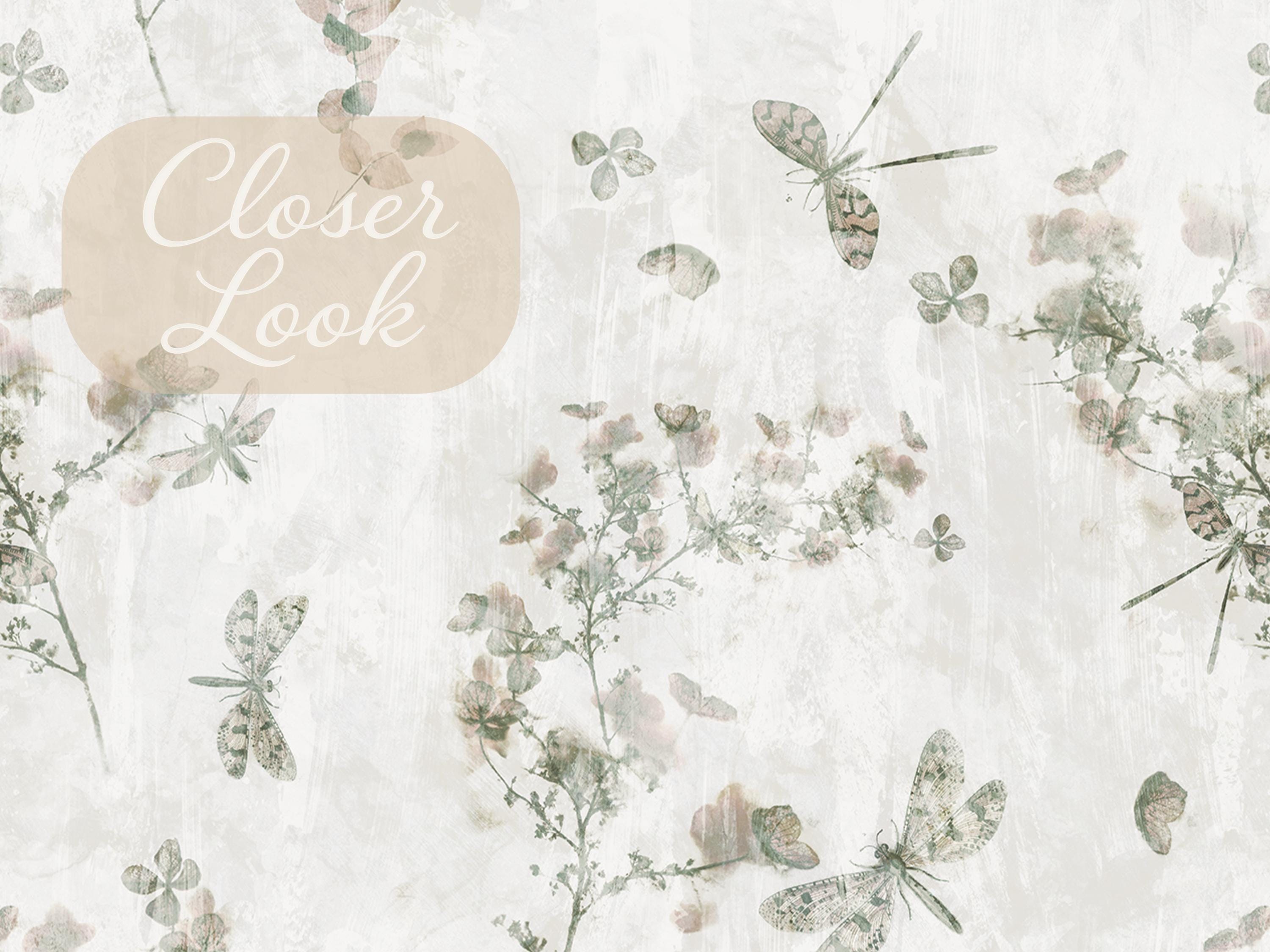 Vintage Botanical Dragonfly Wallpaper, Neutral Floral Wall Mural, Cottagecore Nature Decor (Peel and Stick)