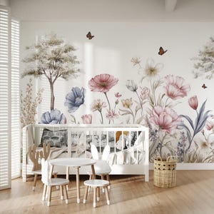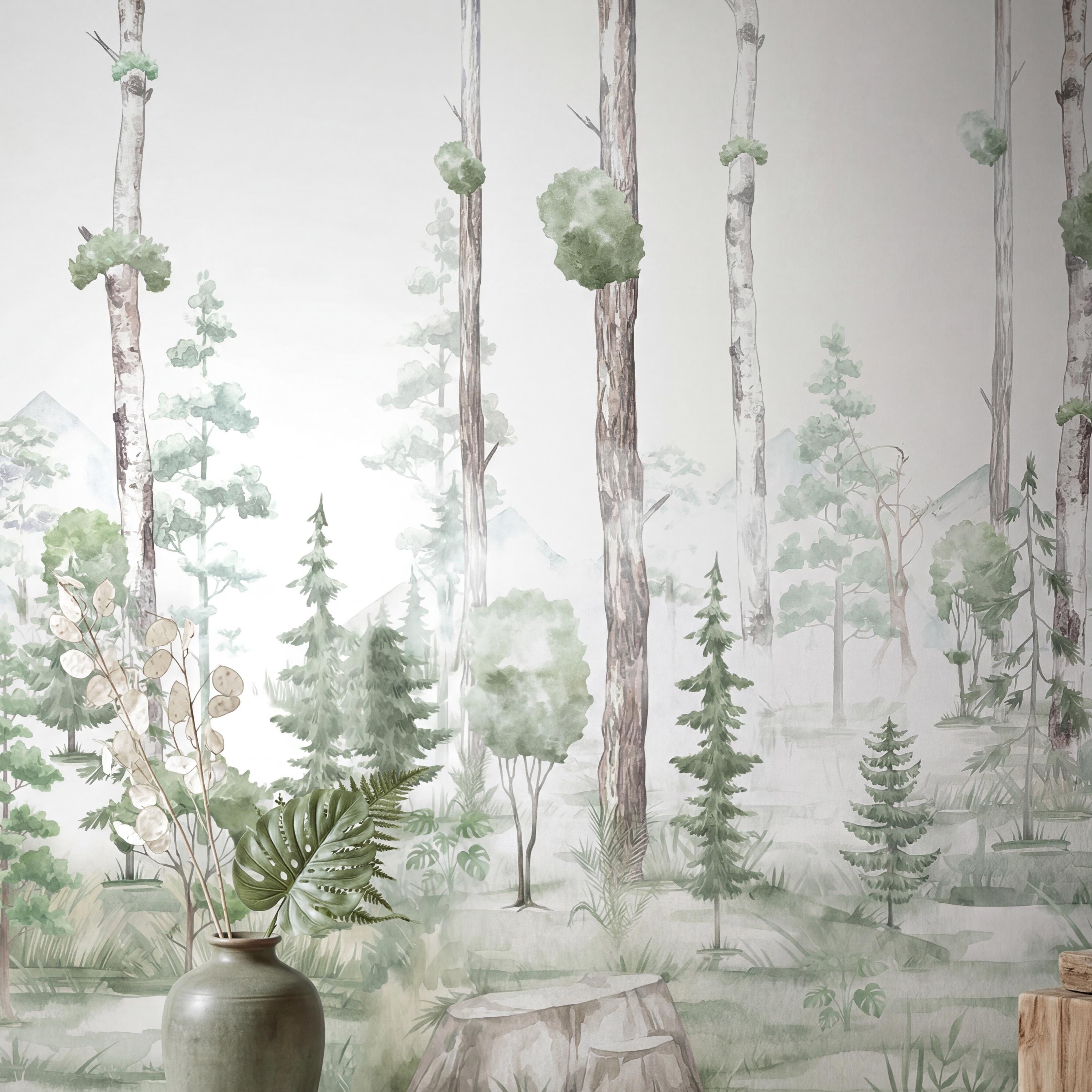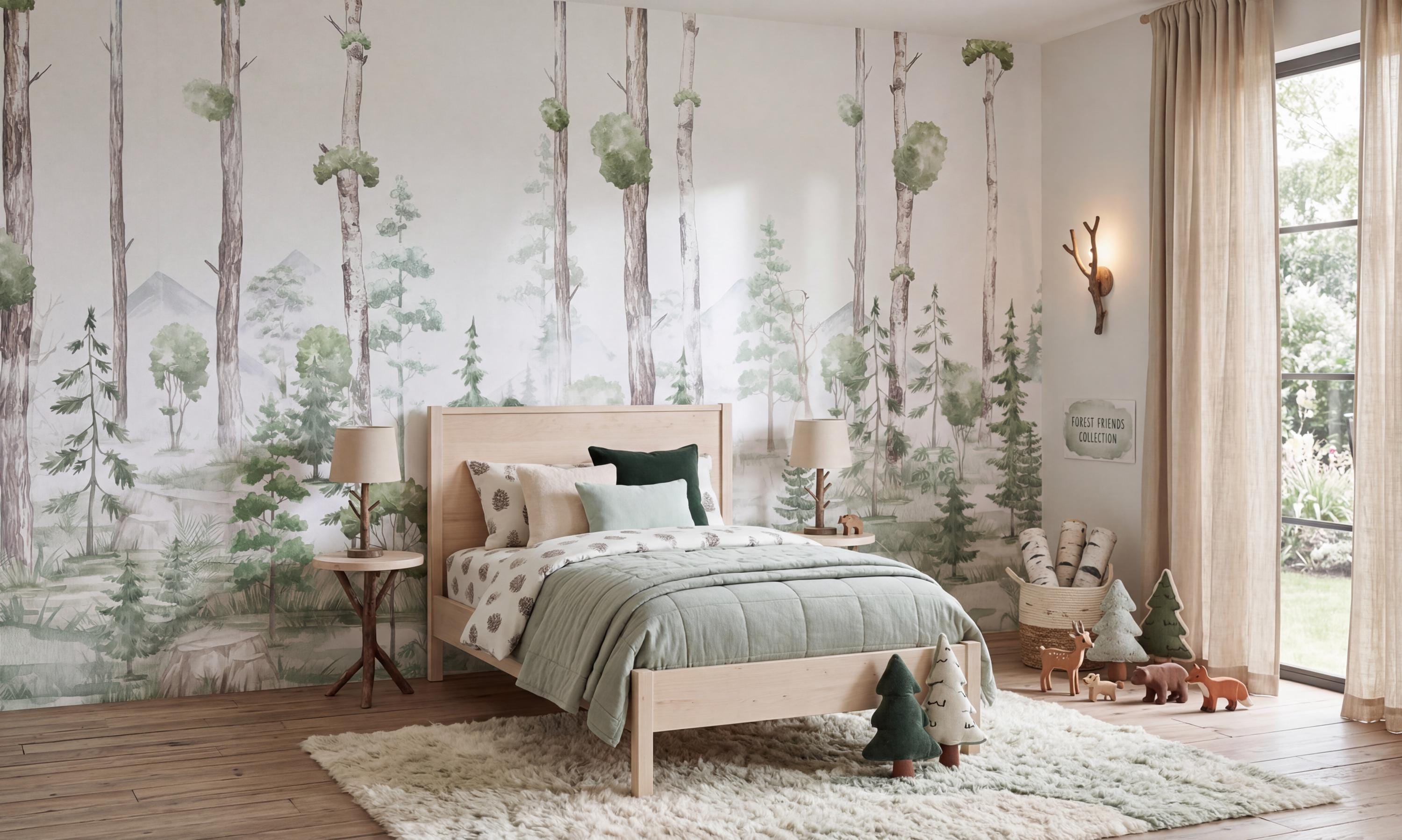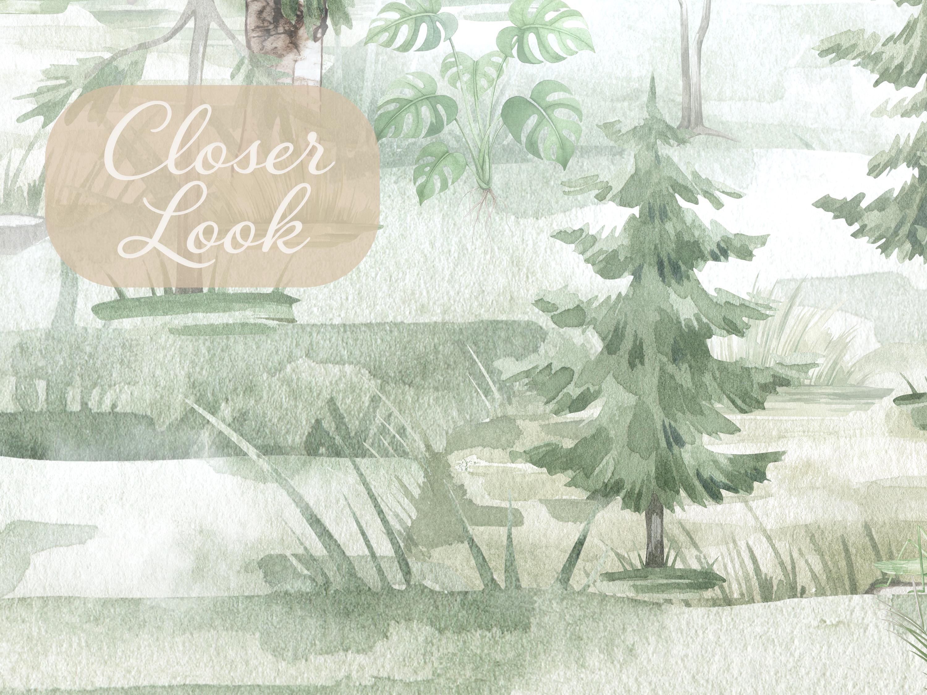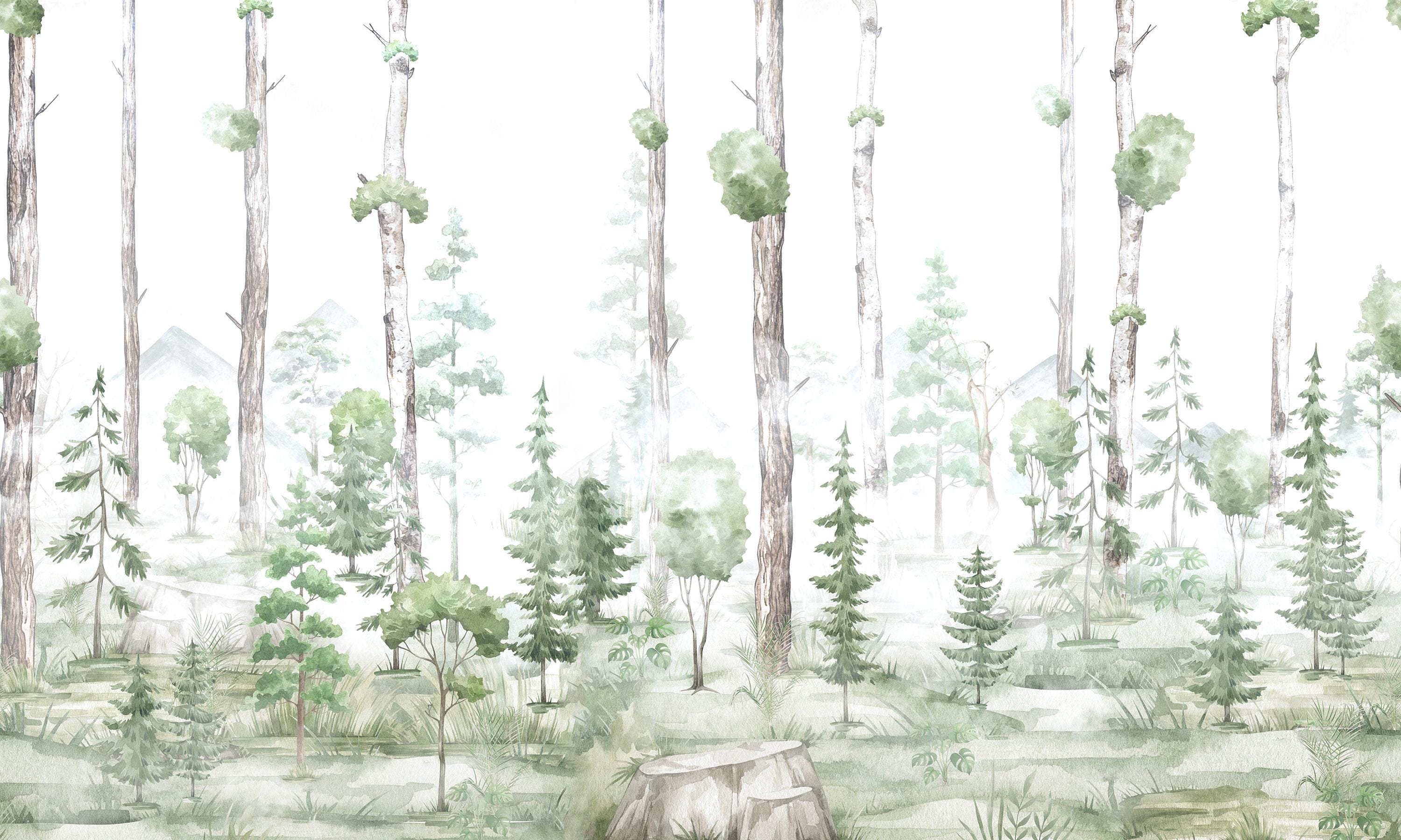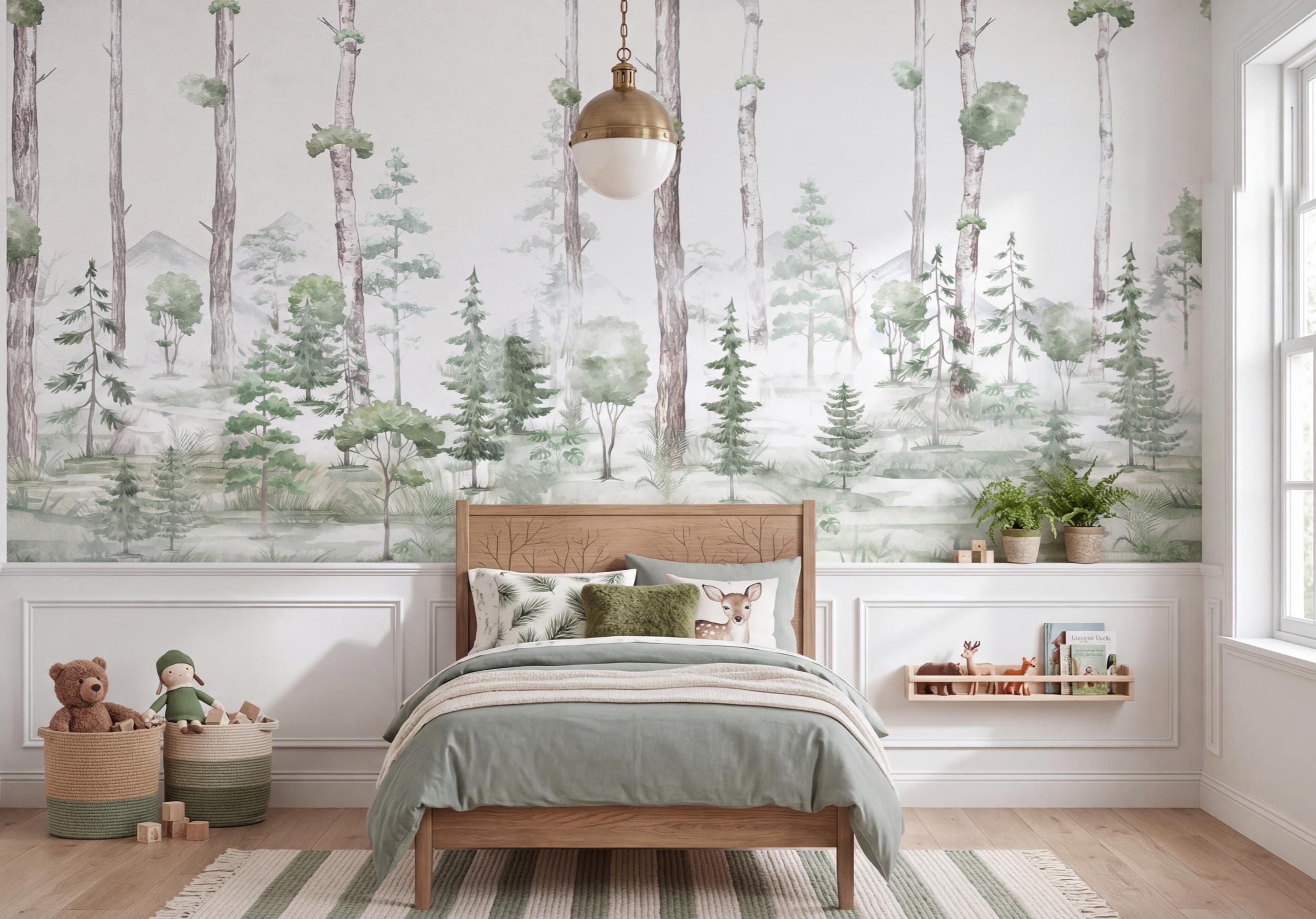 Create a dreamy and calming atmosphere with this green forest landscape & trees wall mural, perfect for kids rooms, nurseries, and girls bedrooms. This landscape wallpaper adds a soft nature-inspired touch while enhancing modern and Scandinavian interior styles. Ideal for baby rooms and toddler spaces, this wallpaper mural brings warmth, elegance, and a magical forest vibe. Transform your space with this aesthetic and serene wall decor.