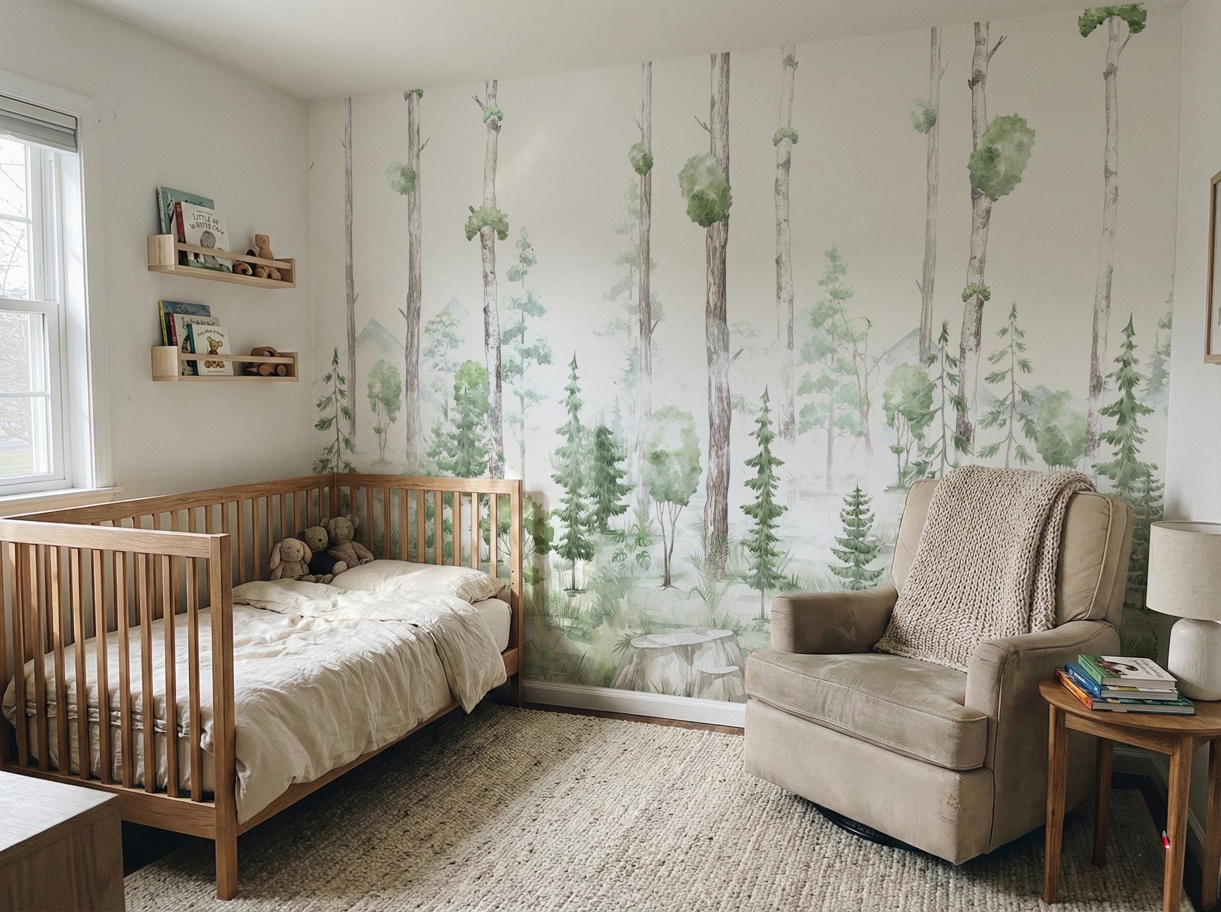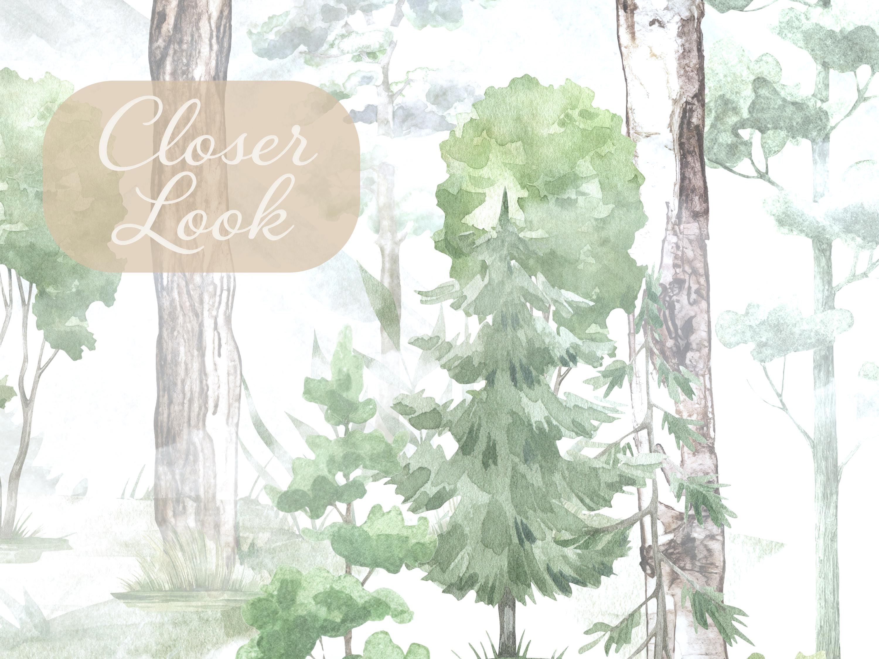 Large Tree Forest Wallpaper - Kids & Nursery Calm Wall Mural - ( Peel and Stick or Traditional )