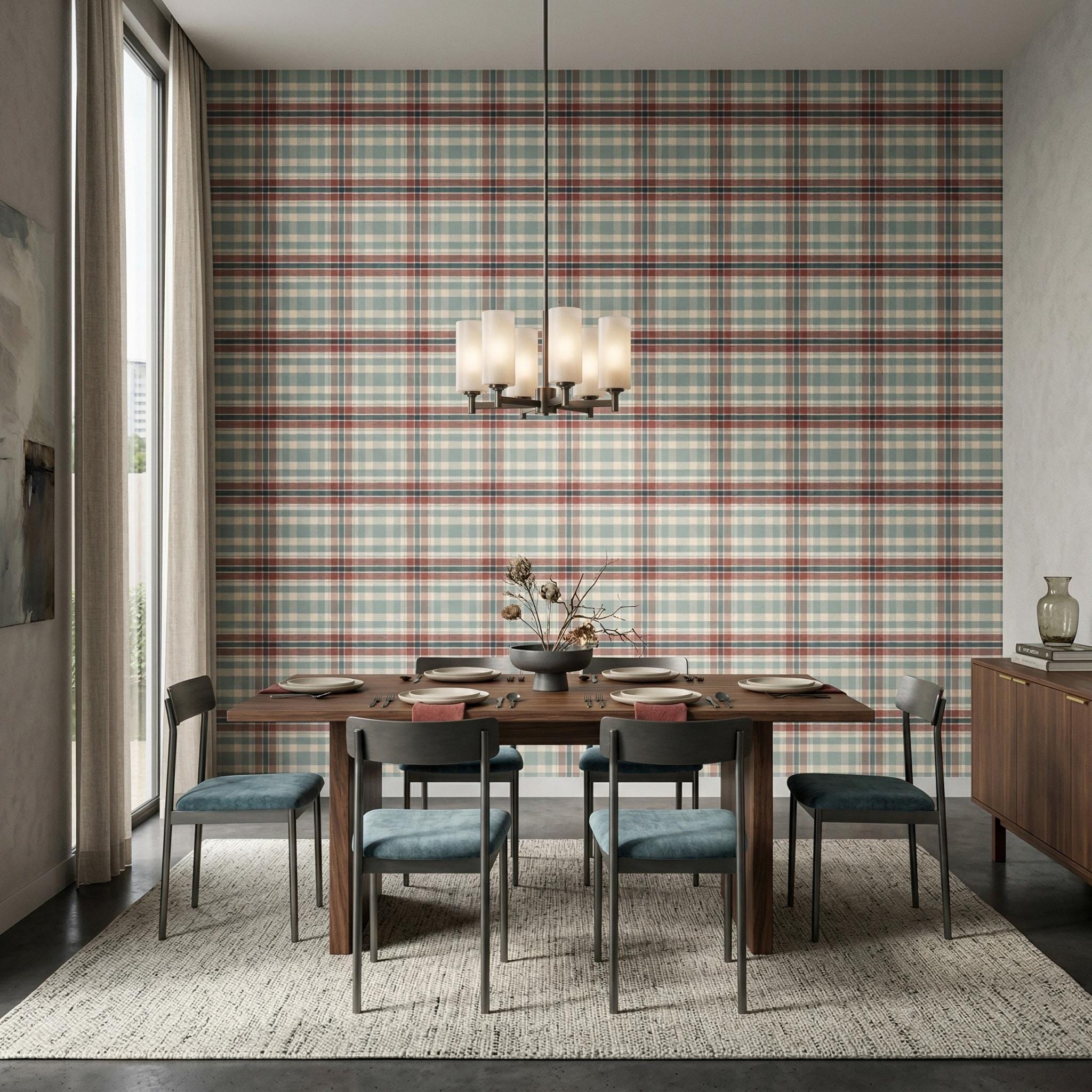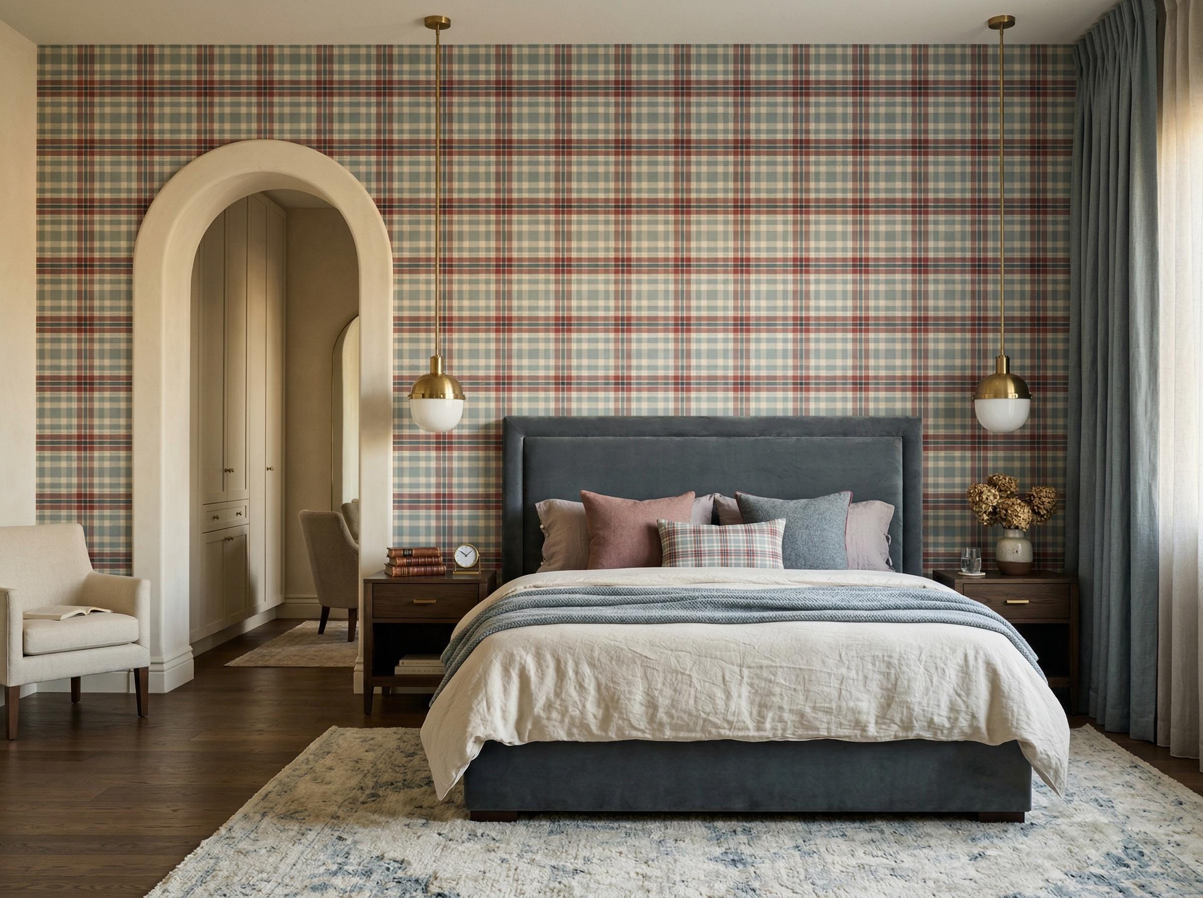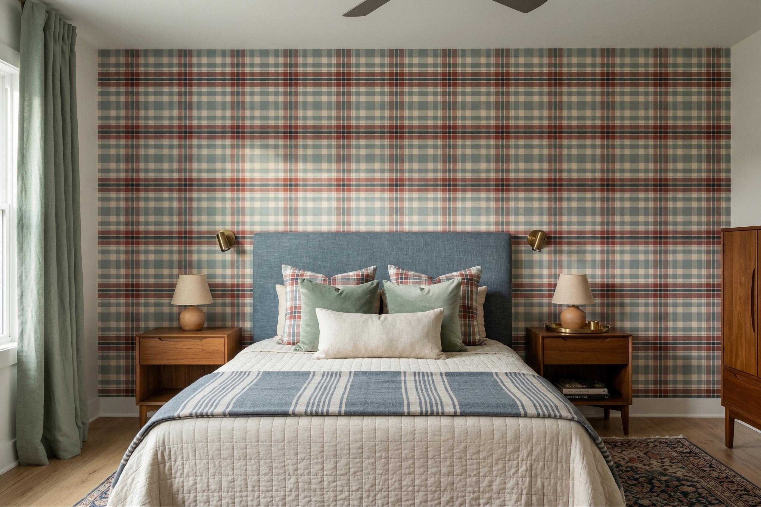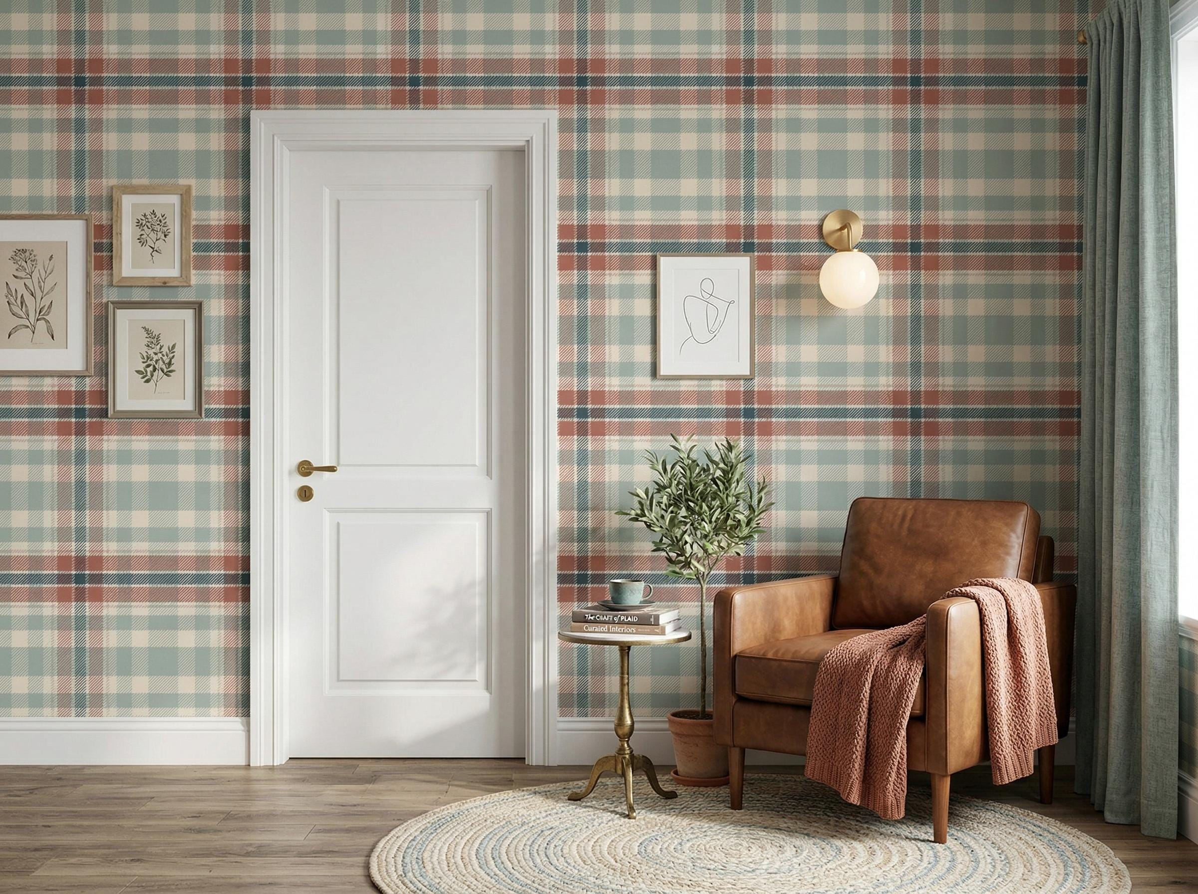 Classic Vintage Plaid Wallpaper - Tartan Pattern Checkered Wall Decor ( Peel Stick or Traditional )