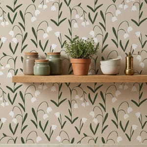 Neutral Botanical Wallpaper - Minimalist Beige Leaf Pattern Wall Decor - ( Peel Stick or Traditional )