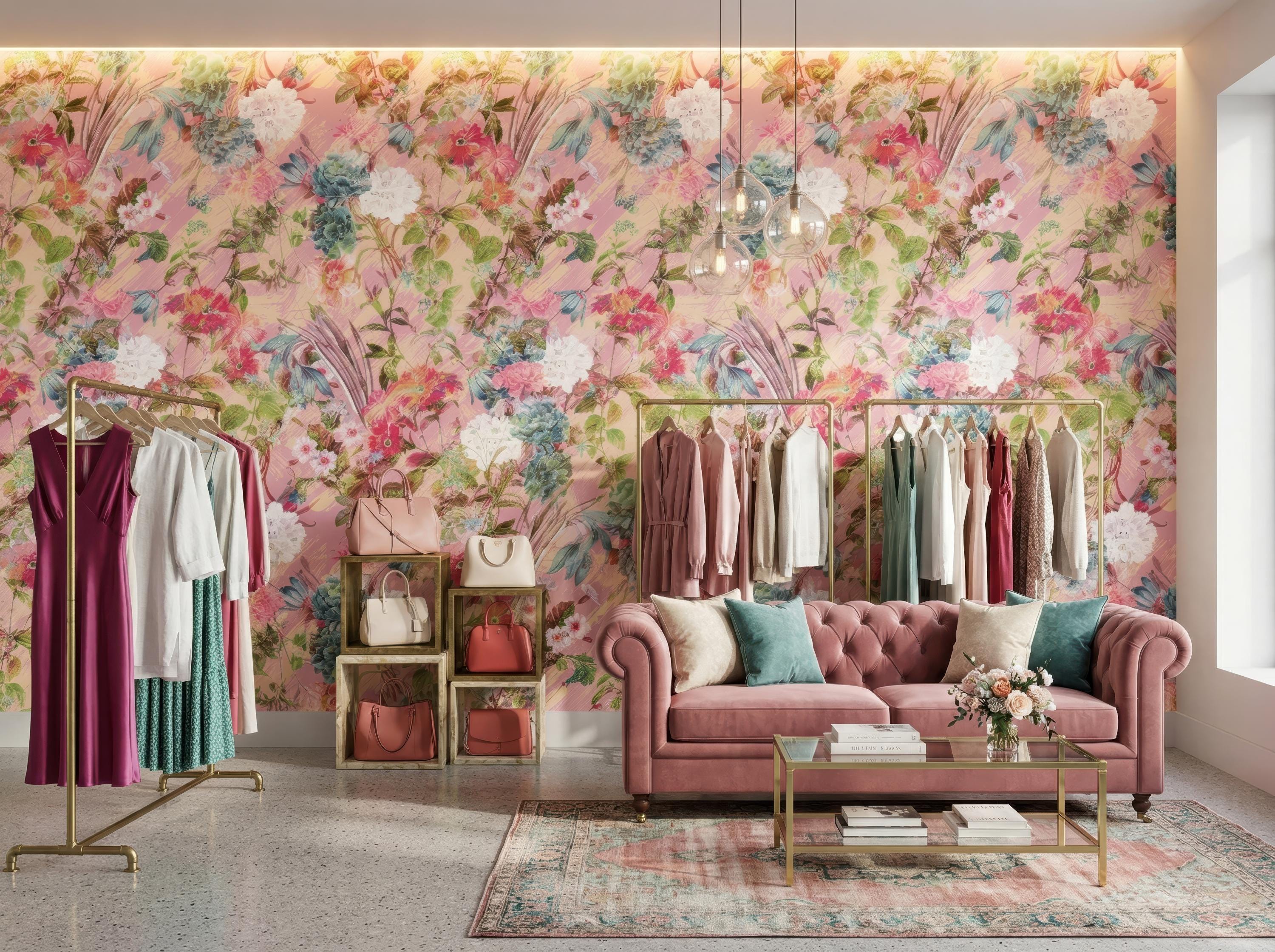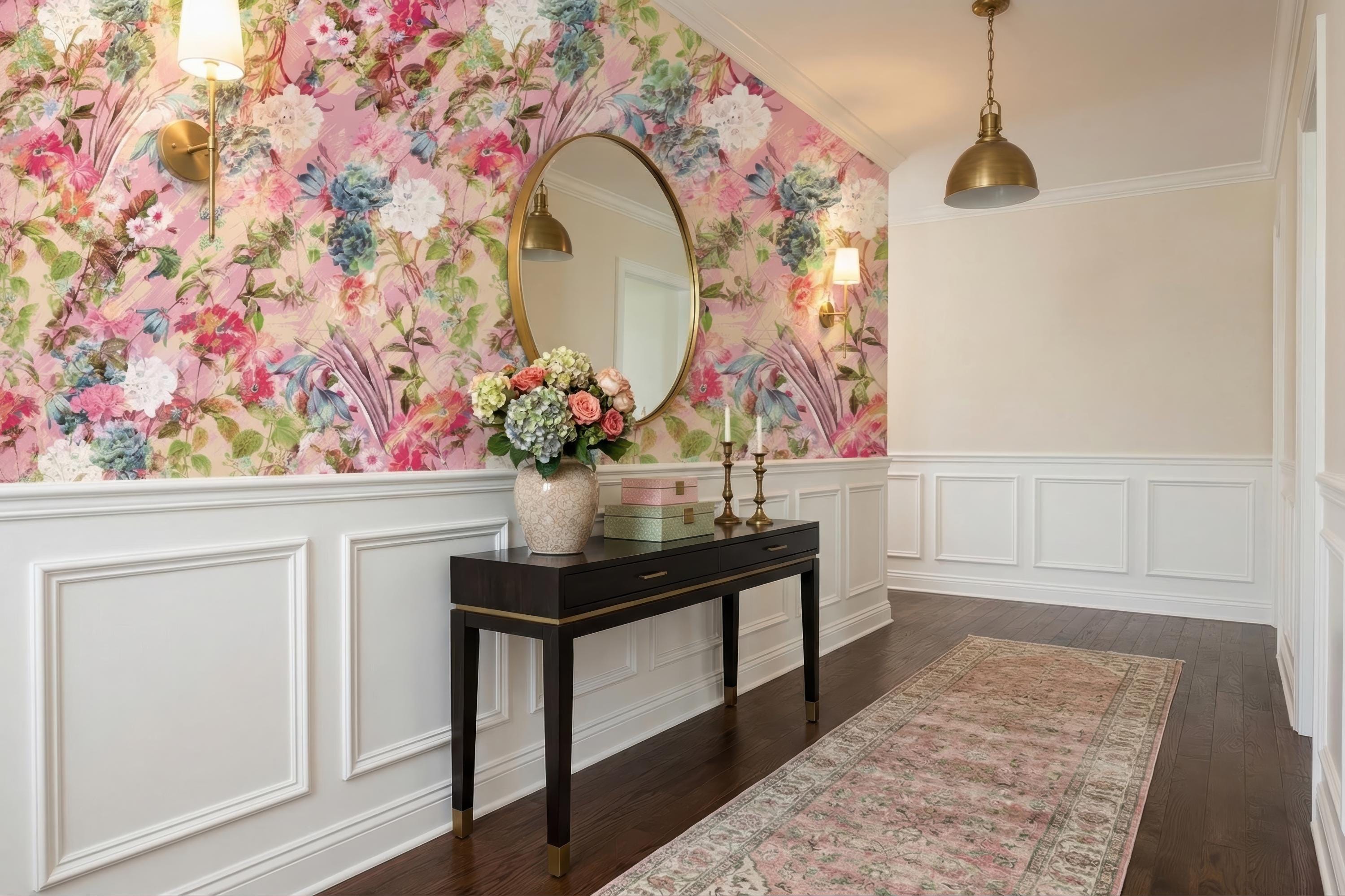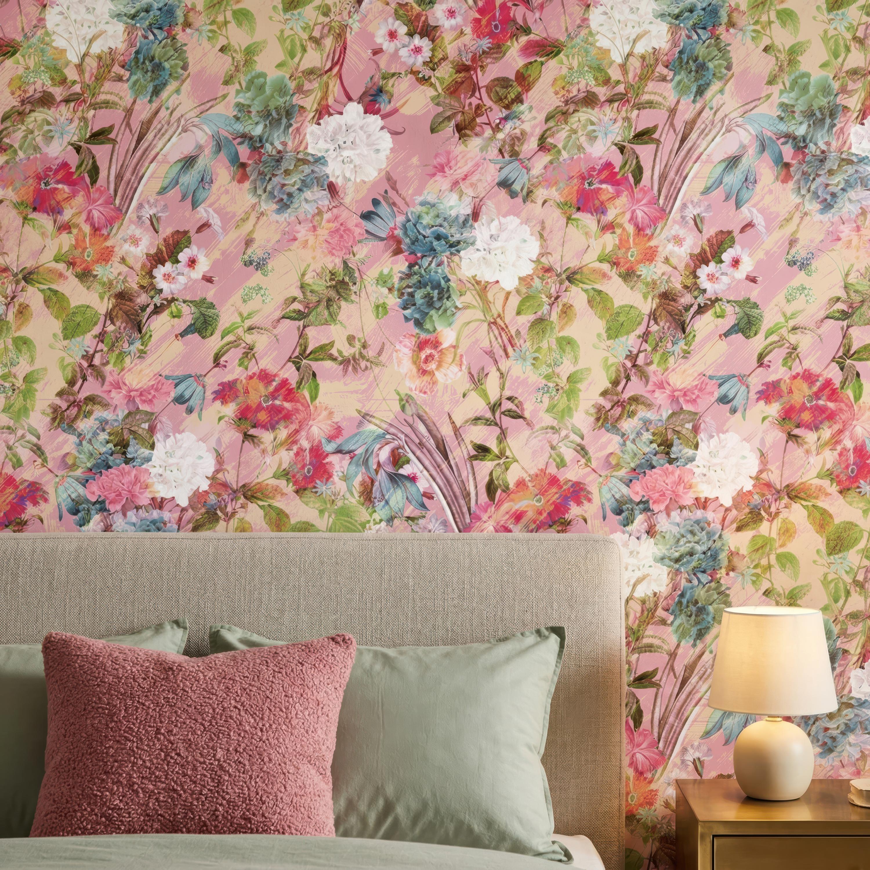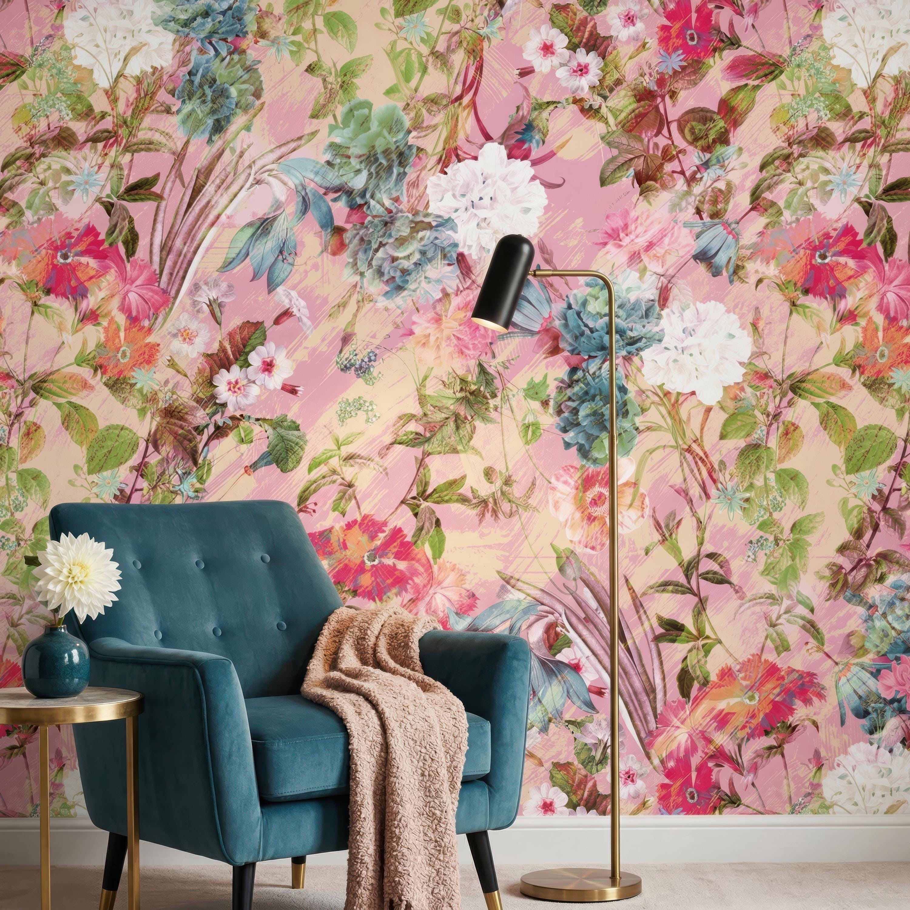 Bring a soft and romantic atmosphere to your space with this blush pink floral wallpaper featuring delicate botanical elements and painterly textures. Designed to create a light, elegant, and inviting ambiance, this wallpaper is perfect for feminine interiors and stylish statement walls.