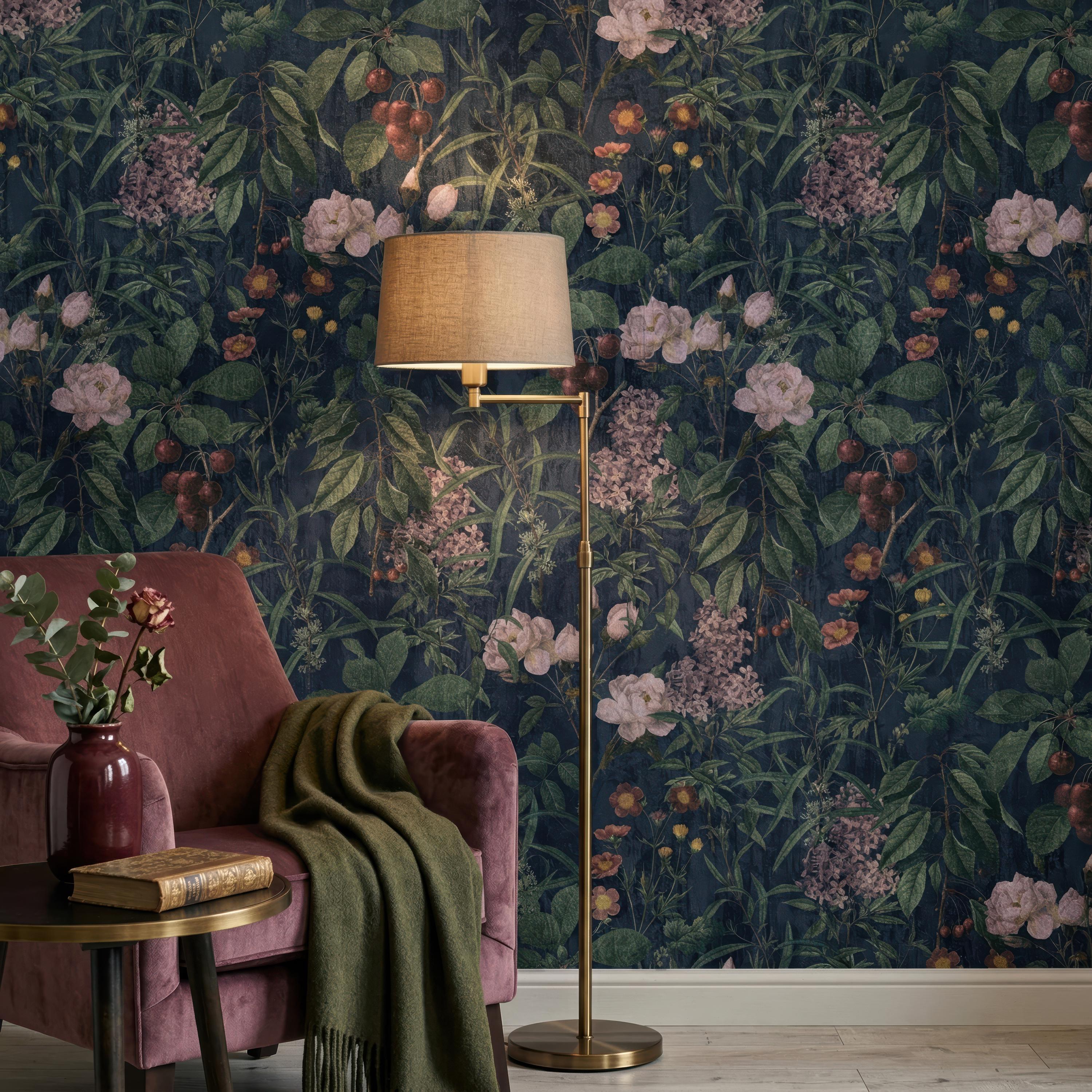 Dark Botanical Wallpaper - Vintage Floral Moody Garden Wall Mural (Peel and Stick or Traditional)