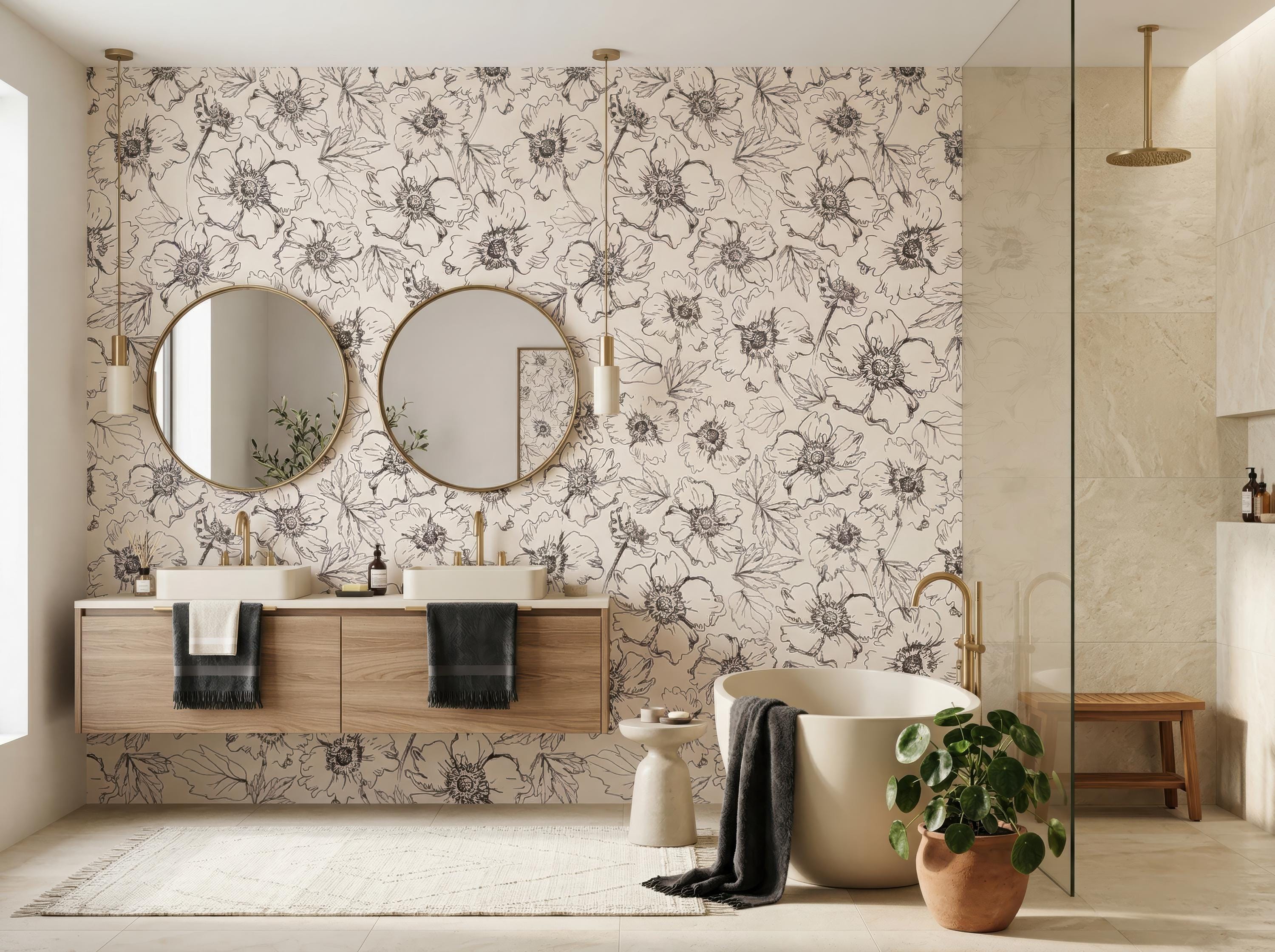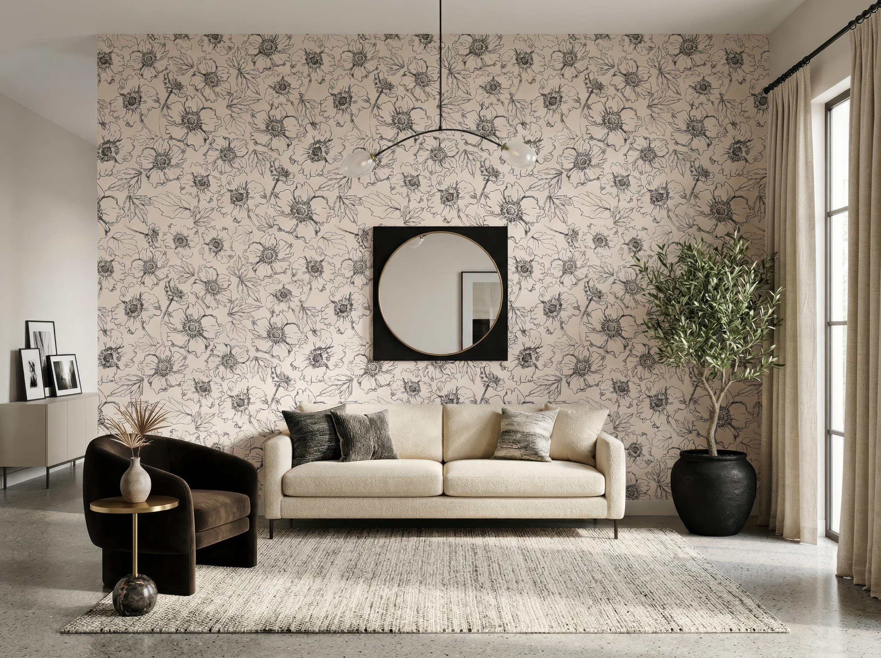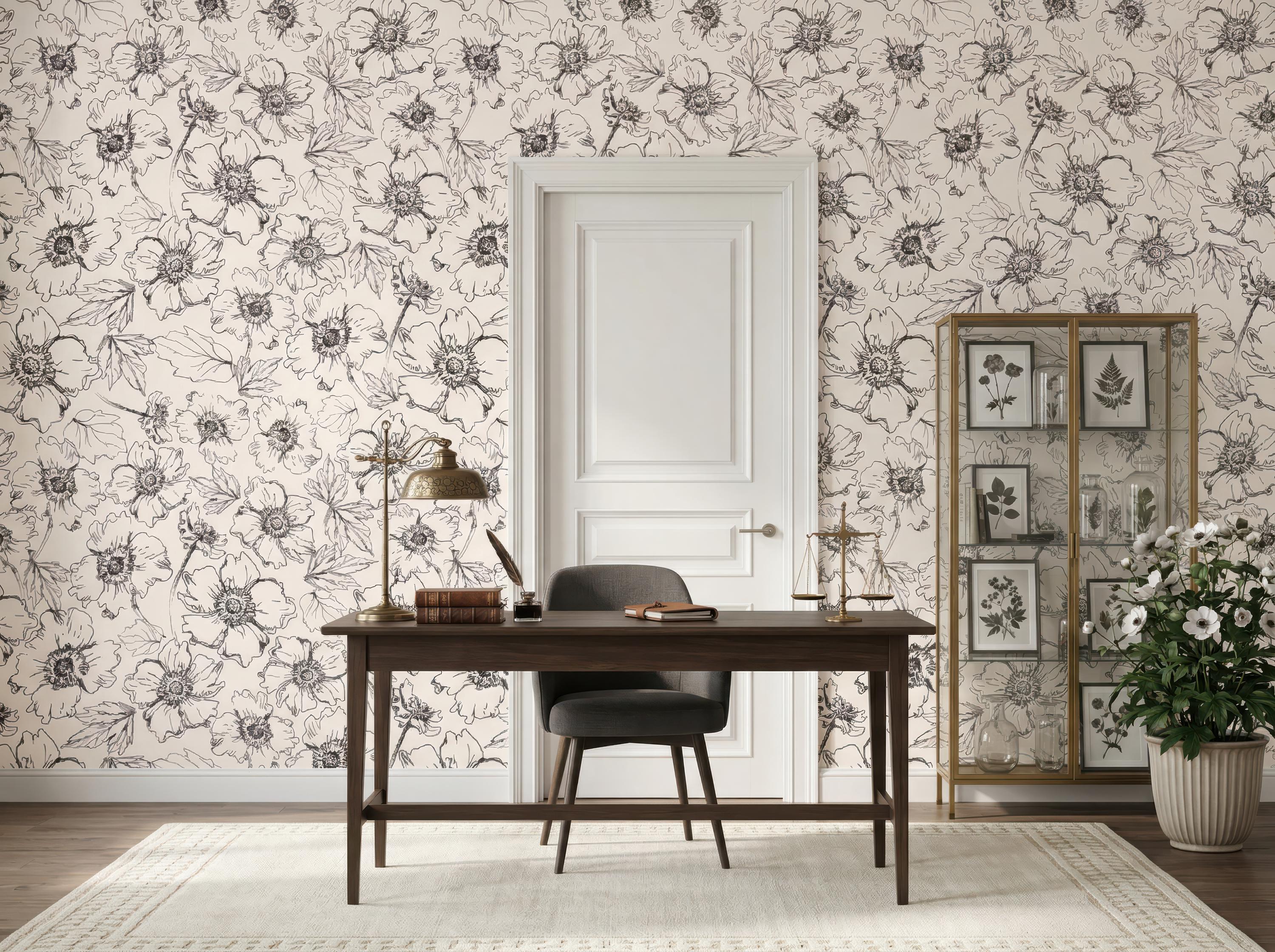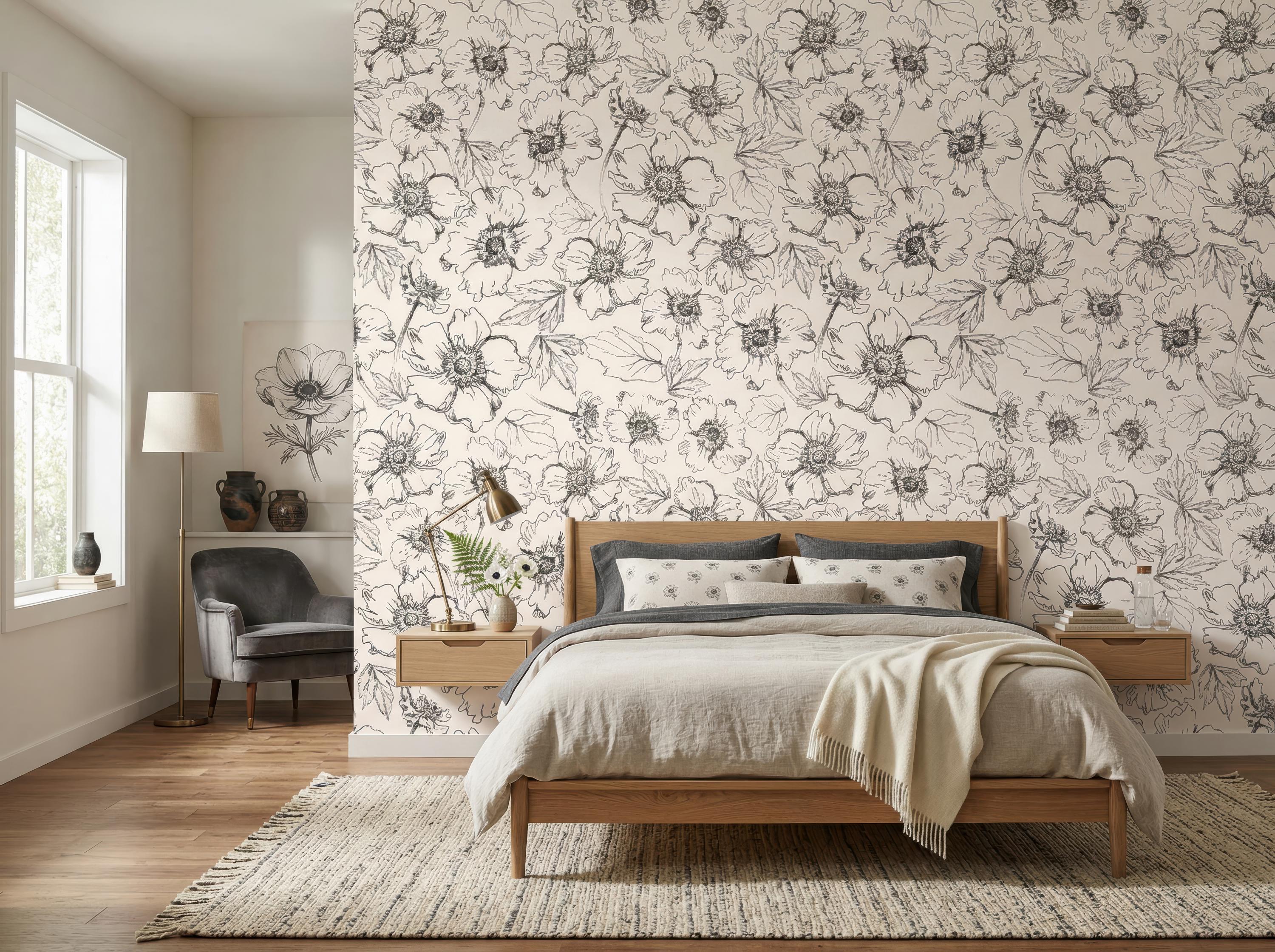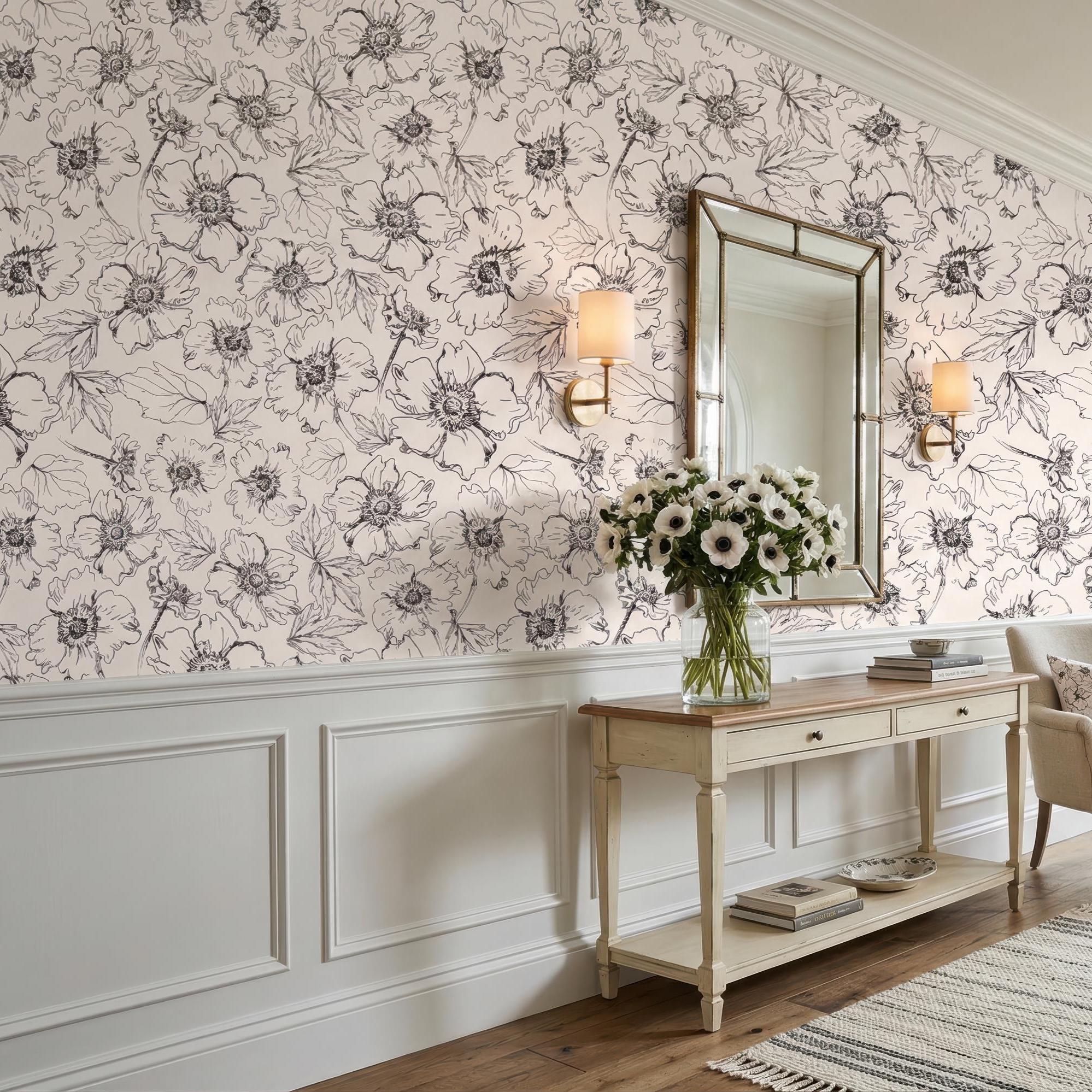 Bring timeless elegance to your home with this black and white Japanese anemone wallpaper, featuring delicate hand-sketched floral lines on a soft neutral background. This minimalist botanical design creates a calm, refined atmosphere perfect for modern, Scandinavian, or classic interiors.