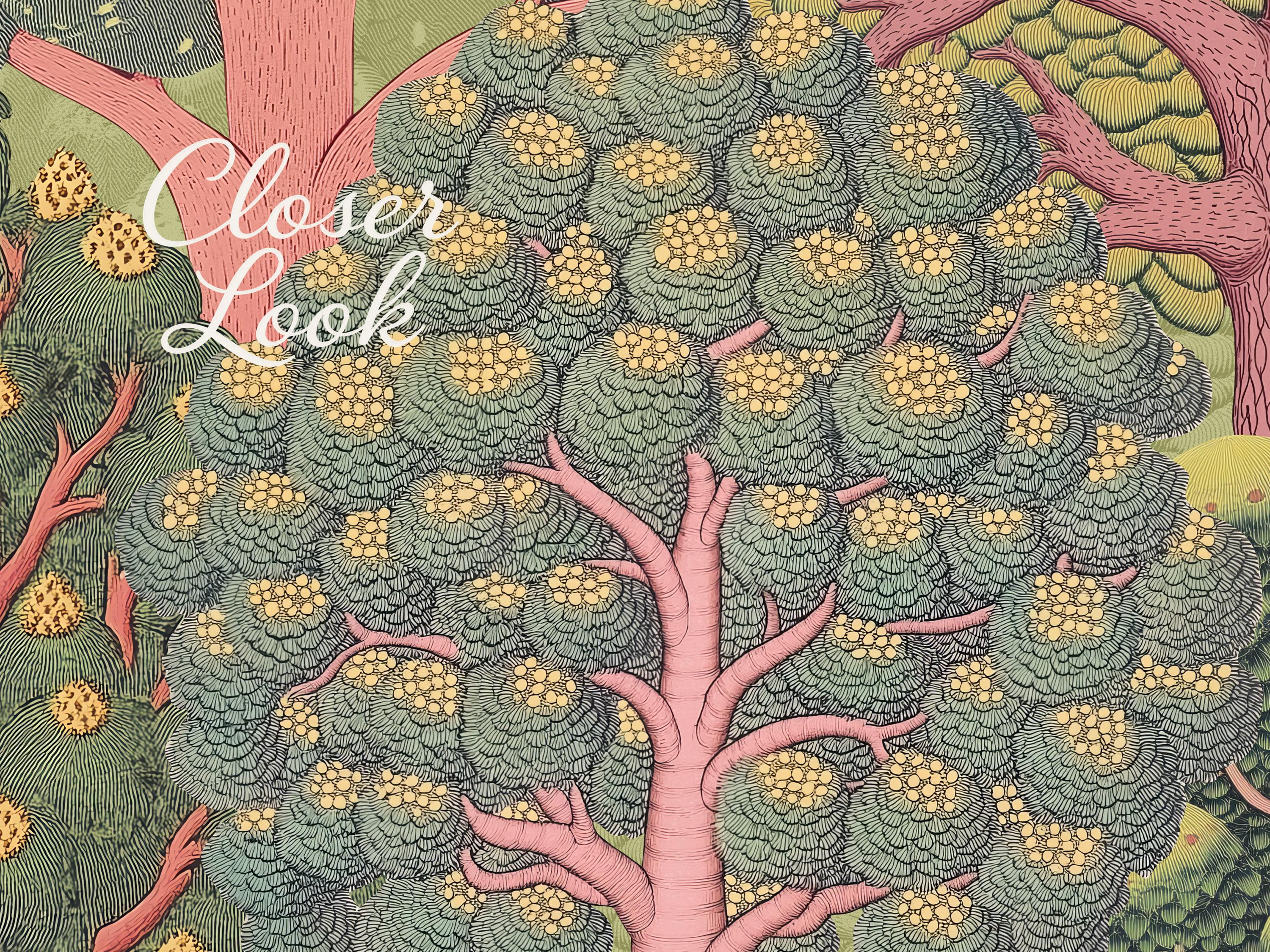 Whimsical Forest Wallpaper - Vintage Botanical Indian Tree Mural ( Removable Peel and Stick or Traditional ) - Bedroom Bathroom Wall Decor