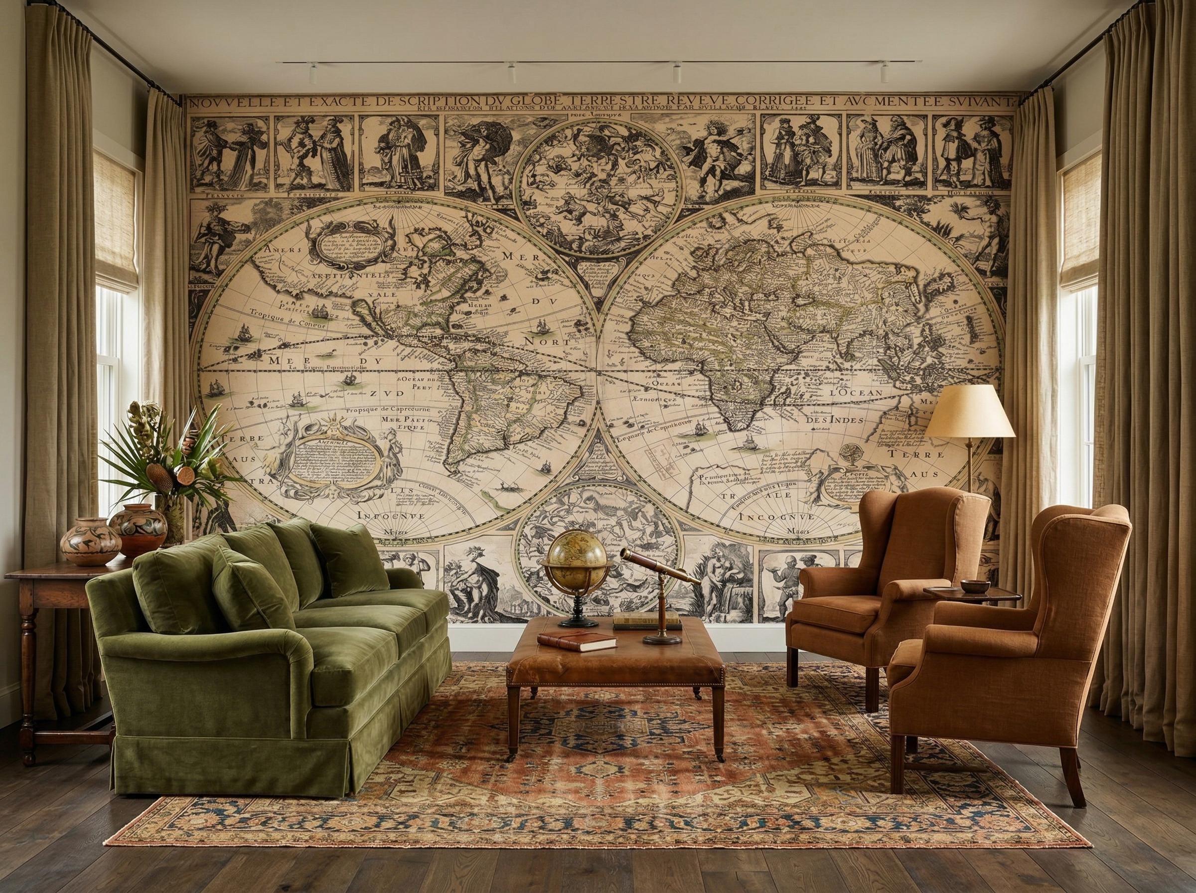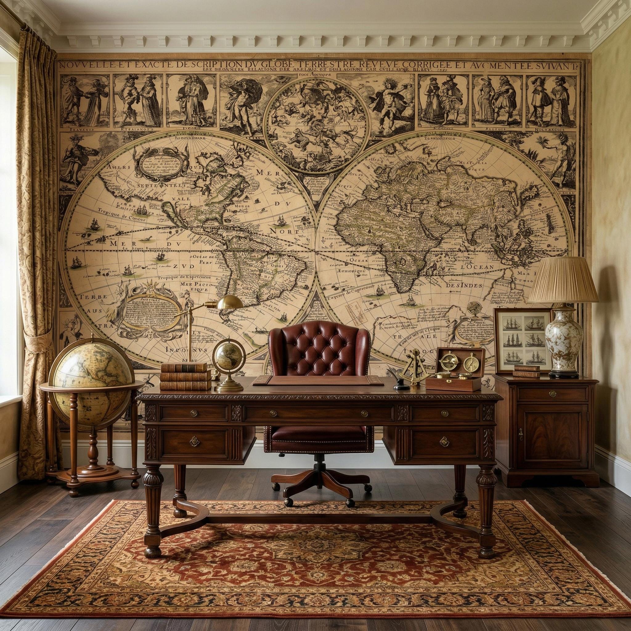 * 🗺️ Authentic Antique Design: Features a beautifully detailed old world map with classic engravings and historical cartography elements