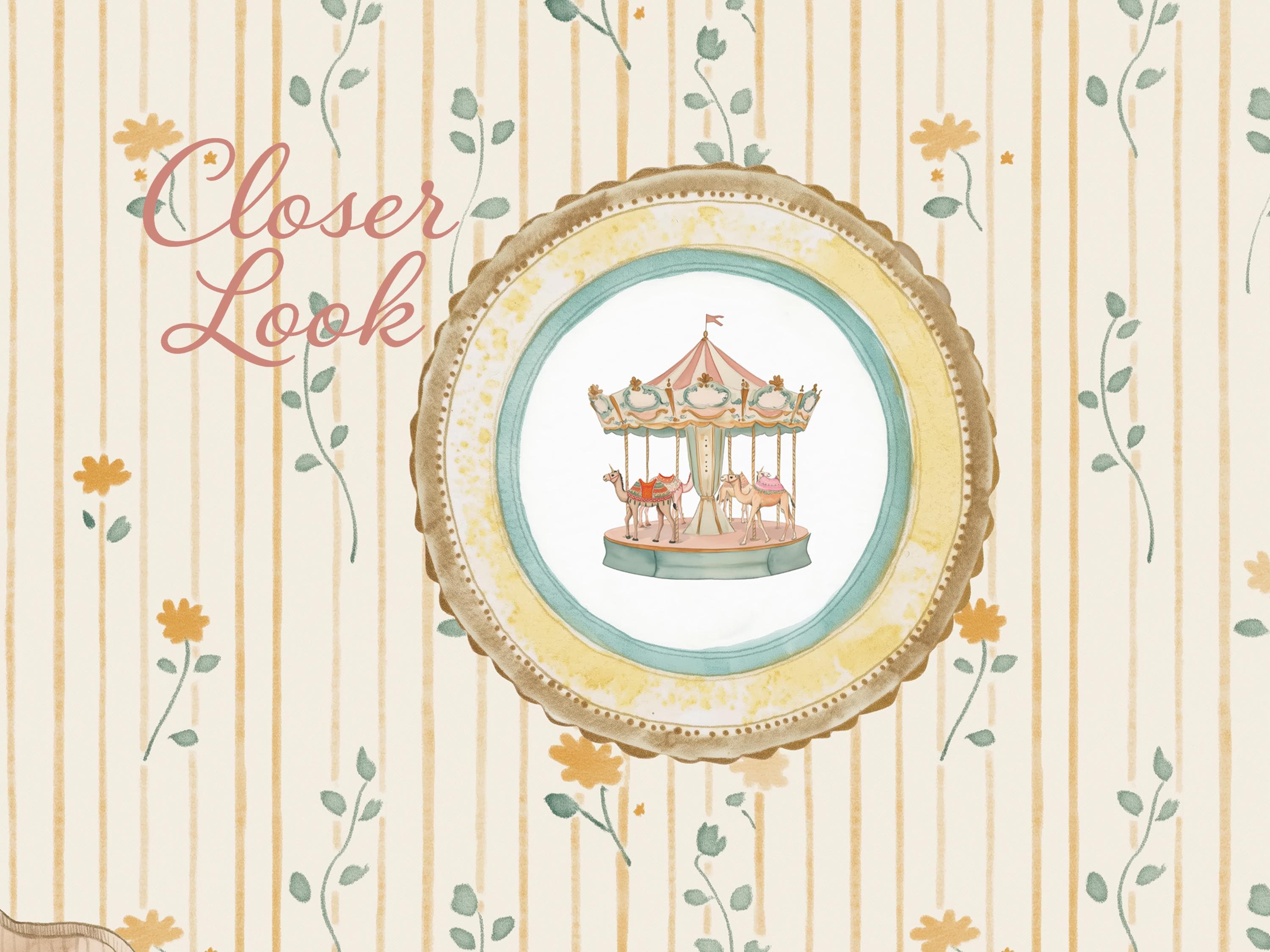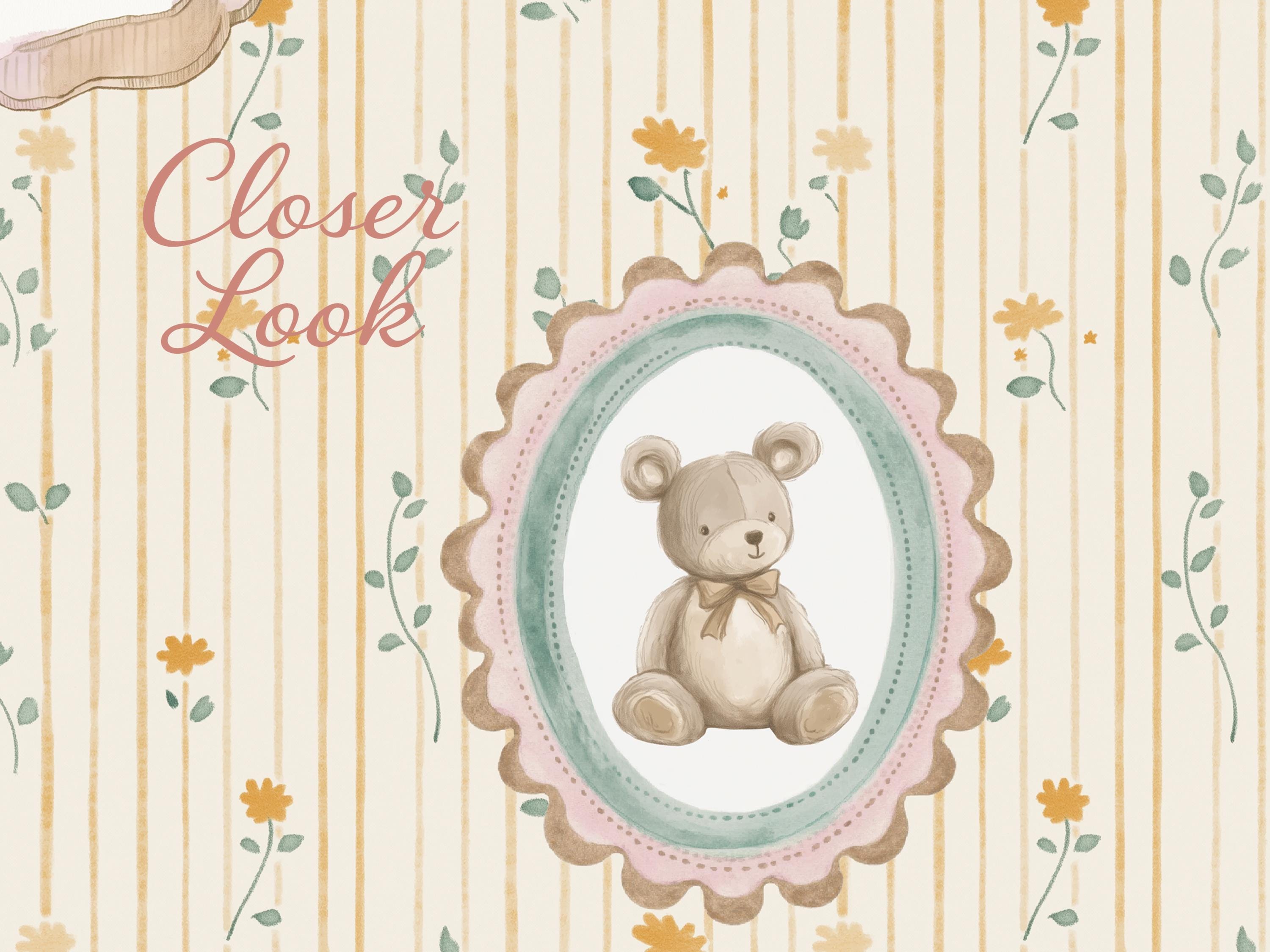 * 🧸 Whimsical Vintage Design: Features teddy bears, rocking horses, hearts, and carousel motifs for a nostalgic storybook feel