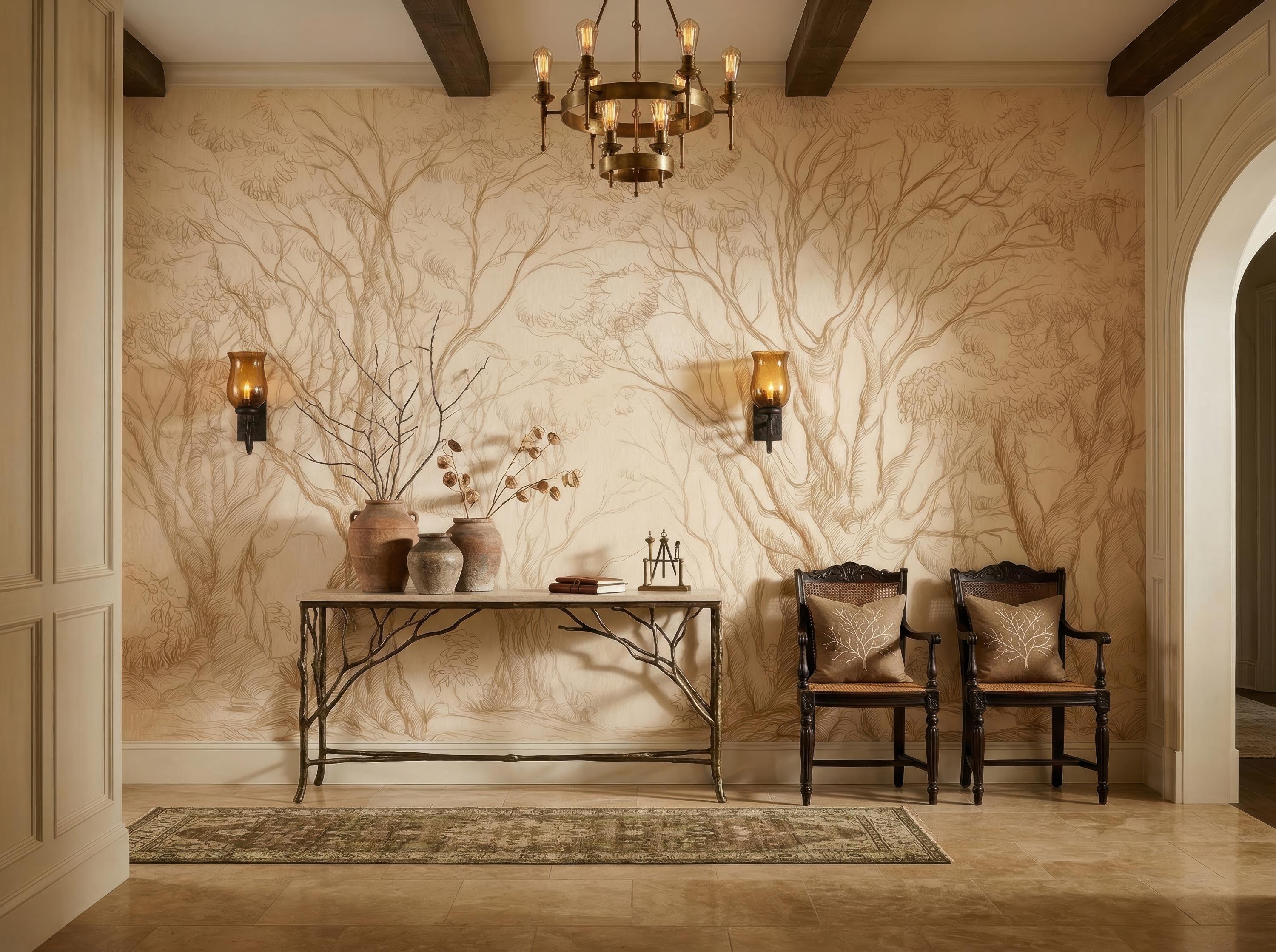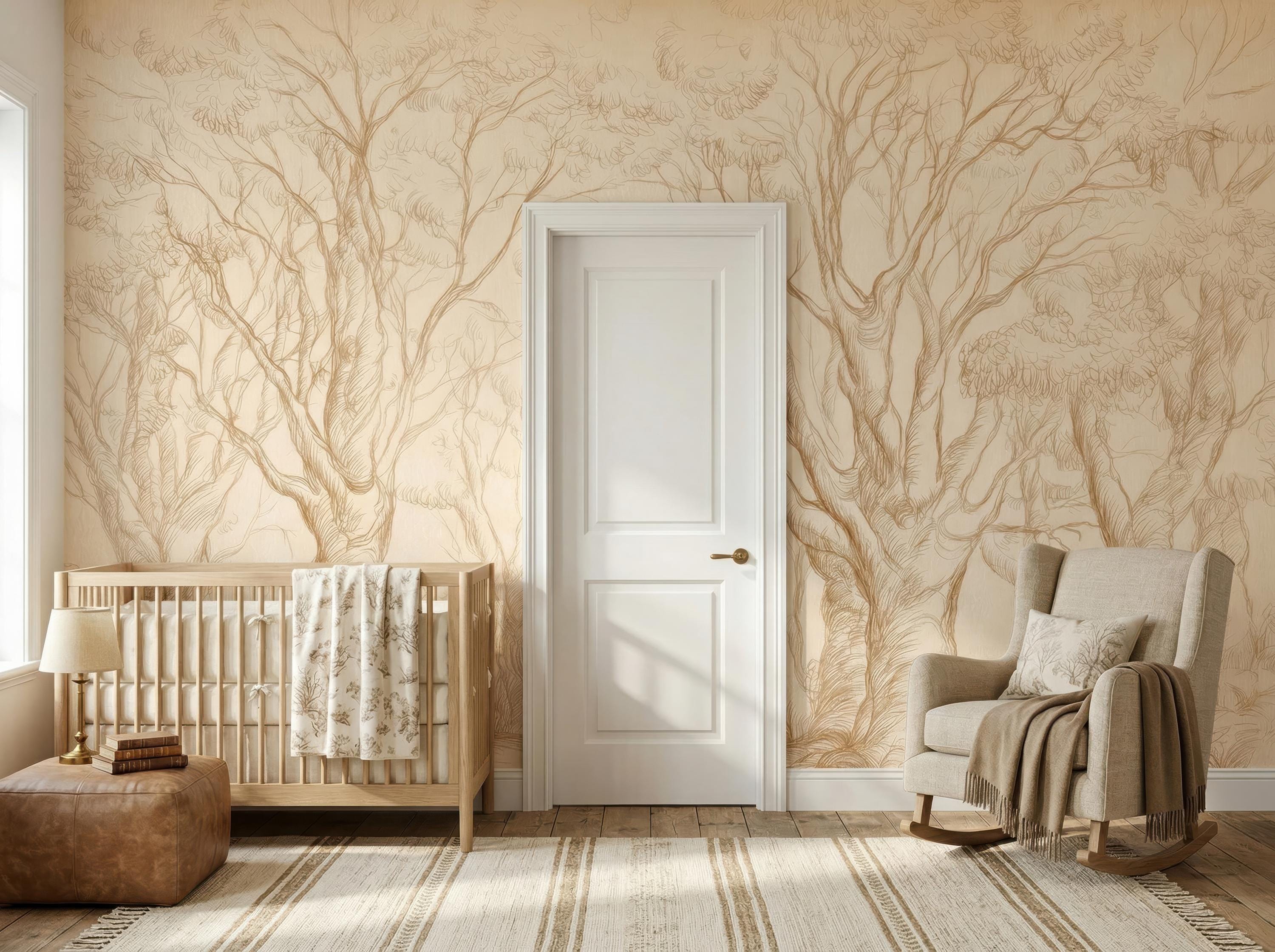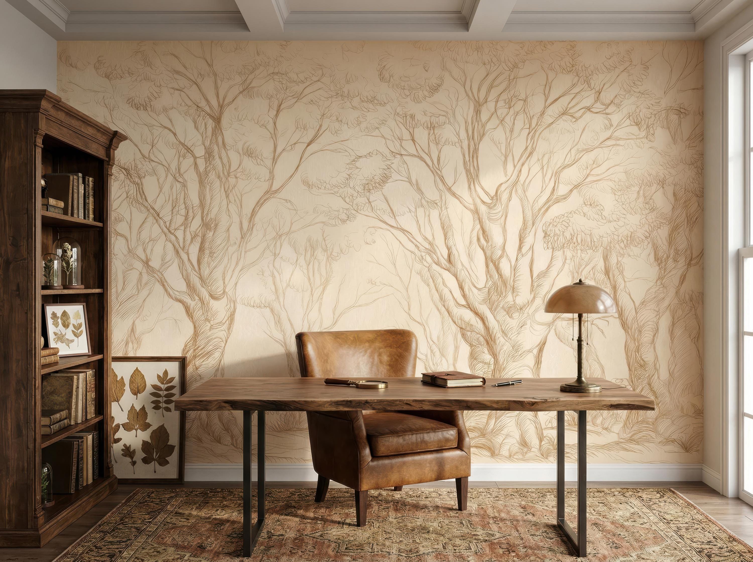 Bring calm and timeless elegance into your home with this neutral tree sketch wallpaper, designed with soft beige tones and delicate botanical line art. Perfect for Scandinavian, minimalist, and modern rustic interiors, this nature-inspired wall mural creates a warm and inviting atmosphere in any space. 🌿