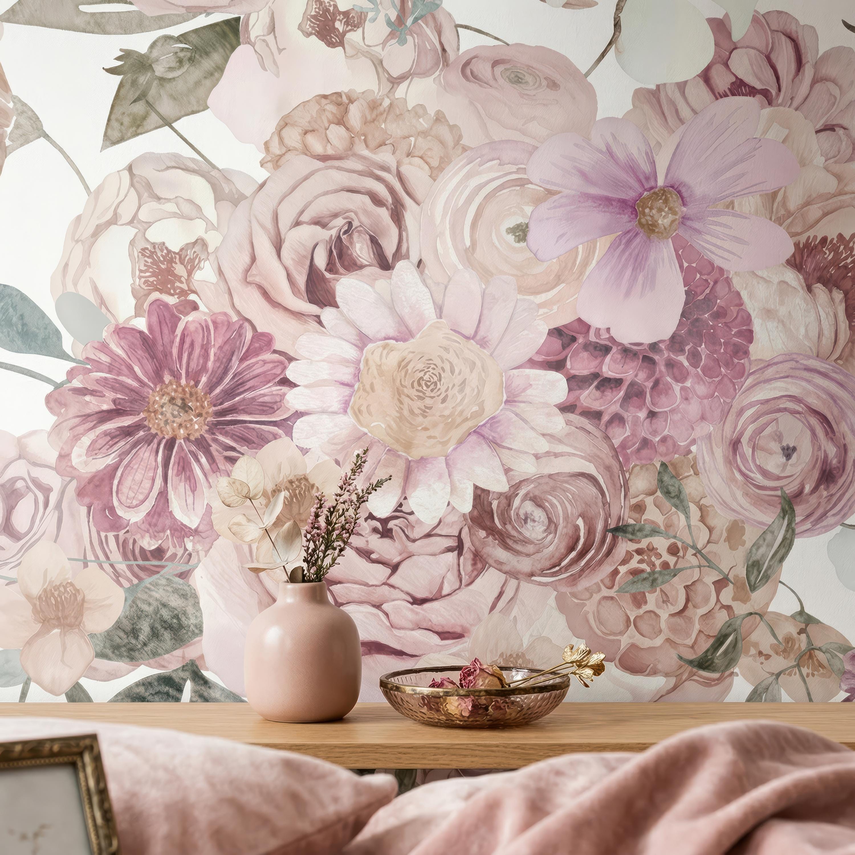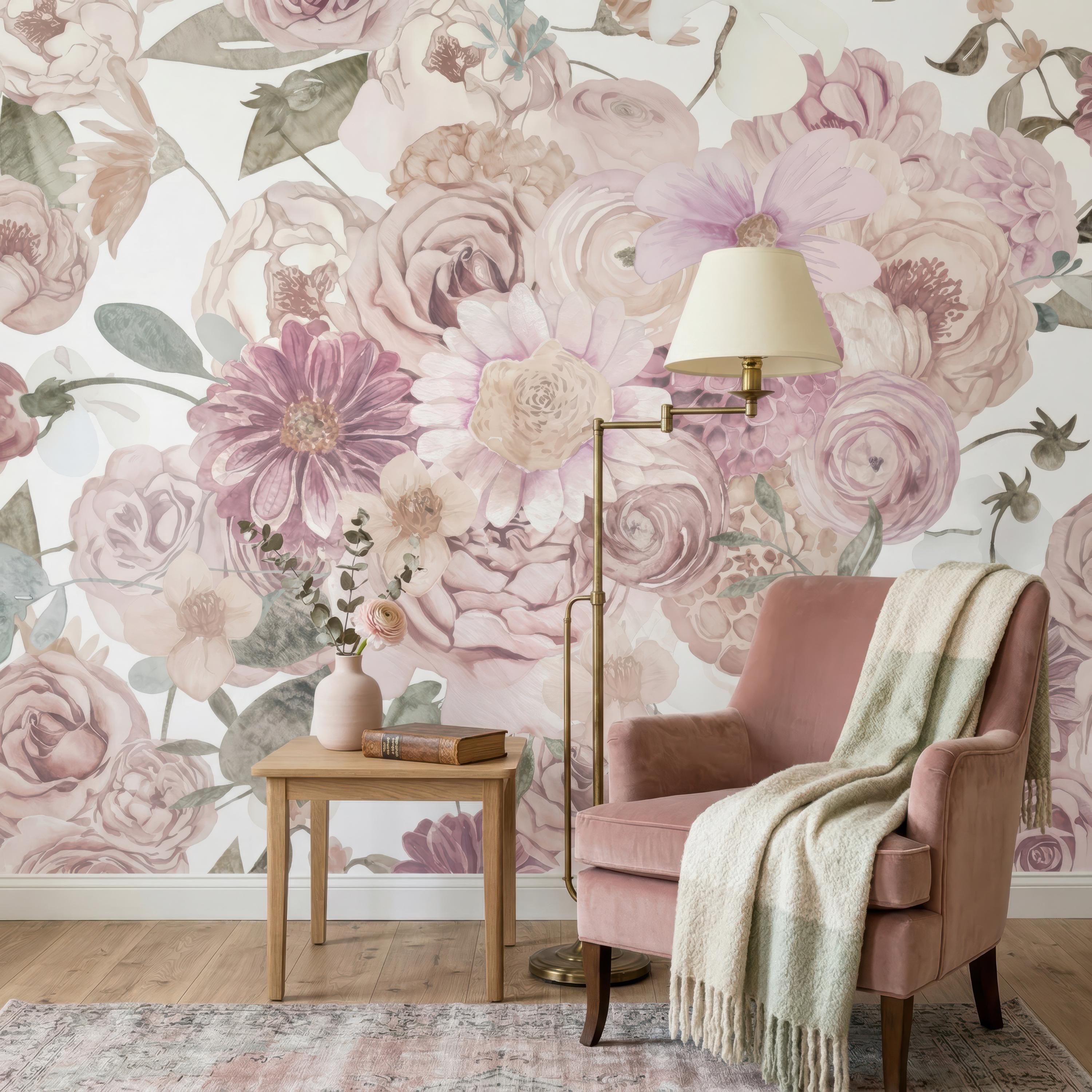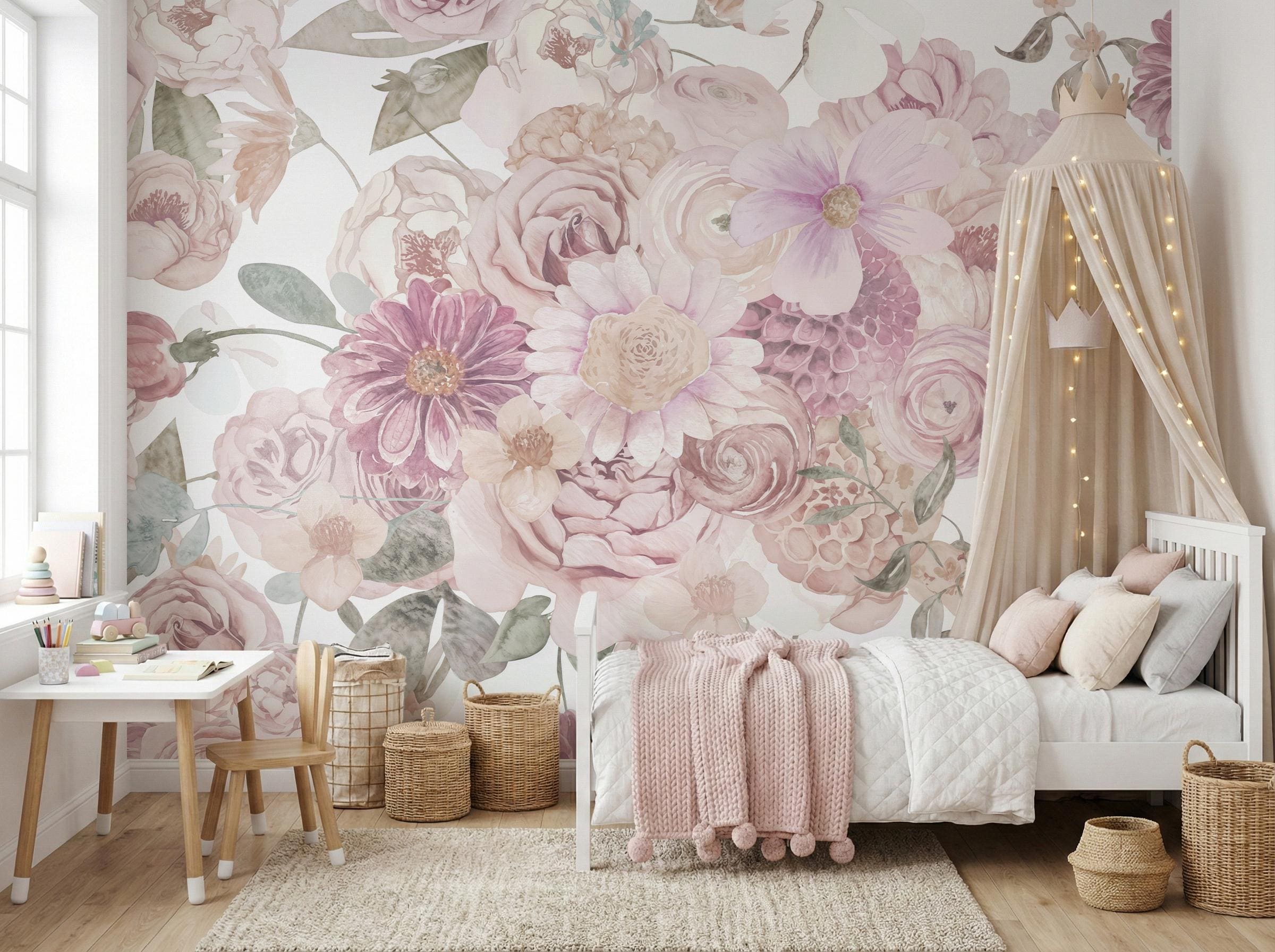 Create a dreamy and elegant atmosphere with this blush pink floral wall mural featuring soft watercolor flowers in delicate pastel tones. Perfect for nurseries, girls’ bedrooms, or feminine living spaces, this design brings warmth, charm, and timeless beauty 🌸