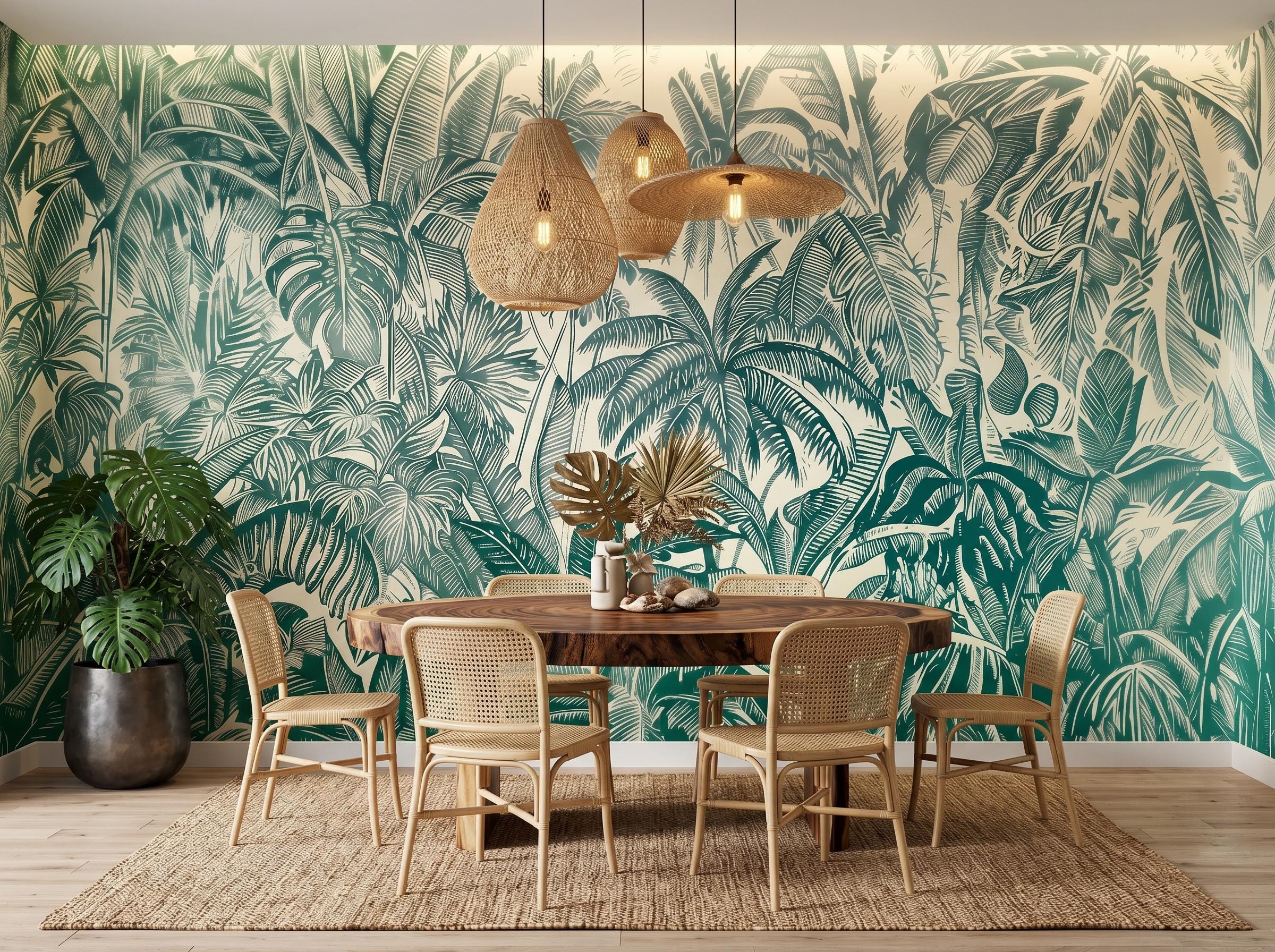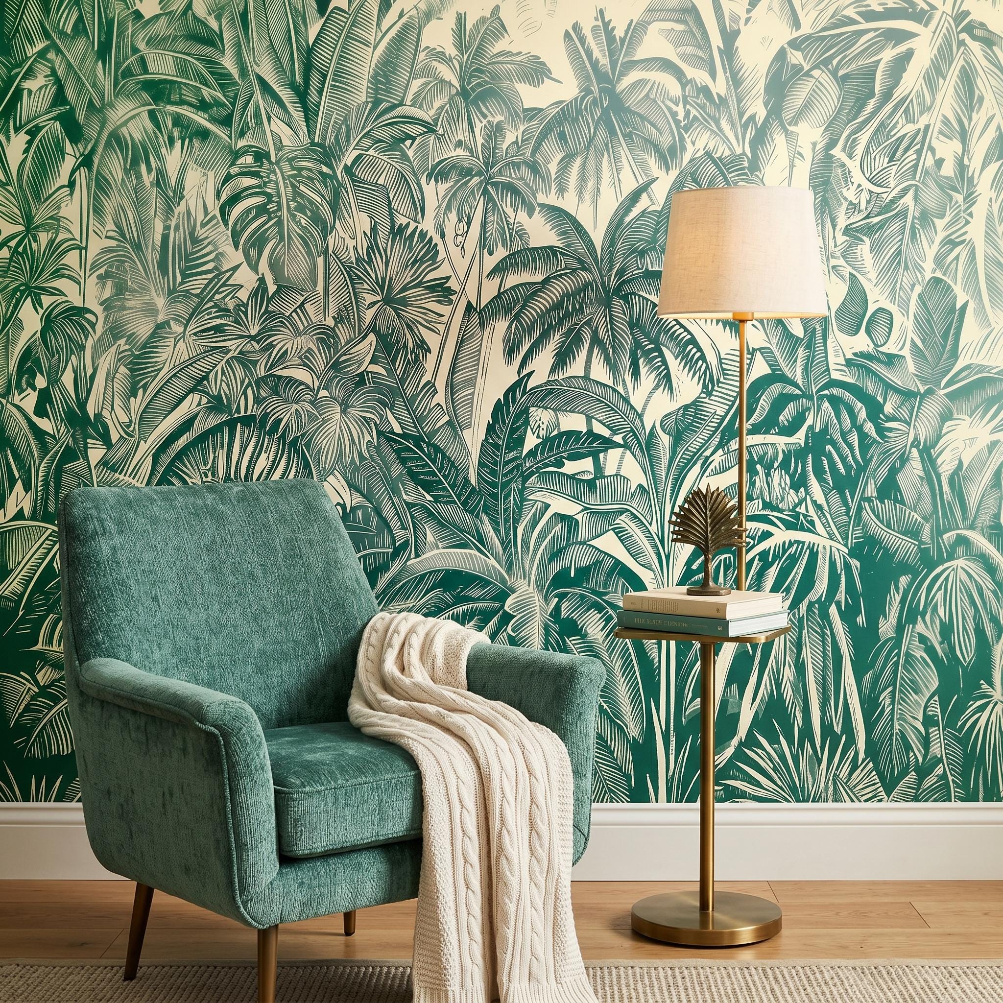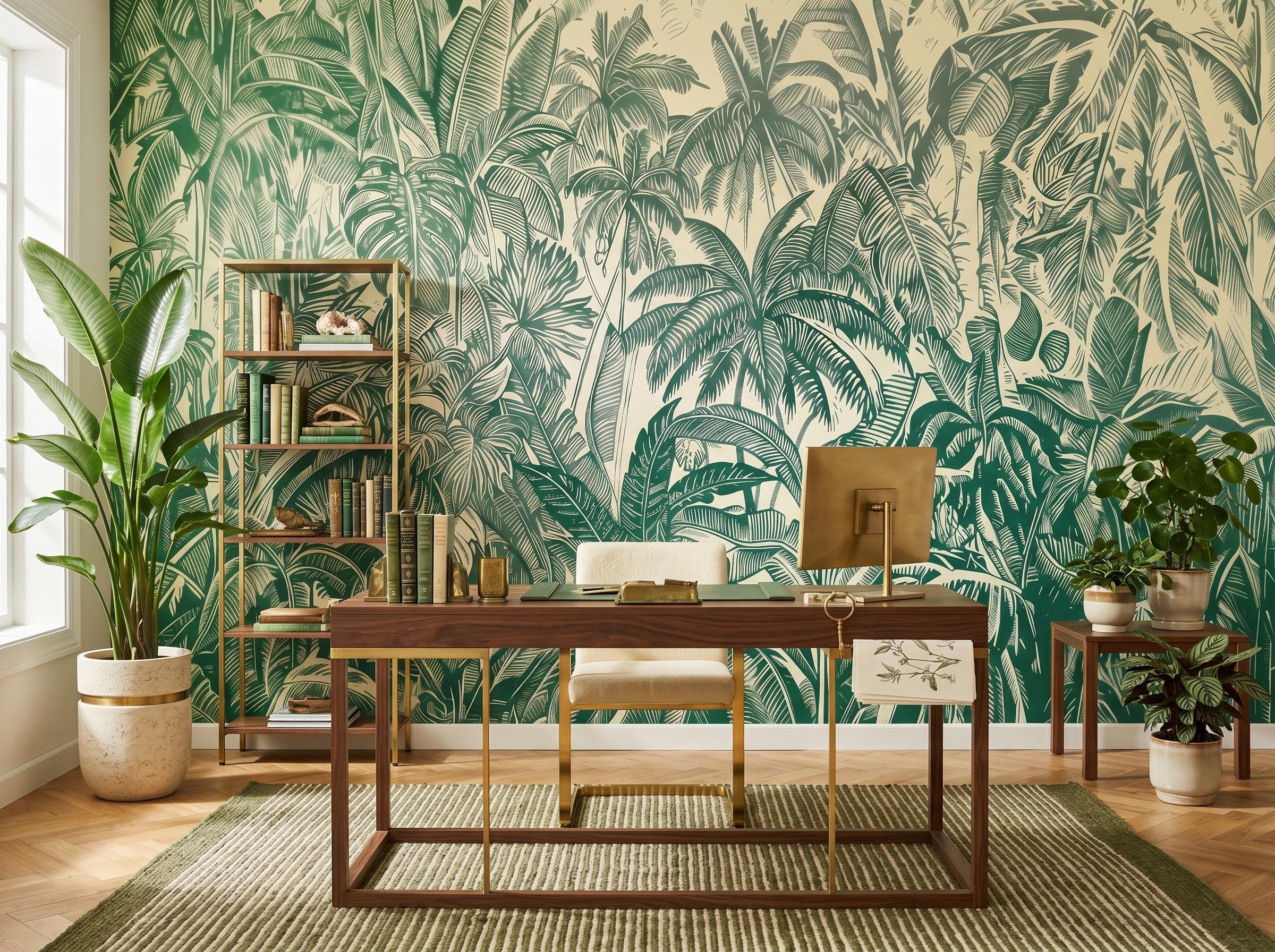 * 🌴 Lush Tropical Design: Intricate palm and jungle leaves create a vibrant and immersive nature-inspired wall