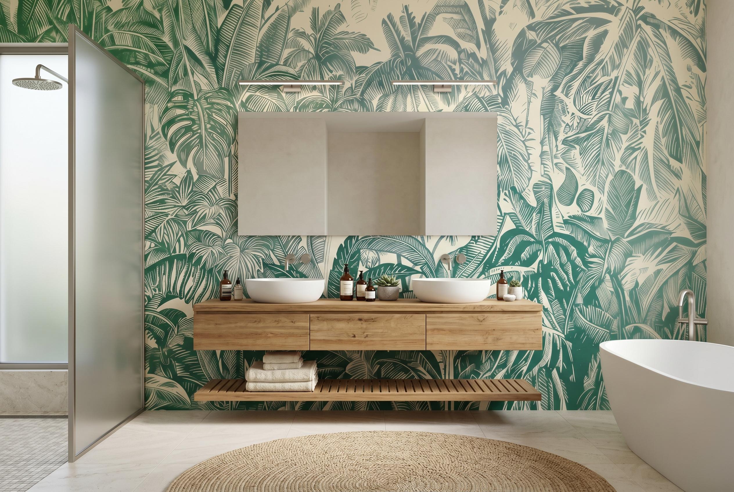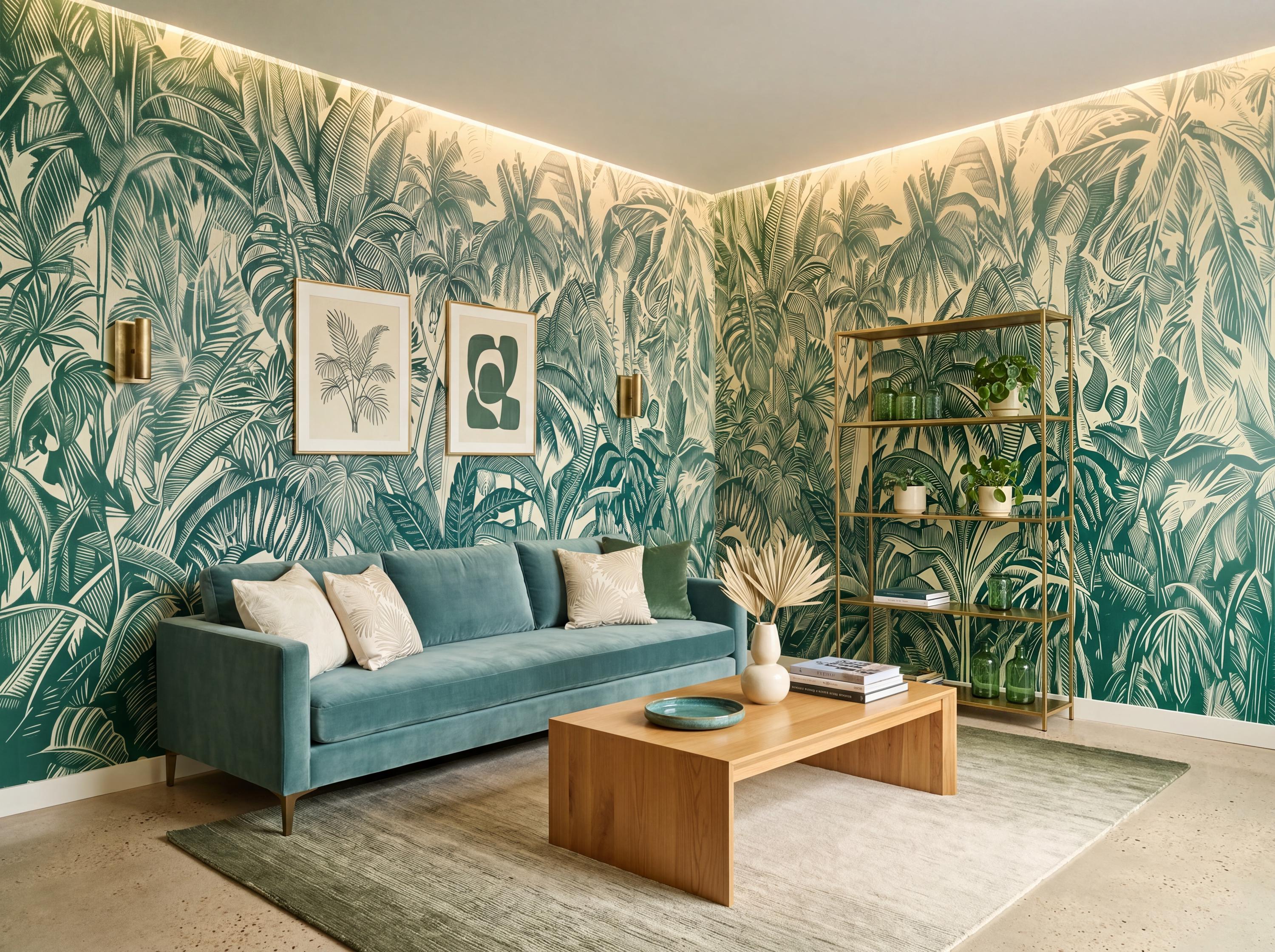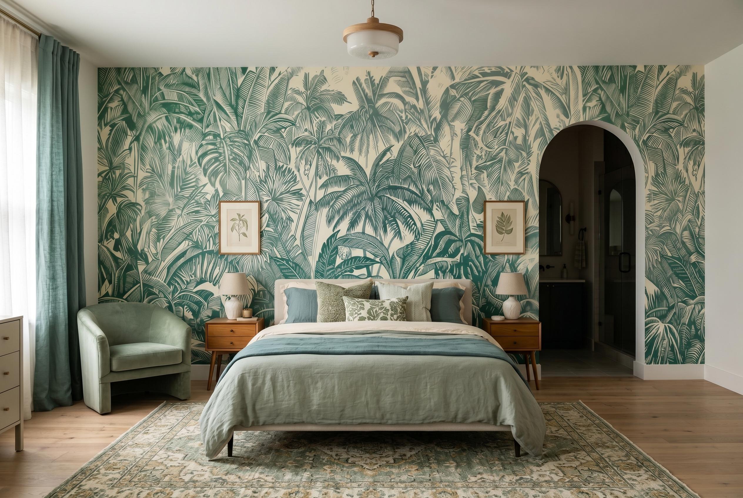 * 🌴 Lush Tropical Design: Intricate palm and jungle leaves create a vibrant and immersive nature-inspired wall