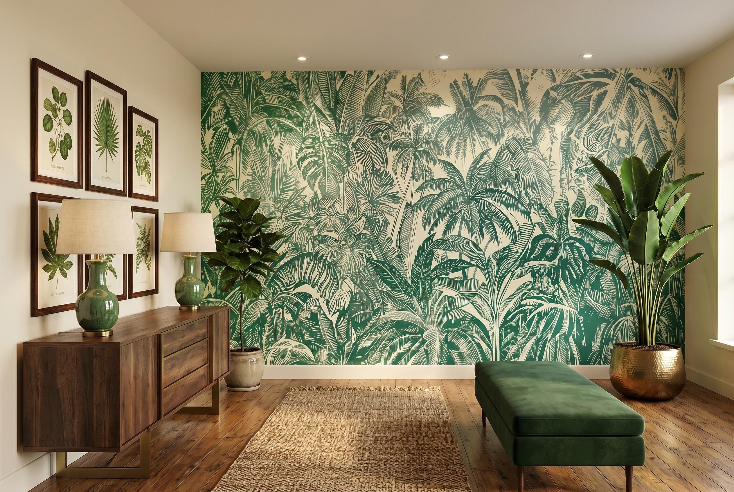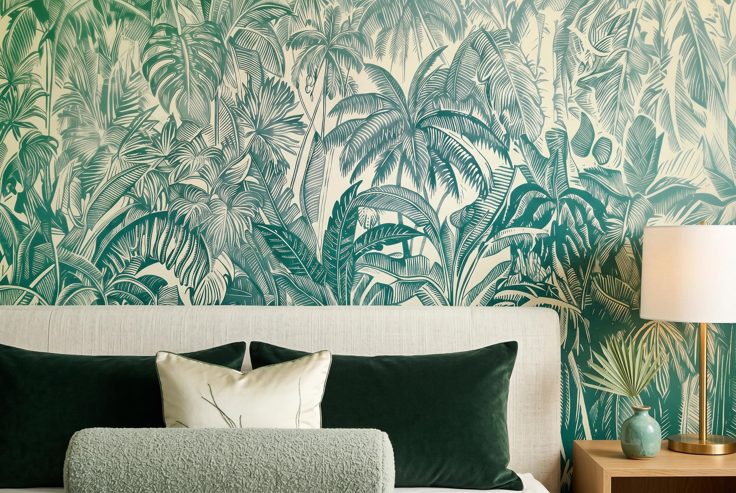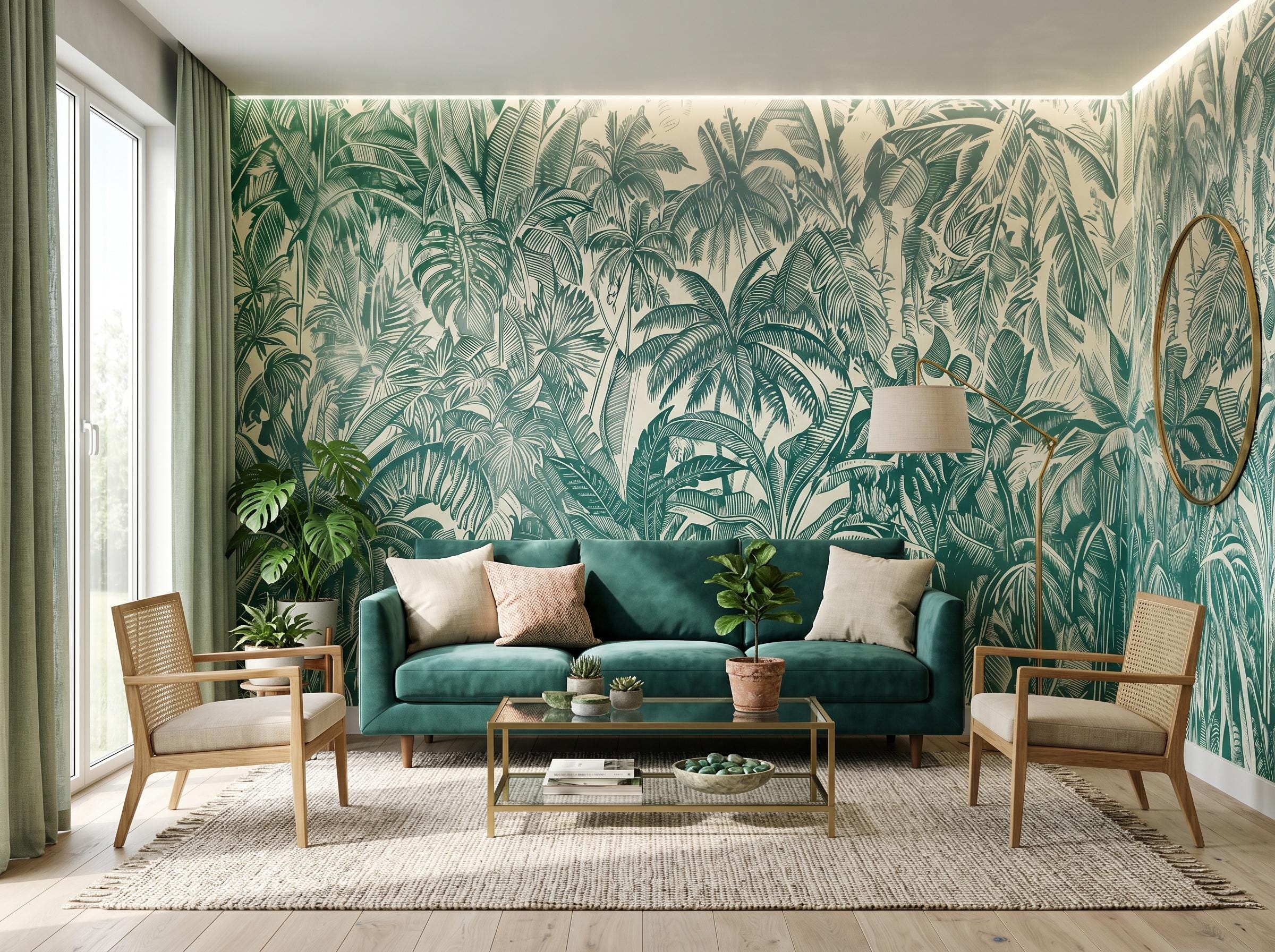 Bring the beauty of lush tropical nature into your home with this elegant palm leaf wall mural. Featuring detailed jungle foliage in rich green tones, this botanical wallpaper creates a fresh, calming, and sophisticated atmosphere in any space. 🌿✨